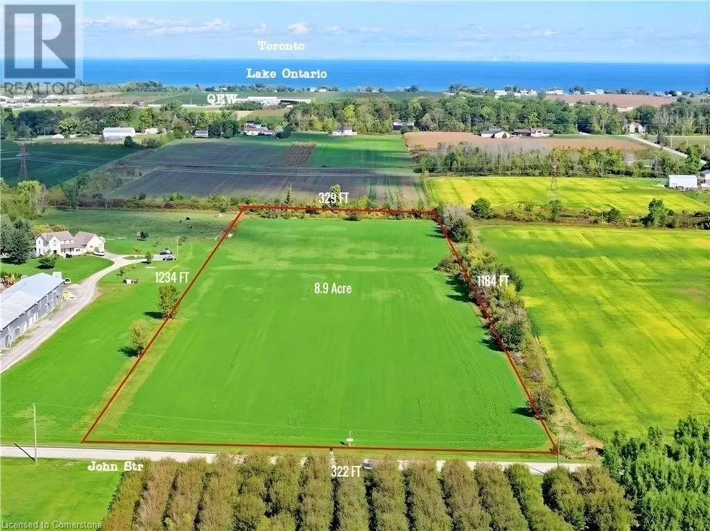 QEW to Niagara direction , exit at Ontario street , Lincoln to John street Discover 9 acres of prime, flat vacant land in the heart of Lincoln, a town renowned for its vineyards, wineries, and fruit farming. This tranquil and beautiful setting is just minutes from the QEW, future GO station, and thriving cities. Surrounded by multi-billion-dollar commercial and residential developments, this land offers tremendous potential for value appreciation. With hydro power and natural gas at the road, itâs an ideal location for building your dream home, greenhouses, a winery, agritourism, or a residential/business combination. Only an hourâs drive to the GTA and 25 minutes to Niagara Falls and the U.S. border, this land is a rare opportunity. The owner has held it for nearly 30 years, and itâs now being offered for sale for the first time publicly. The seller is also willing to consider a Vendor Take-Back Mortgage for serious investors, offering flexible financing options. Please pay attention: Don't walk on the land without the listing agent's approval. While there is no 911 address yet, enter 4259 John St, Beamsville, ON L0R 1B1 into your GPS to reach the site and see the For Sale sign. Act fast before this opportunity slips away! (id:27476)