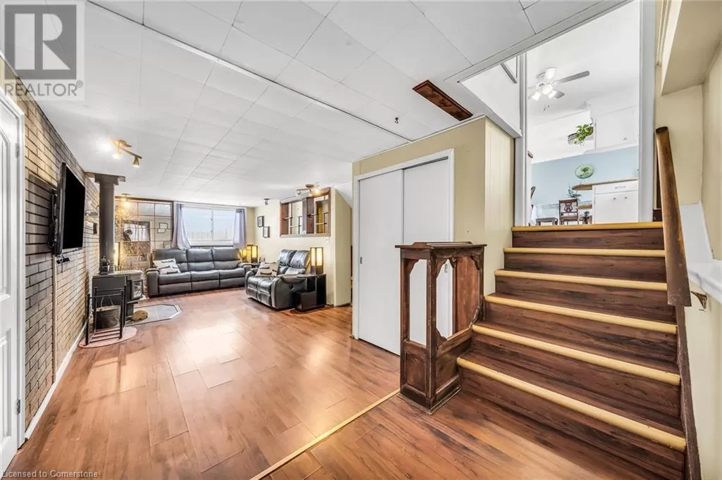 King street to Fifteenth Street A rare opportunity to own prime real estate on the Lincoln Bench! Privacy & peaceful living are available at this picturesque 56 acre property. Located on a dead end road with views of farmerâs fields everywhere you look. The property includes 38 workable acres & 13.5 acres of bush. 3 road frontages (Fifteenth Street, Seventeenth Street and Bigger Avenue). Well maintained 3 bedroom side split with a partially finished basement. Foyer has ceramic tile flooring and a double entry way closet. Kitchen includes a ceramic tile backsplash and ceiling fan. The formal dining room features laminate flooring and a patio door that leads to the rear deck overlooking the fields. Living room has a large north facing window and laminate flooring. The 4-piece bathroom offers a bath fitter tub/shower. Cozy main floor family room brings the country feel to life with a wood stove, laminate flooring and a double closet. Conveniently located mud room off the carport with two closets. Large sunroom off the back of the carport has new flooring (2022) and offers another space for you to enjoy that country lifestyle. The basement offers a rec room with wood wainscoting and pot lights. Garden shed in rear yard. Tar and gravel roof over the car port; asphalt shingles over the rest of the home (replaced in 2017). All windows were replaced within the past 5 years. Bell Expressvu TV available at the house, not currently in use. NWIC is current internet provider. Land rented for $70/acre for 2025. (id:27476)