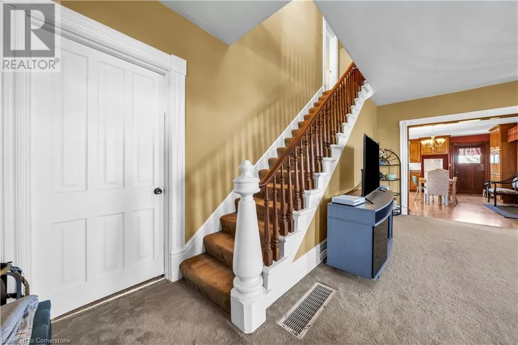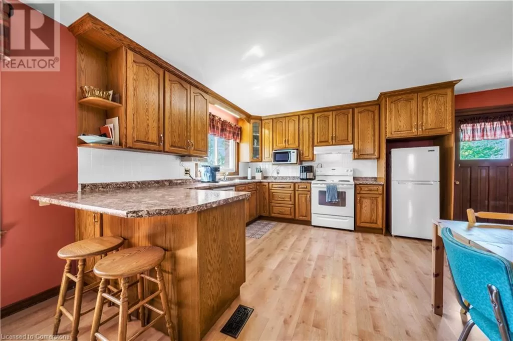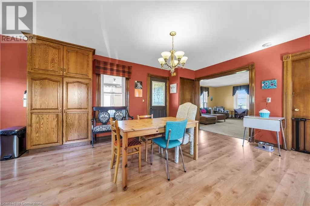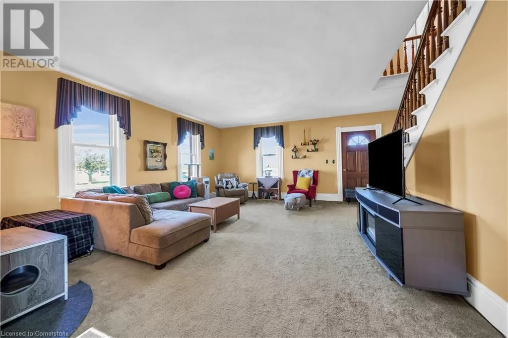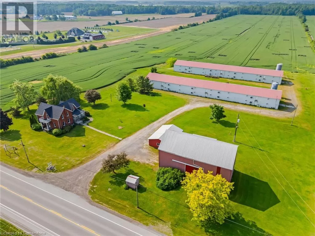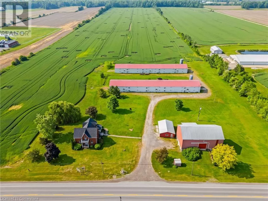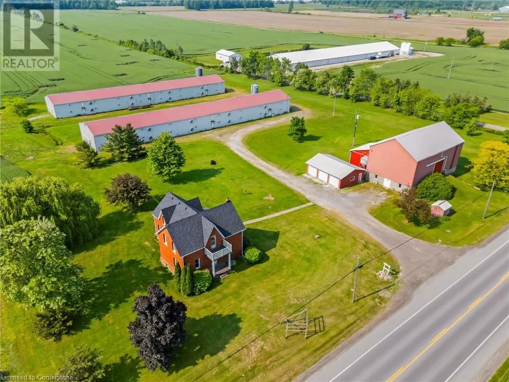 Mountain road to fly road Welcome to this 52 acre farm right in the heart of Niagara, located just minutes to Beamsville and easy QEW access. Approximately 42 acres of workable farmland and 5 acres of bush. The property includes a number of outbuildings including a 60â x 32â bank barn with a concrete floor, hydro and well water plus a 24â x 24â lean-to used for equipment storage. Two 230â x 40â metal sided poultry barns with concrete floors are fully equipped with feeding, system, watering system, ventilation system and natural gas heat. A detached triple car garage comes equipped with hydro, concrete floor and garage door opener. Alarm system for the poultry barns located at the house in the sun room. Diesel back-up generator. One drilled well near the road and another drilled well by the south poultry barn services the barns. The home is a well kept 1.5 storey, fully brick farmhouse featuring 2170 square feet and 5 bedrooms. An eat-in kitchen presents oak cabinetry, a peninsula with seating and laminate flooring. A spacious main floor bedroom has oak parquet flooring could also be used as a formal dining room. A carpeted living room leads up to the second level. A large primary bedroom has laminate flooring, 2 double closets and a ceiling fan. The 4-piece bathroom has ceramic tile flooring, a BathFitter tub/shower and a linen closet. Laundry located in the basement. Unfinished basement with stone foundation. Shingles were replaced approximately 5 years ago. (id:27476)