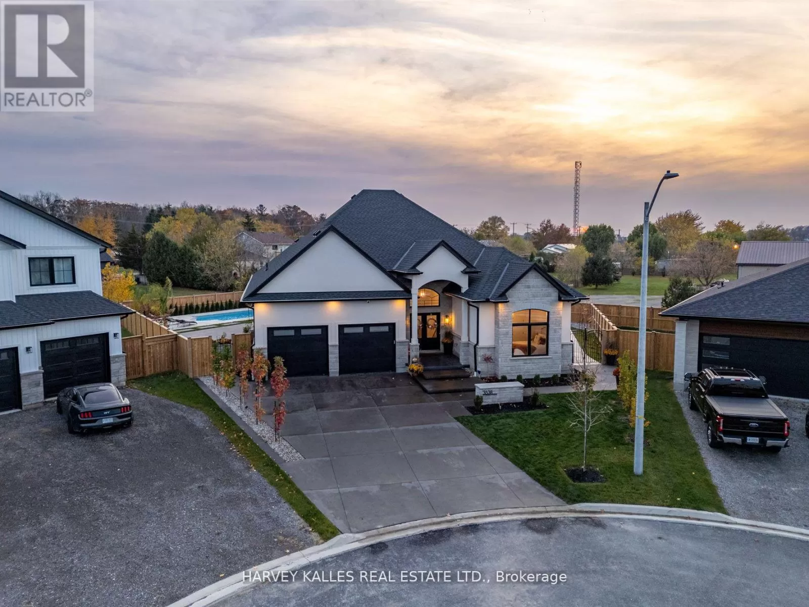 FLY ROAD TO CAMPDEN TO MANSON Welcome to 3638 Vosburgh Place, nestled in the quaint, quiet community of Campden Estates. Sitting on a large pie shape lot, located on the top of the bench of the Niagara Escarpment in beautiful Campden Ontario, surrounded by award winning wineries and the picturesque Bruce trail. Built in 2023 by award winning builder Parkside Custom Homes. This gorgeous 2,181 square ft bungalow features 3 beds, 2.5 baths and a double car garage. Upon entering this gorgeous home, you are welcome into a neutral palette of finishes and a sun filled main floor with many large windows that flood this home with an abundance of natural sunlight. The main level features a large great rm with beautiful fireplace, perfectly positioned next to the dining rm. Just off the dining room is a large custom maple kitchen worthy of any design magazine, highlighted by stainless-steel appliances, and plenty of cabinetry to store all your culinary needs, 14ft foyer, cathedral ceiling in great rm and 10 ft ceilings throughout the rest of the home, w/lighted tray ceiling in primary; luxurious ensuite, heated ensuite bathroom floors & large walk in closet, oak stairs with wrought iron railings, higher baseboards and thicker back band casings. State of the art security system, and home surveillance, water purification system, CAT 6 wiring, Central Vac and Central AC, 8 ft garage doors. The enormous basement with 9 high ceilings is a blank canvas waiting for you to put your personal touches on it, conveniently roughed in for future bathroom. Step outside to your very own backyard oasis complete with a spacious covered patio, pool house and an additional patio-sport court area perfect for those summertime pool parties & Barbeques. Steps away is the custom-built saltwater swimming pool featuring a tranquil waterfall. Exterior also features poured concrete foundation, and 50-year shingles, and transferable remaining TARION warranty. Think this may be your dream home? Book your personal private tour today! (id:27476)