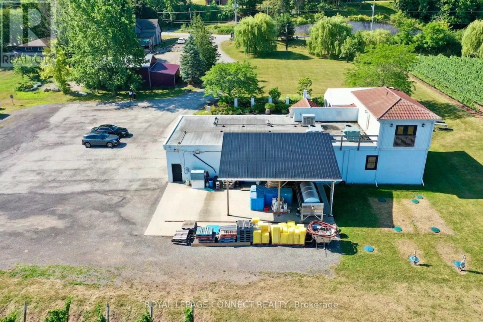 Cross Streets: Cherry Street and King Street. ** Directions: East of Cherry Street turn left before the Watering Can. Established Winery Operation (Business and Branding Not For Sale) spanning 9.18 acres together with land,buildings, and all operational assets. Located in the iconic Niagara Escarpment celebrated forits unique micro-climate. The property features a well-established vineyard with mature Merlot, Chardonnay, and CabernetFranc plantings. Known for producing award-winning wines, offering buyers a proven foundationfor future growth. Survey/ Site Layout attached. Bottling capacity, equipment lists, maintenance contracts, and other pertinent operationalinformation will be provided upon execution of a Confidentiality Agreement. All licenses andcertifications are current. The property accommodates events of approximately 200-250 guests. The 3,828SF building interior features a reception area, tasting room, retail lounge,washrooms, kitchen, production area, temperature-controlled cold room, barrel cellar, andstorage/ utility rooms. The second floor includes offices with staff washroom and a laboratory/testing room, with potential for residential use. See Interior floor layout plan. The property offers a stone patio and lounge with marquee tent, extensive landscaping, alean-to covered crush pad, barrel cellar access, picnic bench area, and ample parking. Agrade-level drive-in door allows for efficient shipping and handling. Multiple walk-outs andinternal access points seamlessly connect interior and exterior spaces. The most recent building addition was completed circa 2013. Situated in a highly sought-after location along the Niagara-on-the-Lake wine route, theproperty is surrounded by established anchor businesses such as The Watering Can and BenchBrewery. Ideally positioned just minutes from the QEW, with King Street (Hwy 81) runningdirectly through Beamsville and the scenic landscapes of Vineland before continuing towardCambridge/Niagara, this property offers exceptional visibility and accessibility.Click on Virtual Tour links for listing assets. (id:27476)