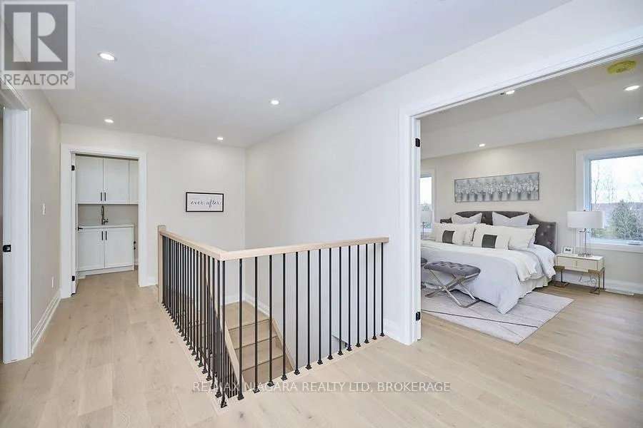 Cross Streets: Campden Rd. ** Directions: Campden Rd to Manson Lane. Beautiful 4-bedroom + den, 2.5-bath home in sought-after Campden Estates, located on a quiet cul-de-sac with no rear neighbours. Featuring 9-ft ceilings, upgraded engineered flooring, and a bright open-concept layout with a custom kitchen, quartz counters, stainless steel appliances, and a walk-in pantry. Living room with a gas fireplace and large windows for natural light. Upstairs boasts a spacious primary suite with coffered ceiling, walk-in closet, and a 5-pc ensuite with heated floors. Three additional bedrooms share another 5-pc bath. The unfinished basement offers excellent potential for a gym, rec room, or office. Close to vineyards, trails, schools, and just minutes to QEW the perfect mix of small-town living and modern convenience. (id:27476)