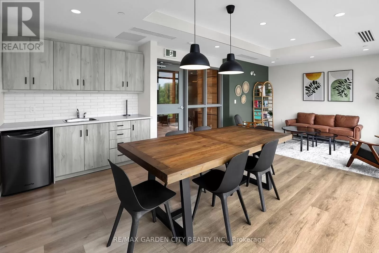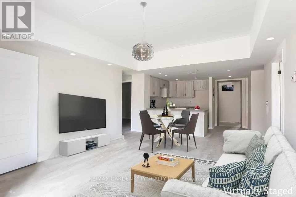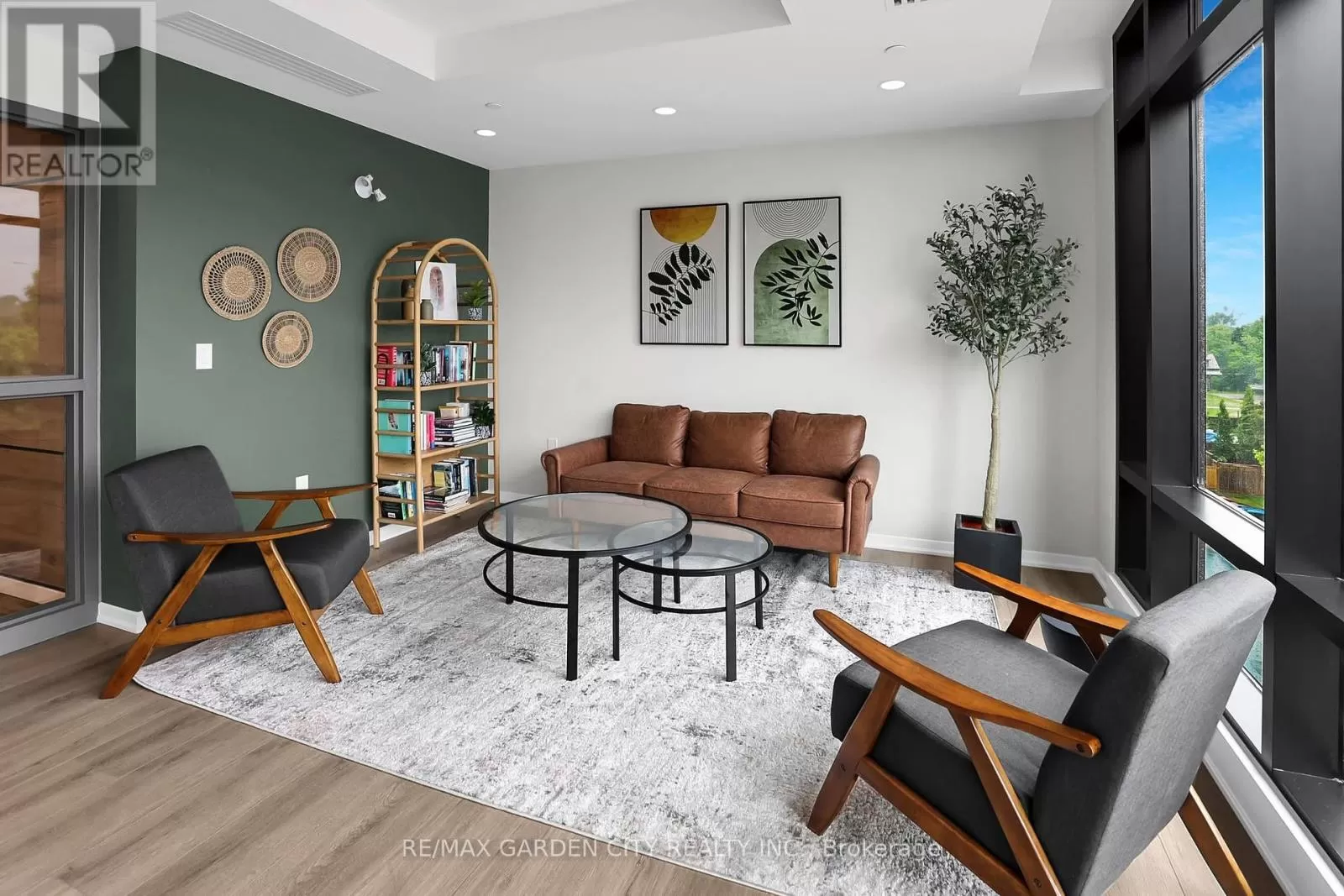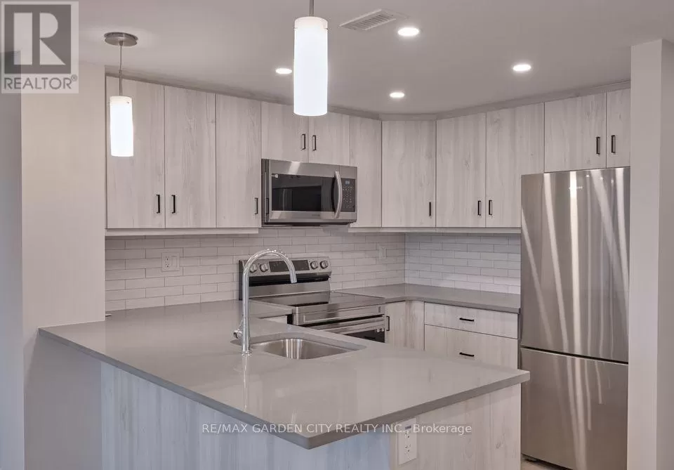 Victoria Ave CONDO FOR LEASE at ADELAAR! Unit #412 is a top floor, corner unit that has 2 bedrooms, + den, and 1 bath. This condo offers a spacious open layout of 990 sqft with a private balcony (with the nicest view in the whole building)! Bonus features include luxury vinyl plank flooring throughout, beautiful quartz countertops, upgraded light fixtures/pot lights, custom shades, and appliances (including laundry) in your suite. This condo also offers upscale amenities such as the multi-purpose family room/lounge with kitchenette and large harvest table to host gatherings and can be used as an extension of your living area, brand new fitness room exclusively for Adelaar residents. One parking space included. Additional parking spaces available. *Smoke-free building* Tenant to pay utilities (hydro/water/internet) Available for lease as of December 16 2025. (id:27476)