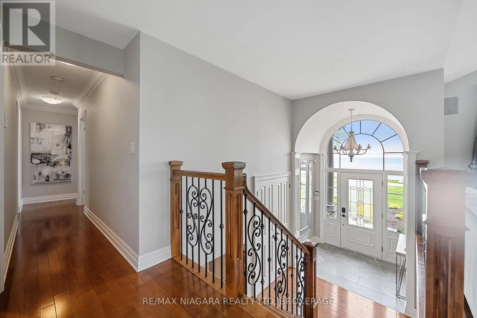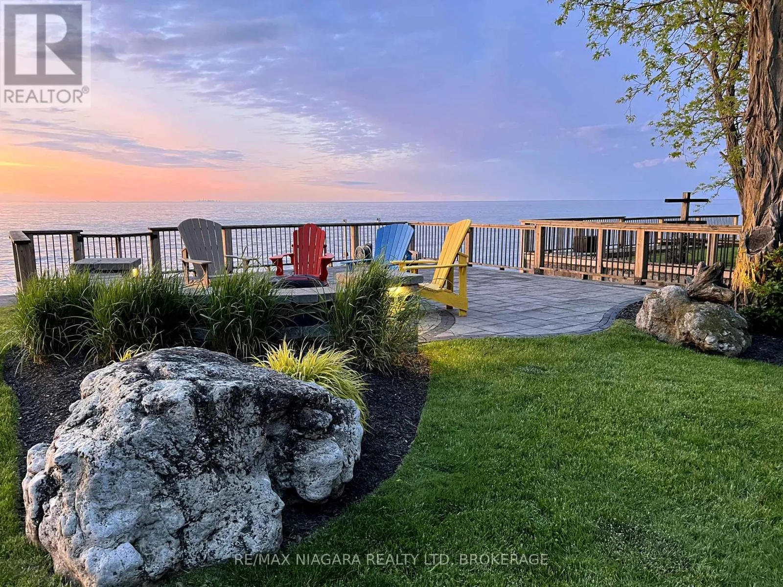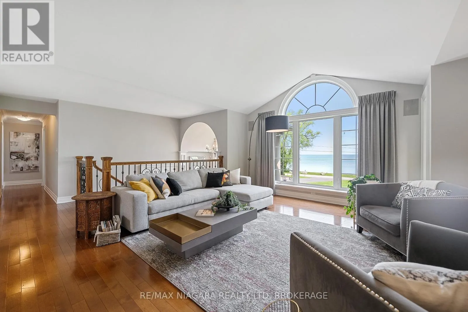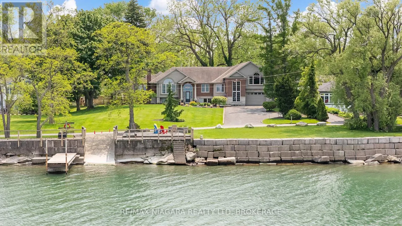 NORTH SERVICE RD - SANN RD N Discover your own slice of waterfront paradise with this thoughtfully designed 6-bedroom, 3-bathroom home that offers the ideal blend of luxury, comfort, and functionality. Step through the inviting foyer and ascend to the spectacular open-concept main floor, where soaring cathedral ceilings and gleaming hardwood floors create an atmosphere of warmth and elegance. Large windows frame stunning lake vistas, flooding the space with natural light throughout the day. The expansive sitting room flows seamlessly into the formal dining room, both showcasing the home's signature hardwood floors and cathedral ceilings. The heart of the home boasts a spacious kitchen designed for both everyday living and entertaining. Sliding doors from the kitchen open to the rear deck, offering easy access to the beautifully landscaped backyard sanctuary. The main floor houses 4 bedrooms, including a luxurious primary suite featuring a spa-like 5-piece ensuite complete with a relaxing soaker tub. A convenient 3-piece bathroom serves the additional bedrooms and guests. For added flexibility, a short staircase leads to the fourth bedroom and expansive office space that could easily be converted into a larger primary suite. The thoughtfully finished lower level features a spacious recreation room with wet bar, two additional bedrooms, a 3-piece bathroom, practical laundry facilities, and valuable storage space. A separate entrance provides convenient access to the mudroom and extended garage, perfect for multigenerational living arrangements. The property's crown jewel is the private lakeside dock, your personal gateway to endless summer memories. Whether you're soaking up the morning sun with coffee or gathering with loved ones for sunset celebrations, this waterfront retreat offers unparalleled relaxation and recreation opportunities, and the ultimate lakefront lifestyle on Lake Ontario's stunning shoreline. Luxury Certified. (id:27476)