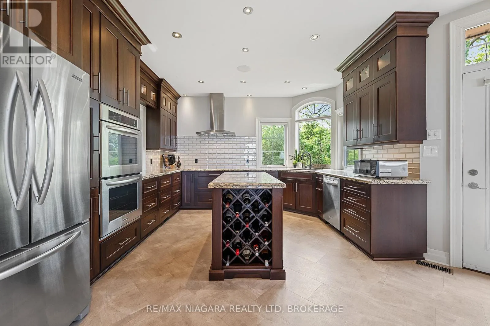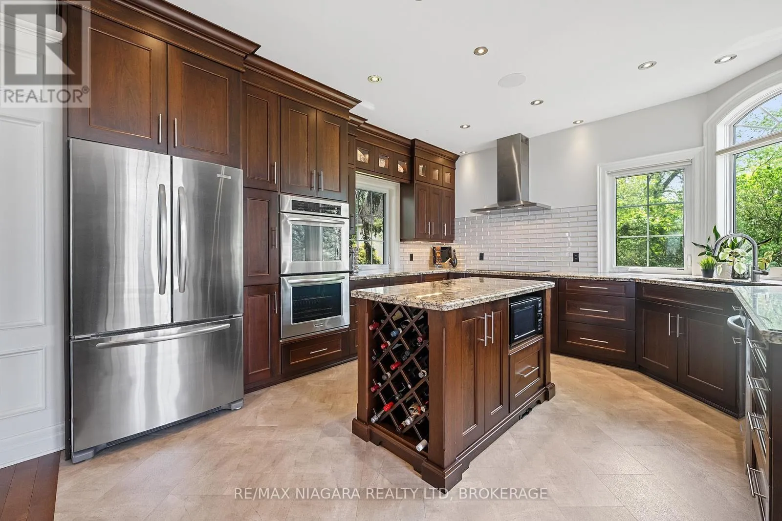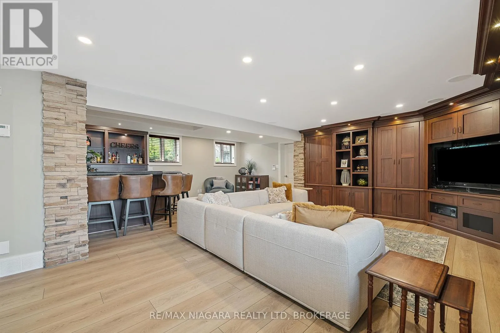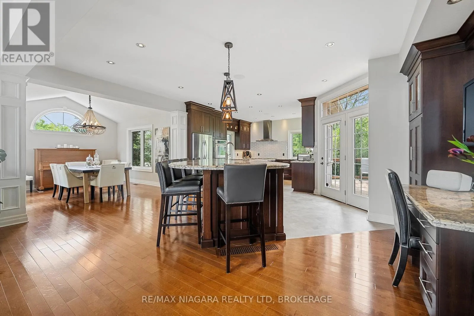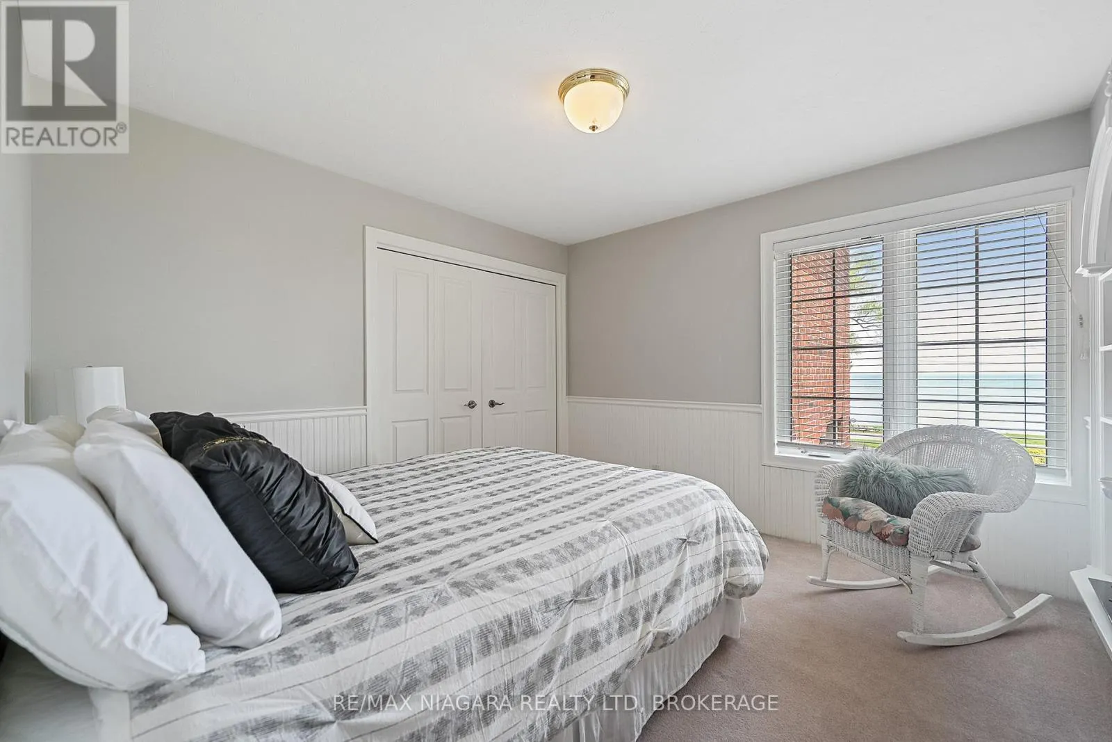 NORTH SERVICE RD - SANN RD N Discover your own slice of waterfront paradise with this thoughtfully designed 6-bedroom, 3-bathroom home that offers the ideal blend of luxury, comfort, and functionality. Step through the inviting foyer and ascend to the spectacular open-concept main floor, where soaring cathedral ceilings and gleaming hardwood floors create an atmosphere of warmth and elegance. Large windows frame stunning lake vistas, flooding the space with natural light throughout the day. The expansive sitting room flows seamlessly into the formal dining room, both showcasing the home's signature hardwood floors and cathedral ceilings. The heart of the home boasts a spacious kitchen designed for both everyday living and entertaining. Sliding doors from the kitchen open to the rear deck, offering easy access to the beautifully landscaped backyard sanctuary. The main floor houses 4 bedrooms, including a luxurious primary suite featuring a spa-like 5-piece ensuite complete with a relaxing soaker tub. A convenient 3-piece bathroom serves the additional bedrooms and guests. For added flexibility, a short staircase leads to the fourth bedroom and expansive office space that could easily be converted into a larger primary suite. The thoughtfully finished lower level features a spacious recreation room with wet bar, two additional bedrooms, a 3-piece bathroom, practical laundry facilities, and valuable storage space. A separate entrance provides convenient access to the mudroom and extended garage, perfect for multigenerational living arrangements. The property's crown jewel is the private lakeside dock, your personal gateway to endless summer memories. Whether you're soaking up the morning sun with coffee or gathering with loved ones for sunset celebrations, this waterfront retreat offers unparalleled relaxation and recreation opportunities, and the ultimate lakefront lifestyle on Lake Ontario's stunning shoreline. Luxury Certified. (id:27476)