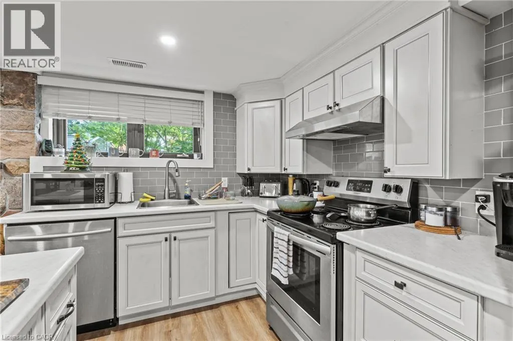 King St. to William St Fantastic Income Potential in the Heart of Beamsville! This spacious backsplit with an in-law suite is the perfect opportunity for investors, house hackers, and first-time buyers alike. Located in a beautiful, family-friendly neighbourhood, the property is walking distance to downtown Beamsville, shopping, schools, and transitâmaking it ideal for both tenants and long-term equity growth. The home features two self-contained units, each with its own entrance, updated finishes, and stainless steel appliances. The upper level offers a bright, L-shaped living room, enclosed front porch, 3 bedrooms, and a 4-piece bathroom. The lower unit includes 2 bedrooms, a 3-piece bathroom, and an open-concept kitchen, living, and dining area with a cozy gas fireplace. Outside, you'll find a detached 2-car garage and a concrete driveway with ample parking. Set on a massive lot with residential zoning, this property offers not only current rental potential, but also room to explore future possibilitiesâwhether you're considering a garden suite, additional upgrades, or long-term investment growth. (id:27476)