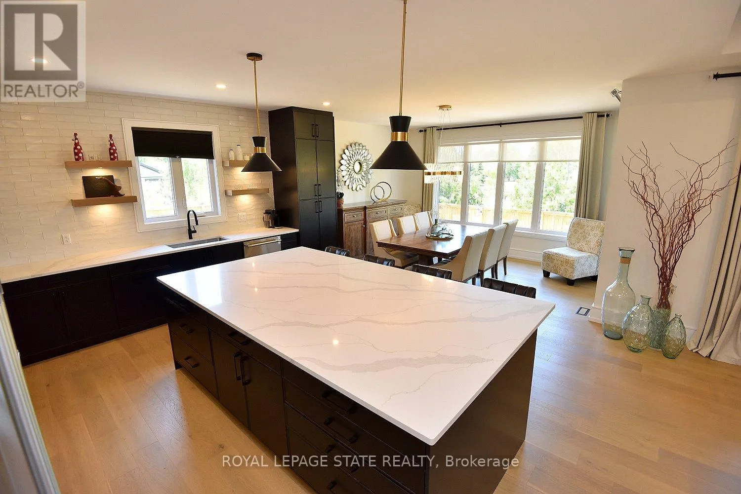 Cross Streets: Manson Lane. ** Directions: Campden Rd to Manson Lane to Vosburgh Pl. Welcome to Campden Highland Estates! 2024 custom-built bungalow in quiet court on pie shaped lot, 3+2 bedrooms 3.5 baths, 4000 sqft of living space with walk-up, blending style & functionality. Covered porch entry. Chef's dream kitchen features black cabinetry,9island,stunning quartz countertops, Thermador 6 burner gas range, dishwasher & fridge, small appliance garage, pot & pan drawers & pantry cabinet. Decadent living area with tray ceiling, stunning linear gas fireplace in dark marble effect feature wall with surrounding built-ins & contrasting shelving, creating a stylish & relaxing atmosphere. Neutral tones, light engineered hardwood & ceramic flooring compliment the modern style. Patio doors from the dining area lead to a covered back deck designed to enjoy sunsets and views - with enclosed storage under too. The fully fenced yard has space & potential for a pool and more - it's waiting for your design! The king-sized primary bedroom is a retreat, large windows & tray ceiling, with both a pocket door walk-in closet & separate double closet, complete with ensuite that boasts a fully tiled glass door shower with rain head & hand held, oval soaker tub & double floating quartz counter vanity. The other main-floor bedrooms share a beautifully appointed four-piece bathroom. The 2-piece guest bath, laundry/mud room complete this level. The bright basement, filled with natural light has 8ft ceilings, French door walk-up, above grade windows, large living/family area providing plenty of space for any need, for teens or in-laws alike. In addition, 2 bedrooms, den, gym/movie room, 4-piece bathroom, storage & cold room make this a comfortable & functional living space. This home is carpet free, engineered hardwood & ceramics on main flr and laminate flooring in the bsmt. Double garage, triple driveway for 4+cars & Tarion Warranty. Schools, shopping, trails, orchards, wineries, breweries and QEW are all within minutes of this 'must see to appreciate' beautiful home! RSA (id:27476)