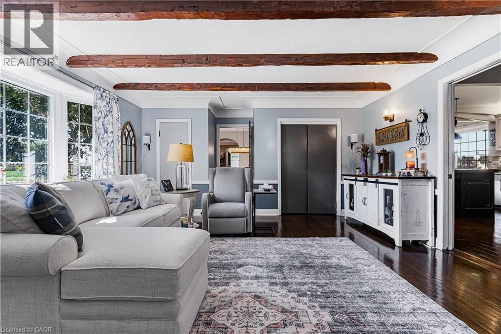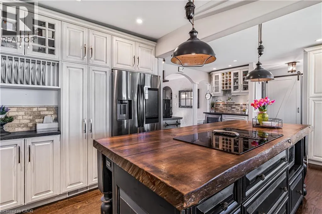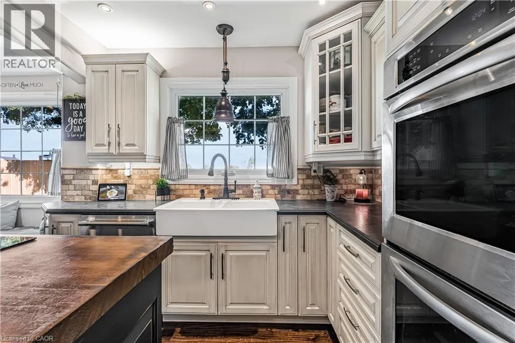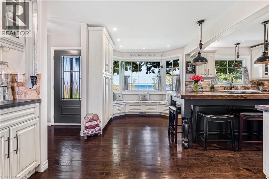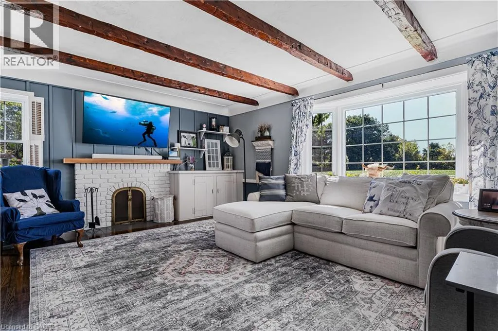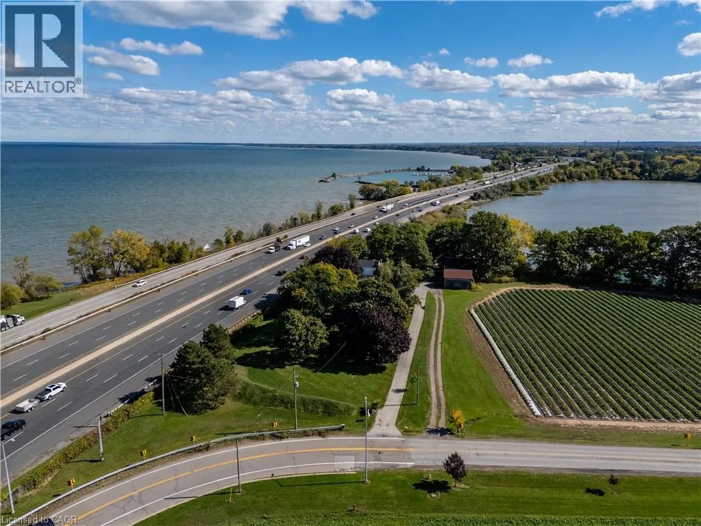 VICTORIA AVE to S. SERVICE RD EAST, WHICH TURNS INTO TWENTY-FIRST STREET This beautifully restored 1930s farmhouse combines modern updates with classic character, and clear views of Lake Ontario. The property is located just minutes from Jordan Village, and is also within walking distance of Jordan Harbour Conservation Area - home of the Niagara Rowing School. Car commuters will appreciate the quick QEW access, and that you're just a short walk from the Victoria Avenue Vineland MTO carpool lot with its GO Bus service to Toronto and to Niagara. The home features 4 bedrooms, 2.5 baths. The main floor consists of a formal living room with a wood-burning fireplace and walkout to a lake-view porch. The kitchen is the heart of the home, with an 8-foot island with cooktop, double wall ovens, stainless steel appliances, and a bright bay window seat overlooking the lake. A large family room, separate dining room, laundry, and powder room complete the main level. Two staircases take you to the 2nd level, with main bathroom, three bedrooms, and a fourth spacious primary suite with a walk-through closet/loft area, and 5-piece ensuite with a freestanding tub, glass shower, and double sinks. One of the bedrooms on this 2nd floor includes access to a large balcony, where you can catch some great views of the neighbouring strawberry fields and Lake Ontario. Major updates to the home include a steel roof (2015), furnace and A/C (2017), and 200-amp electrical service. The detached garage has two 1.5-size bays, and the driveway accommodates parking for 8+ vehicles. The yard includes an above-ground pool, play area with zipline and fort, and open views. At just over 1 acre, this property offers plenty of room for an active family with the bonus of its proximity to Jordan Harbour, where you can enjoy fishing, canoeing, kayaking, rowing, or paddleboarding - and full access to Lake Ontario. Come see, come sigh! (id:27476)