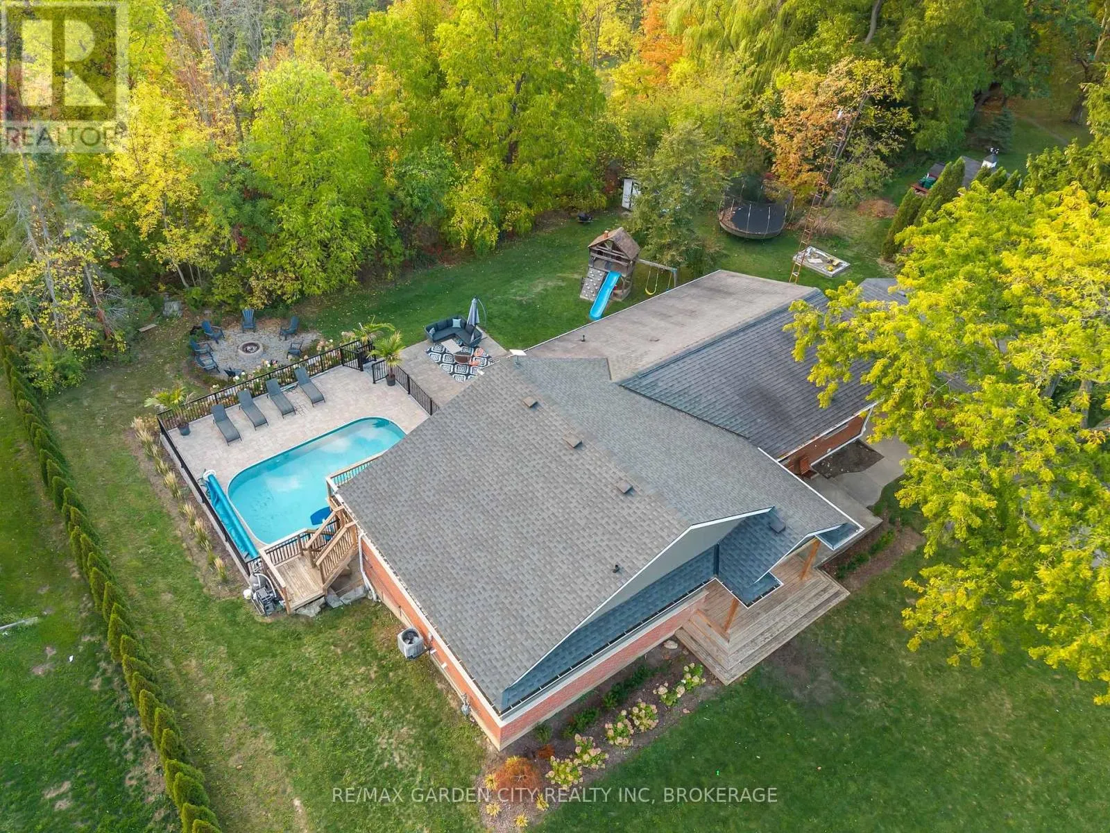 Cross Streets: Red Maple Ave. ** Directions: North from South Service Road. Welcome to this gorgeous Jordan home where prime location, picturesque ravine views a stunning walkout bungalow, peaceful country living, and gorgeous outdoor oasis meet! **Beautifully renovated in 2018, this spacious bungalow features a custom kitchen with a massive island, cathedral ceilings, and sun-filled open-concept living spaces with breathtaking views and sunsets. **The main level offers four generously sized bedrooms, a walk-in closet, and a large front entry with double closets. **The bright walkout lower level continues to impress with expansive windows offering gorgeous views and natural sunlight - from the bedroom or rec room flex space, to the laundry room and bonus room! **A separate bonus room with its own separate entrance opens up endless possibilities from a potential in-law apartment suite to a second rec room or home gym! **Step outside, relax and entertain in your private outdoor oasis featuring a *heated pool (new heater in 2024), patios, and a cozy fire pit area-all overlooking the tranquil ravine, with plenty of green space for children to play. **Location Location Location! Enjoy a short, scenic drive along rolling country roads to the QEW or the beautiful beaches of Lake Ontario-or slow things down with peaceful country walks. Hiking trails, charming Jordan Village, and convenient amenities are all close by. **2018 updates include not only a new custom kitchen, but also flooring, most windows, and A/C-saving time and future expenses. 3000 gallon cistern. This is a rare opportunity to own a turn-key country retreat in one of Niagara's most desirable communities! (id:27476)