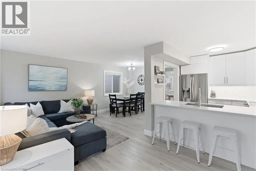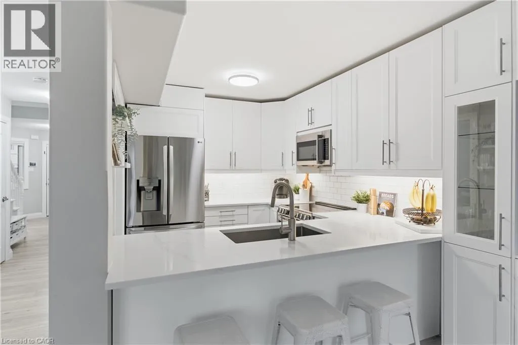 John to Michael, left on Christopher Welcome to Wine Country! 4399 Christopher Court is a stunning, turnkey end-unit townhouse that truly checks all the boxes. Fully updated from top to bottom, this three-bedroom, four-bathroom home is move-in readyâjust pick up the keys and settle in. The bright, open-concept main floor is sure to impress with its custom white kitchen featuring stainless steel appliances, quartz countertops, and a massive built-in entertainment unit with a 75 TV and ample storage. Step directly out to the fully fenced backyard, complete with a two-tiered deckâperfect for entertaining, grilling, or letting the kids play. Upstairs, youâll find a spacious laundry room with plenty of storage, a primary suite with a brand-new 3-piece ensuite and walk-in closet, plus two additional bedrooms and an updated 4-piece main bath. The finished lower level adds even more living space with a large rec room, home gym area, 2-piece bathroom, and plenty of natural light through oversized windows. Located just steps from both public and Catholic schools and minutes from downtown Beamsville, this immaculate family home truly has it all. No disappointments hereâcome see it for yourself! (id:27476)