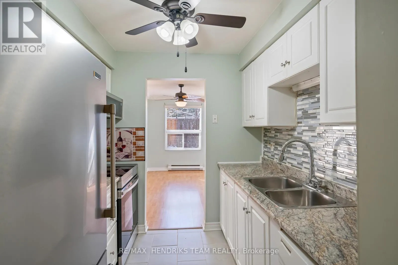 Cross Streets: King Street. ** Directions: EXIT QEW AT ONTARIO ST., BEAMSVILLE. NORTH ON ONTARIO TO KING STREET. WEST ON KING TO HIXON STREET. NORTH ON HIXON. This move-in-ready, carpet-free condo offers spacious main-floor living in a well-maintained building in the heart of Beamsville. It features two bright bedrooms with double closets and a modern three-piece bathroom with a walk-in shower. The unit is freshly painted in neutral tones, creating a clean and welcoming atmosphere. The kitchen is in excellent condition with updated appliances, and the separate dining room provides plenty of space for a full-sized table-ideal for everyday meals or entertaining. The living room opens to a private patio through sliding glass doors, offering a peaceful spot to relax outdoors. Additional conveniences include coin-operated laundry just steps away, access to a party room for social gatherings, and one dedicated parking space. This condo combines comfort, functionality, and a prime location close to all that Beamsville has to offer. (id:27476)