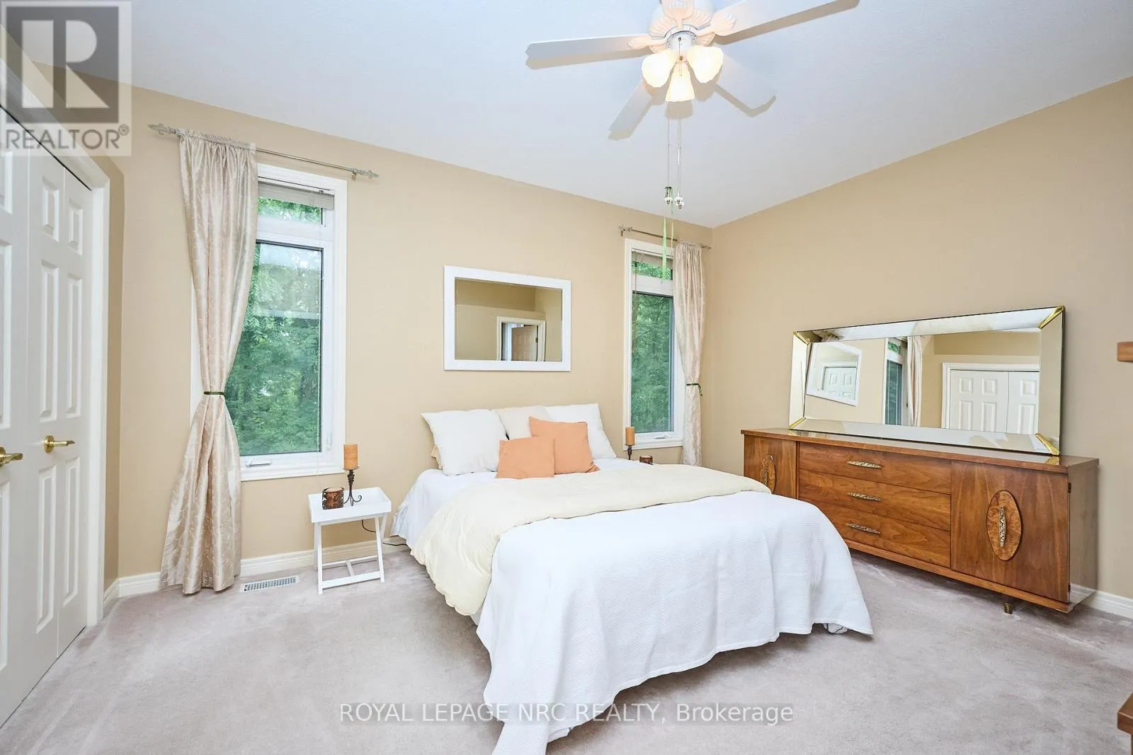 Cross Streets: VICTORIA AVE N, N. SERVICE RD. ** Directions: North on Victoria Ave N, Right on Dustan, First Left. Serenely positioned on a landscaped ravine lot in the prestigious Victoria Shores, sits this beautiful raised bungalow. You are welcomed to this home by a covered front porch and outdoor sitting area leading into the foyer defined by the impressive soaring ceiling and offers a double coat closet and convenient garage access. The thoughtfully designed main level features large windows and gas fireplace in the living room, which seamlessly flows into the dining area and kitchen, equipped with modern appliances, ample cabinetry and breakfast bar. The effortless transition from the kitchen to the private balcony elevates the space, creating an ideal setting for quiet dinners or hosting guests amidst the natural surroundings. Completing the main floor are 2 spacious bedrooms, including a primary suite that serves as a peaceful retreat and boasts ensuite privilege, 2 double closets and large windows to frame the serene ravine views. The finished basement provides additional living space, highlighted by a cozy gas fireplace and a walk-out to the lower patio. It also includes an additional bedroom with walk-in closet - perfect for guests or family members. The outdoor areas are just as impressive - the manicured lawn, lush perennial gardens and mature trees provide year-round colour and privacy. The concrete patio overlooks the tranquil ravine, offering serene views of the wooded backdrop. With a double driveway and attached garage, you'll have plenty of room for vehicles and storage, enhancing the convenience and functionality of this stunning home. Nestled in the coveted Victoria Shores community, this property offers not just a home, but a lifestyle enriched by the surrounding natural beauty and exclusive neighbourhood amenities. Come and experience the perfect blend of luxury and comfort in this exceptional raised bungalow. (id:27476)
