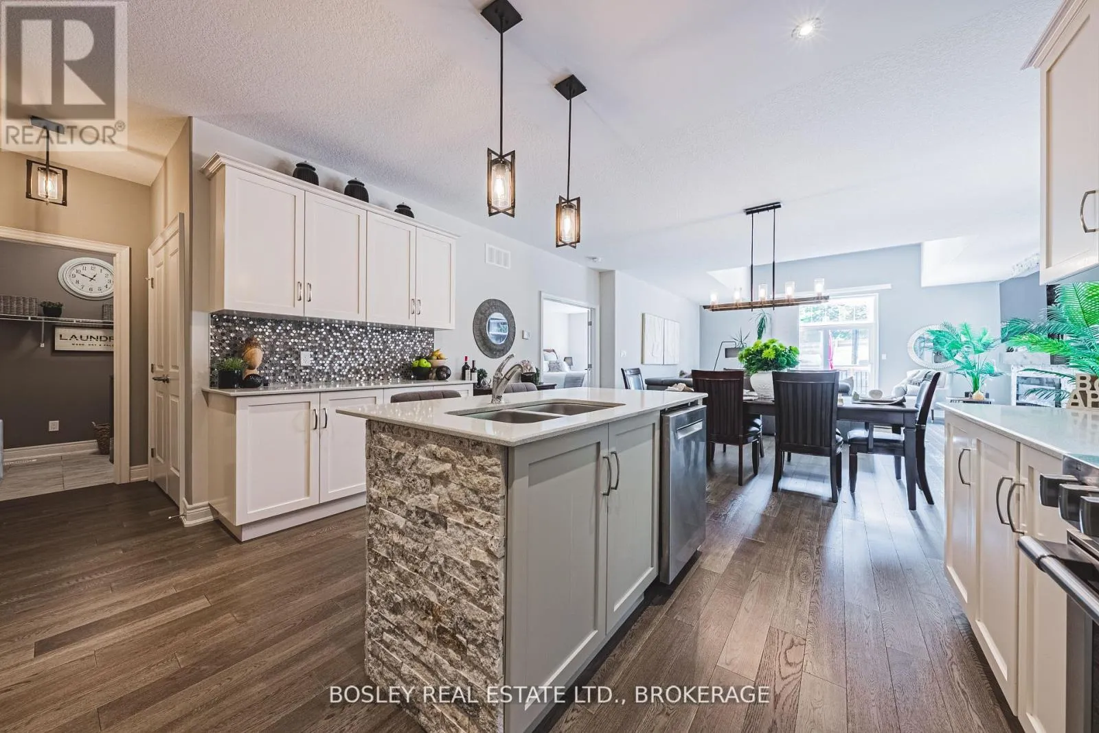 KING & 19TH Welcome to maintenance-free living in the picturesque community of Jordan Village! This nearly 3000 sq. ft. condo beautifully combines comfort, style & convenience...all while being a short stroll to vibrant Jordan Village & minutes away from Niagara Bench Wineries, restaurants & shops! Step inside and be welcomed by the bright & inviting sitting room directly off the foyer. The spacious rec-room is a big, blank canvas, featuring a charming stone fireplace, lots of light & is just waiting for your vision to take it to the next level! Off the recreation room, through double doors is a spacious bedroom, with lots of light & an ensuite privilege bath. Head up to the main floor to discover an open concept living area enhanced by 9 foot ceilings, creating a bright and airy atmosphere. The classic white kitchen is sporting a glass & tile backsplash, stone counters, stainless steel appliances, centre island & additional servery cabinetry. Adjacent to the kitchen is the bright dining room, flooded with natural light & perfect for hosting family & large enough to entertain your closest friends. You'll love the bright living room with it's stone accent fireplace & rustic mantle, high ceilings and especially, the oversized walk-out doors leading to your private deck, perfect for outdoor enjoyment. The primary suite serves as a tranquil retreat, complete with an large walk-in closet and a stylish 5-piece ensuite, featuring double sinks, a walk-in tiled shower & a large free-standing soaker tub. The main floor also offers a dedicated laundry room and a generous second main floor bedroom, complete with ensuite privilege. Outside, this private end unit allows for tranquility with no rear or side neighbours, complimented by a wraparound porch that invites you to relax & unwind. This condo is an ideal choice for those seeking a vibrant retirement lifestyle in a community that feels like a weekend getaway. Don't miss your chance to experience this exceptional property, book today! (id:27476)