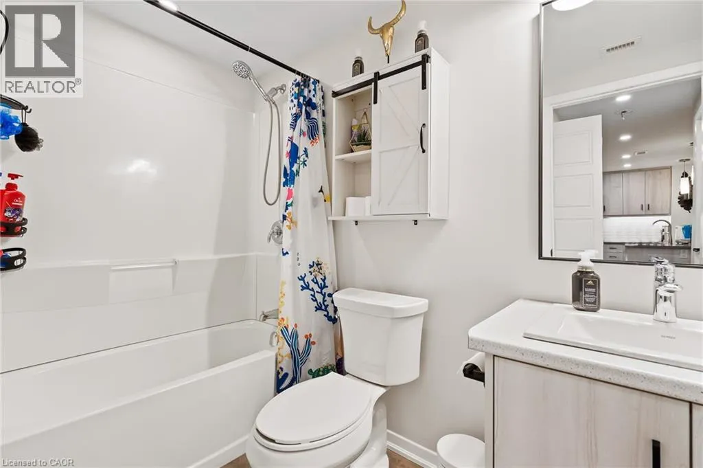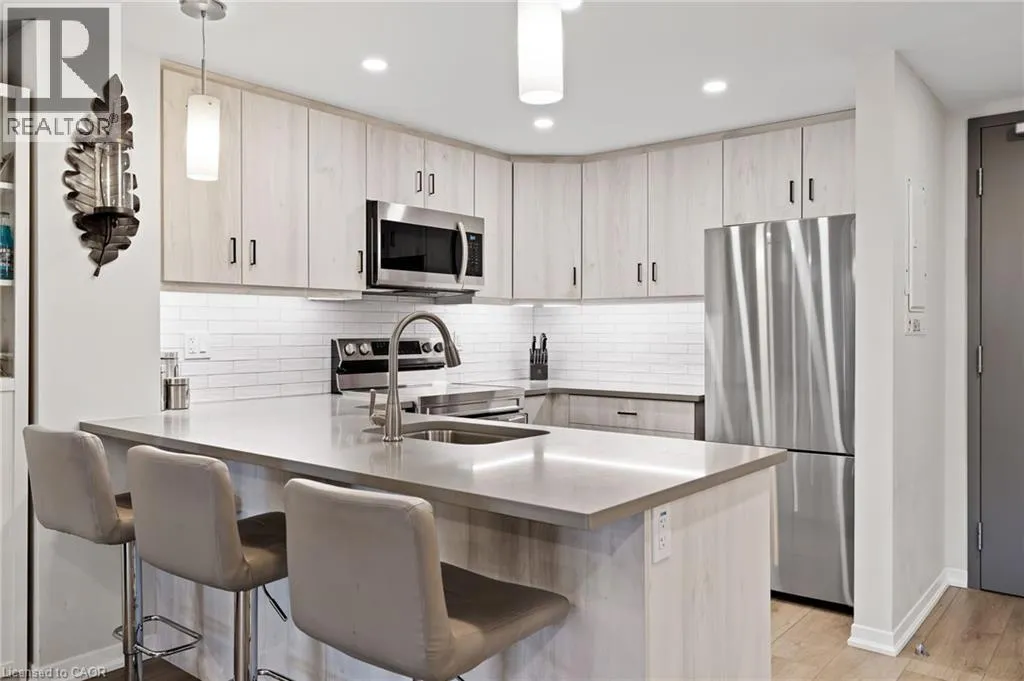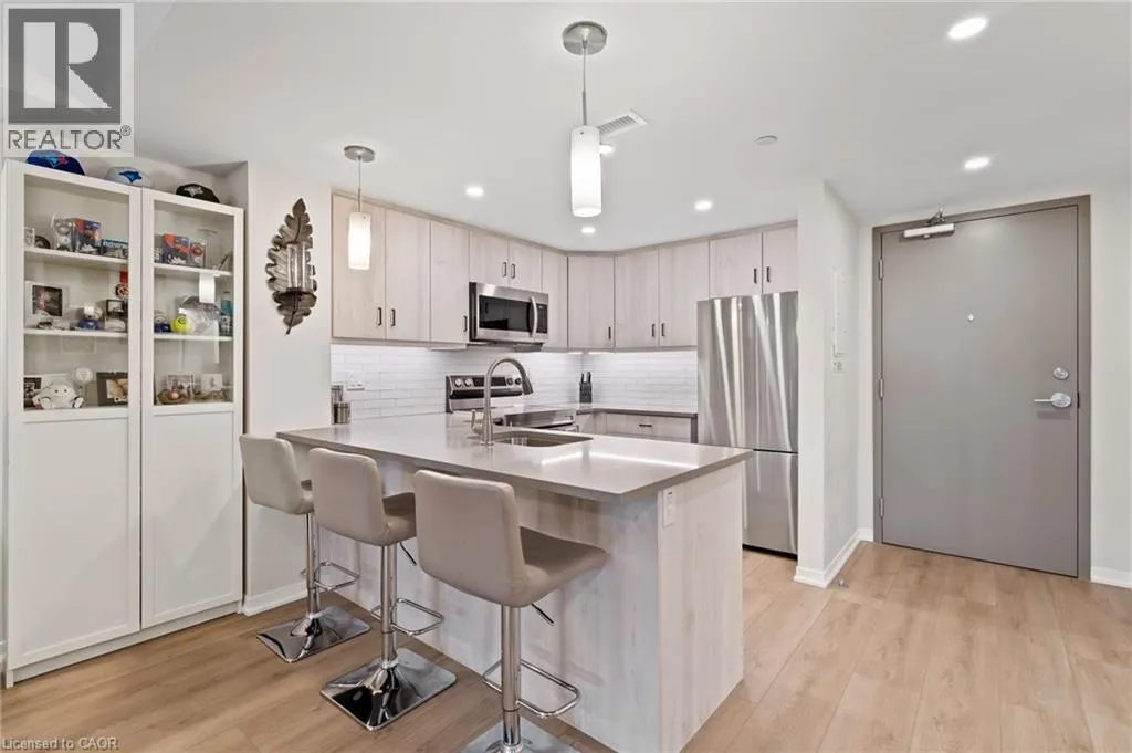 Victoria Ave & Menno St Welcome to Adelaar, a fantastic 4-storey luxury condominium built by Lincoln Construction in 2022. Nestled in the heart of Vineland, with Lake Ontario just to the north, this modern condo community offers exceptional convenience with shops, restaurants, and amenities all within walking distance. Whether you're a first-time buyer, a single or couple, or a senior looking to downsize, this is a wonderful opportunity to enter the real estate market in a stylish, low-maintenance home. This main floor 1 bedroom, 1 bath suite features an open and efficient 678 sq ft layout, complete with a spacious private walk-out that provides easy access to your unit. The interior is beautifully finished with luxury vinyl plank flooring, hard-surface countertops, upgraded light fixtures and pot lights, and in-suite appliances. Adelaar offers an impressive array of upscale amenities, including: A multi-purpose family room/lounge with kitchenette and a large harvest table-perfect for hosting gatherings or extending your living space; a fitness room exclusively for Adelaar residents; a stunning lobby and sitting area with high ceilings and abundant natural light. Make this Your Niagara Home. (id:27476)