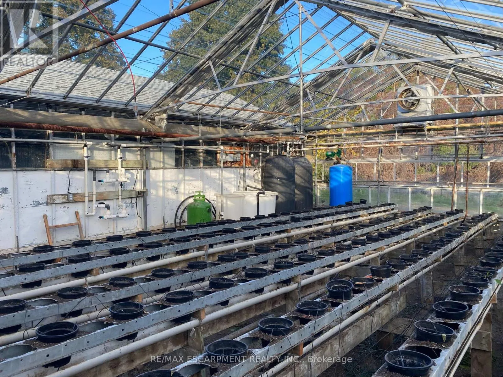 Cross Streets: Greenlane and Lincoln Ave. ** Directions: QEW, South Ontario St., West on Greenlane Rd. A rare 4.69-acre live/work agricultural property featuring two homes and a currently operating commercial greenhouse. Ideally located just west of Lincoln's urban boundary, the site offers a unique blend of residential rental income, established agricultural infrastructure, and room for future expansion. With quick access to the QEW, the property provides excellent visibility and convenience for both personal use and business operations. At the centre of the property isa 44,500 sq. ft. year-round greenhouse facility equipped with a boiler heating system, upper and lower gas line heaters, and a generator with an Enbridge gas hookup to ensure uninterrupted operation. The greenhouse is divided into three independent growing zones, allowing for crop diversification or phased production, and is supported by an automation system that provides precise climate and environmental control. Additional infrastructure includes a cooler, packing room, loading and garage area, a private office connected directly to the greenhouse, and a separate staff lounge and lunch room, creating a complete and efficient workflow for everyday operations. The residential portion of the property includes two detached single-level brick bungalows, each offering three bedrooms, two bathrooms, and attached garages. One home also features an in-ground swimming pool, providing an opportunity to live steps from your business or generate reliable rental income. Well suited for growers, agri-business operators, or investors seeking multiple revenue streams, the property is serviced by municipal water, natural gas, and a septic system, with growing equipment included. (id:27476)