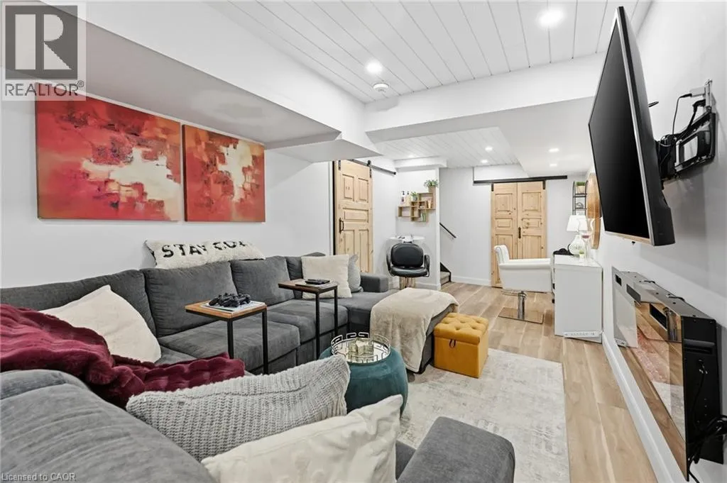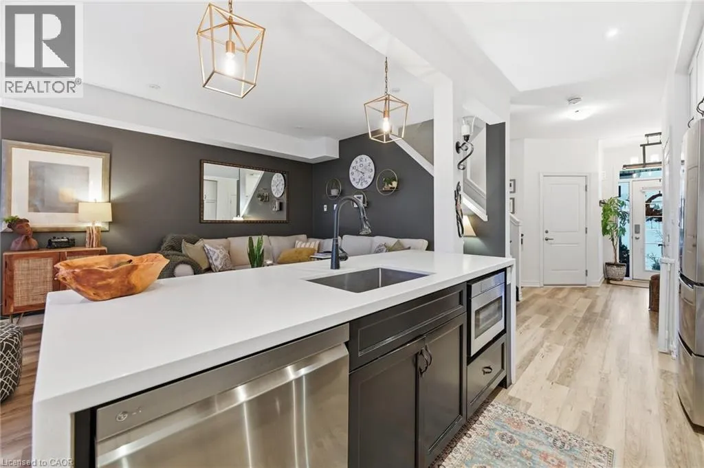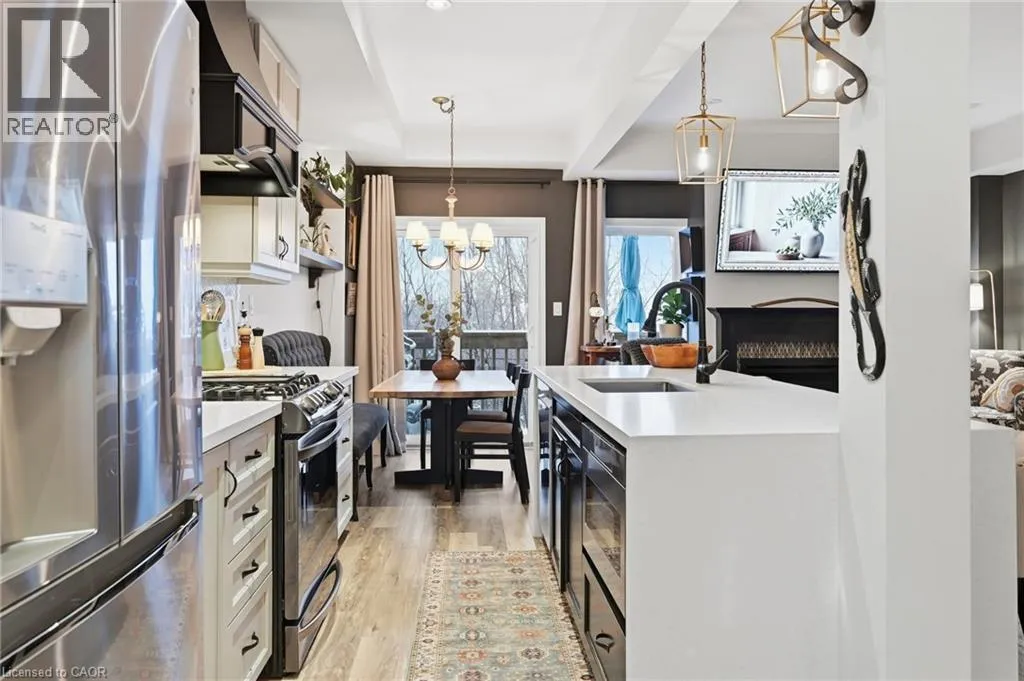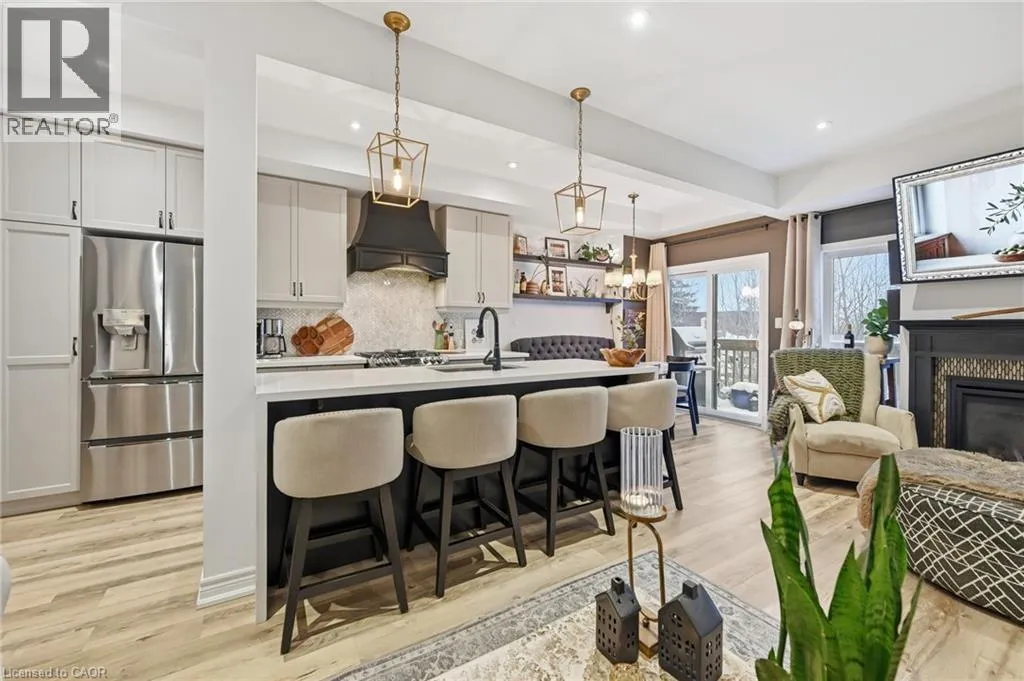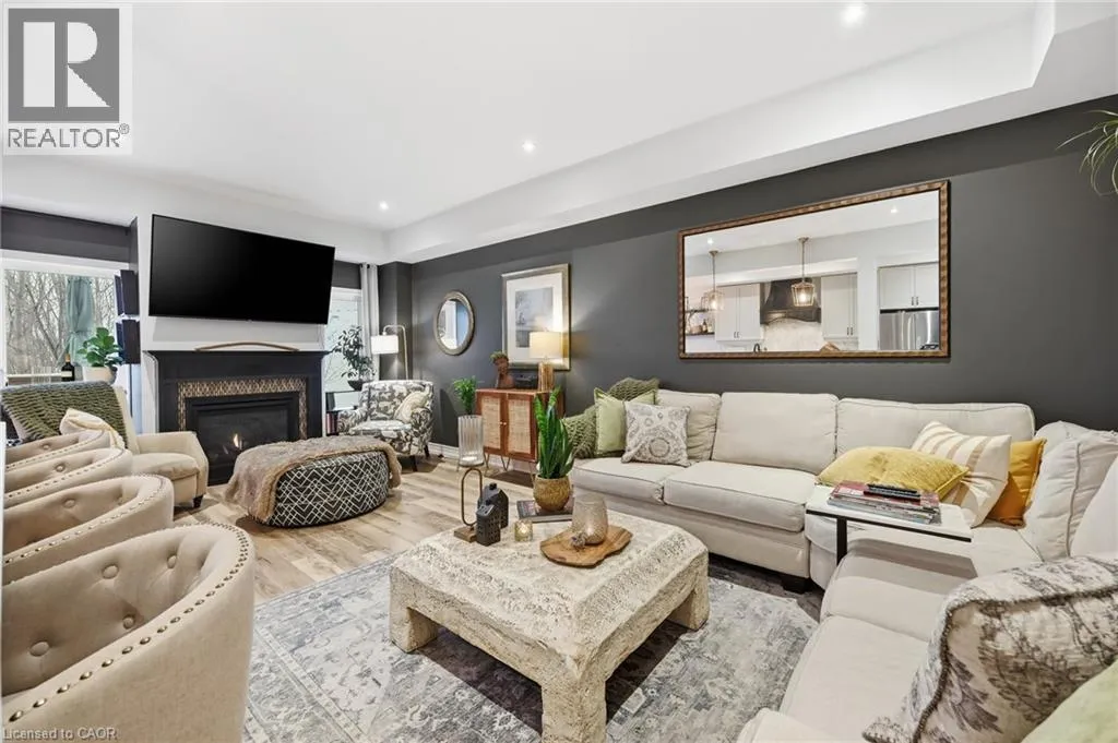 Mountain to Highland Park to Crown This stunning freehold townhome offers style, space, and sophistication throughout. The open-concept main floor features 9-foot ceilings, pot lighting, a cozy gas fireplace, and a walkout to a private deck perfect for entertaining. The gourmet upgraded kitchen is a showstopper, complete with a waterfall island and high-end finishes. Upstairs, the massive primary bedroom includes a walk-in closet and a luxurious en-suite. Two additional spacious bedrooms, a full bathroom, and a versatile bonus area ideal for a home office or reading nook complete the upper level. The fully finished walkout basement adds even more living space, with a bright recreation area, den, and access to the backyard. 1.5 car garage and driveway with side-by-side parking. No car shuffling!!! A truly exceptional home in a desirable Lincoln location! (id:27476)