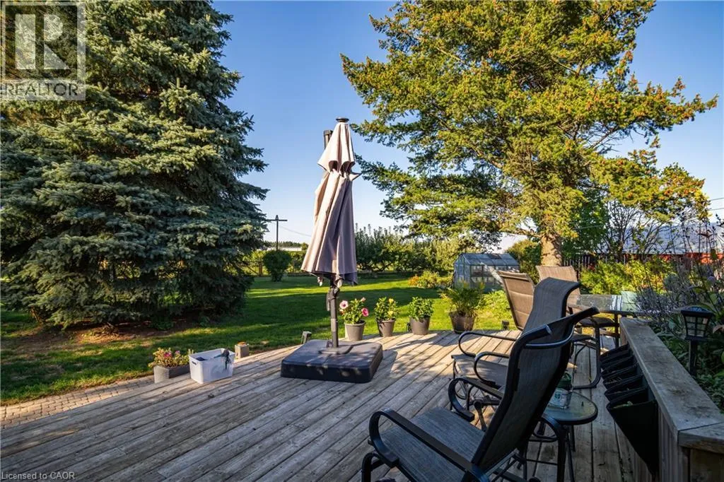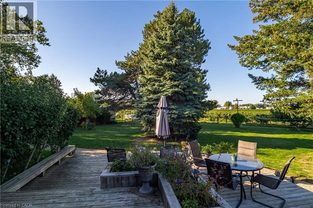 Discover the perfect blend of country charm and city convenience on 3.59 acres in the heart of Vineland - just minutes to QEW access. Enjoy the comfort of municipal water and sewers while surrounded by open space, mature landscaping and approximately 3 acres of established Cabernet Franc Grape Vines. Thoughtfully designed for multi-generational living or income potential, the home features a self-contained 1-bedroom in-law suite with its own private entrance-currently operating successfully as an Airbnb-alongside the main residence.Step into the welcoming foyer of the main home where ceramic tile and ample storage set the tone. The expansive kitchen, complete with custom maple cabinetry and hardwood flooring, flows seamlessly into the eat-in dining area. Rear sliding doors lead to a stunning 34' x 24' custom deck, the perfect setting for morning coffee or evening wine tastings. A step-down family and sitting room showcases hardwood floors, exposed wood beams, a charming brick wood-burning fireplace, and large bay windows that flood the space with natural light. The main level is completed by a versatile office, laundry room, and powder room.Upstairs, you'll find 4 generously sized bedrooms with oversized closets, a flexible loft space and a well-appointed 4-piece bath. The finished basement extends your living space. A welcoming rec-room, wet bar, full 3-piece bath with walk-in shower, wine cellar, and utility/storage areas-ideal for entertaining or extended family stays, plus potential for a fifth bedroom. The self-contained in-law suite offers privacy and comfort, featuring a spacious living room, eat-in kitchen, one bedroom, and full bath-making it ideal for extended family or continued rental income. Outdoors, the fenced backyard provides secure space for children and pets with a gate leading directly to approximately 3 acres of established grape vines. A truly rare offering - estate style living, vineyard charm, income potential all in one remarkable property (id:27476)