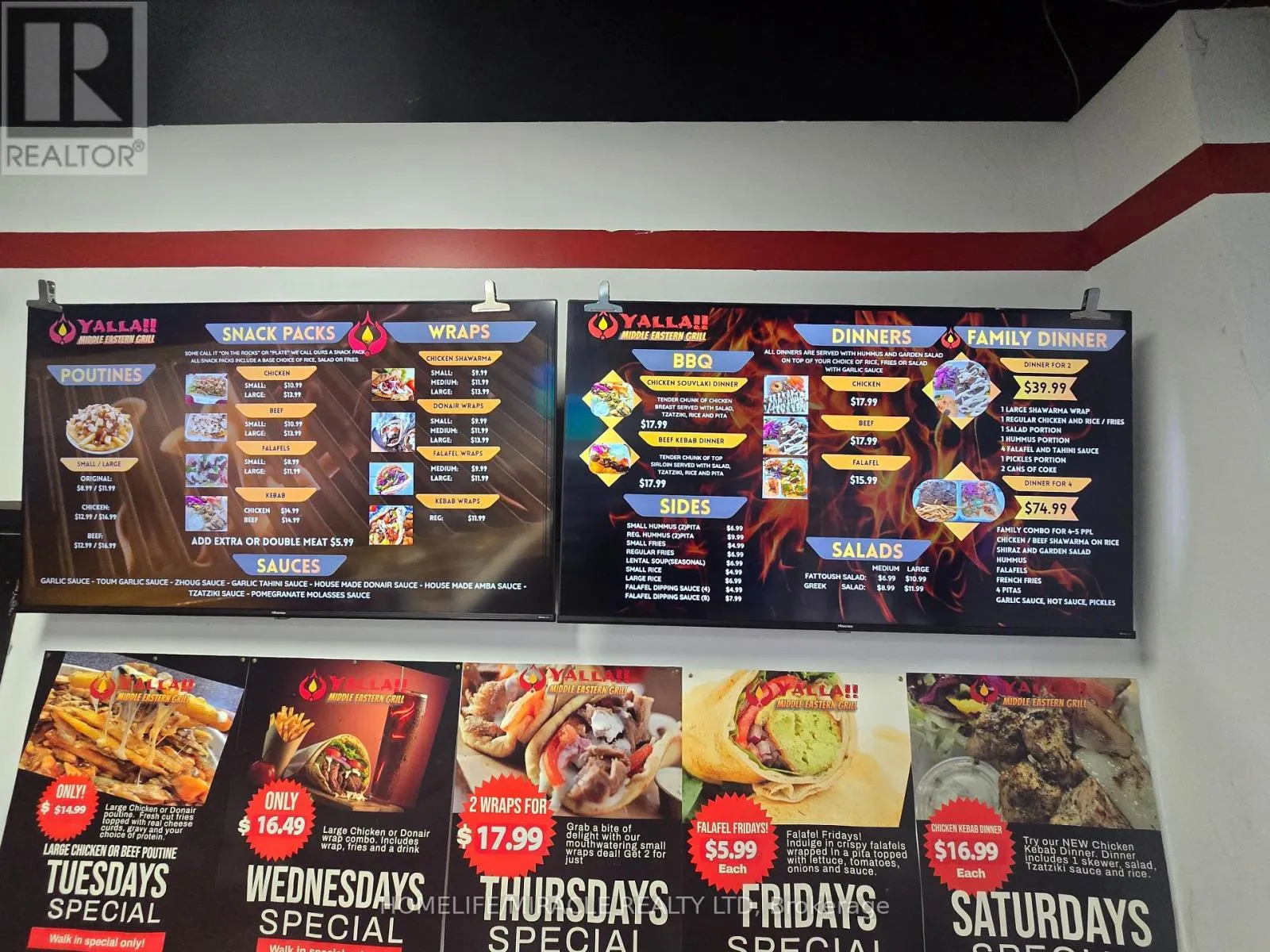 Ontario St & Friesen Blvd Prime quick-service restaurant opportunity located on Ontario Street in downtown Beamsville. This high-visibility location, just off the QEW, benefits from steady traffic and is ideally positioned to attract customers exiting the highway. Currently operating as Yalla Middle Eastern Grill, the business has demonstrated growing sales and strong income potential for an owner-operator. The space offers flexibility and may be converted to a different concept, cuisine, or franchise. The seller is willing to provide training to support a smooth transition. The premises feature a 13-foot commercial hood and newer equipment throughout, offering a well-equipped turnkey setup. Please do not approach staff or ownership directly. (id:27476)