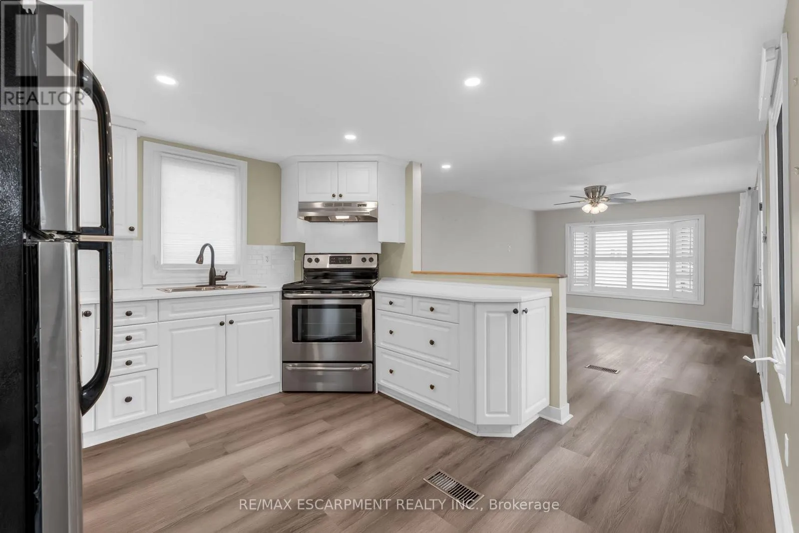 John St and Sann Rd Welcome Right-sizers! This nicely updated 2 Bedroom, 1 bathroom, bungalow is located in the Golden Horseshoe Estates in Beamsville. With no rear neighbours, and a large great room added with permits in 2023, this unit will impress you with how well it lives. 4 piece bathroom also offers convenient stacked washer and dryer hookups or room to expand the bathroom. Neutral decor throughout and lots of bright windows. Two private outdoor sitting spaces, shed for storage make this place a must see if you're looking to make a move. (id:27476)