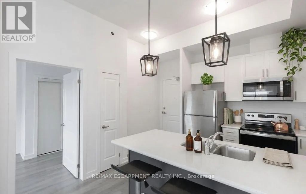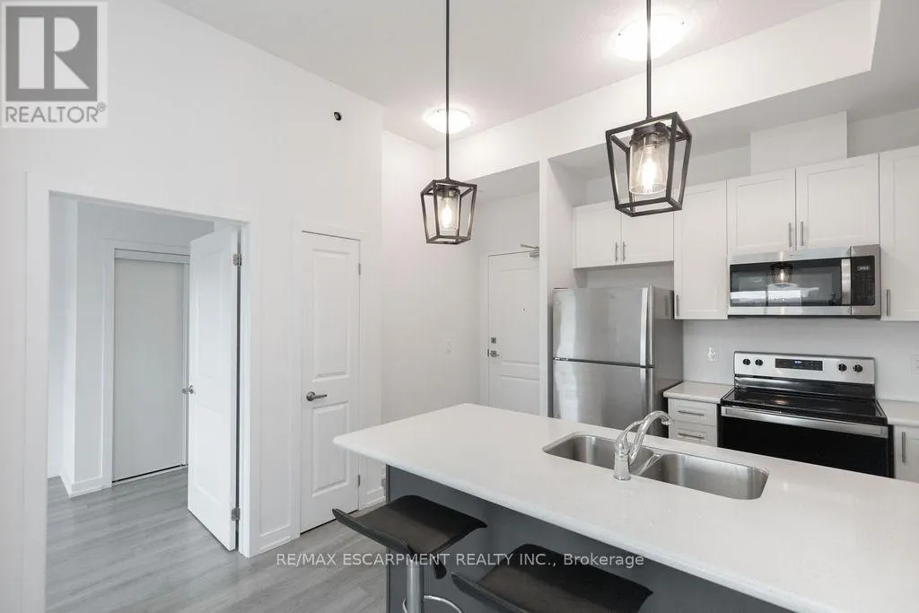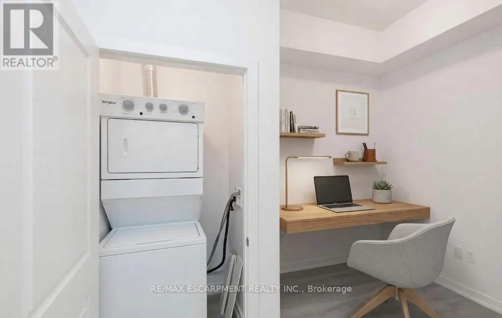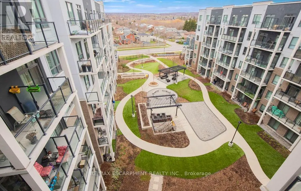 Cross Streets: Ontario Street. ** Directions: QEW Ontario St. Gleenlane Rd. Welcome to comfortable condo living in the sought-after Utopia condominium in Beamsville. This rare 1-bedroom plus large den layout features two full bathrooms, offering added convenience for residents and guests. With 9-foot ceilings and an open-concept design, the unit provides a bright and functional living space. The spacious den is well-suited for a home office or additional living area, while the private south-facing balcony overlooks the courtyard. The unit includes stainless steel appliances, pendant lighting over the island, and in-suite laundry. A storage locker is conveniently located on the same floor as the unit. Building features include parcel delivery to the unit, garbage chutes on each level, and one underground parking space. Residents have access to amenities such as a party room with terrace and a fitness centre. Geothermal heating and cooling are included in the monthly rent. (id:27476)