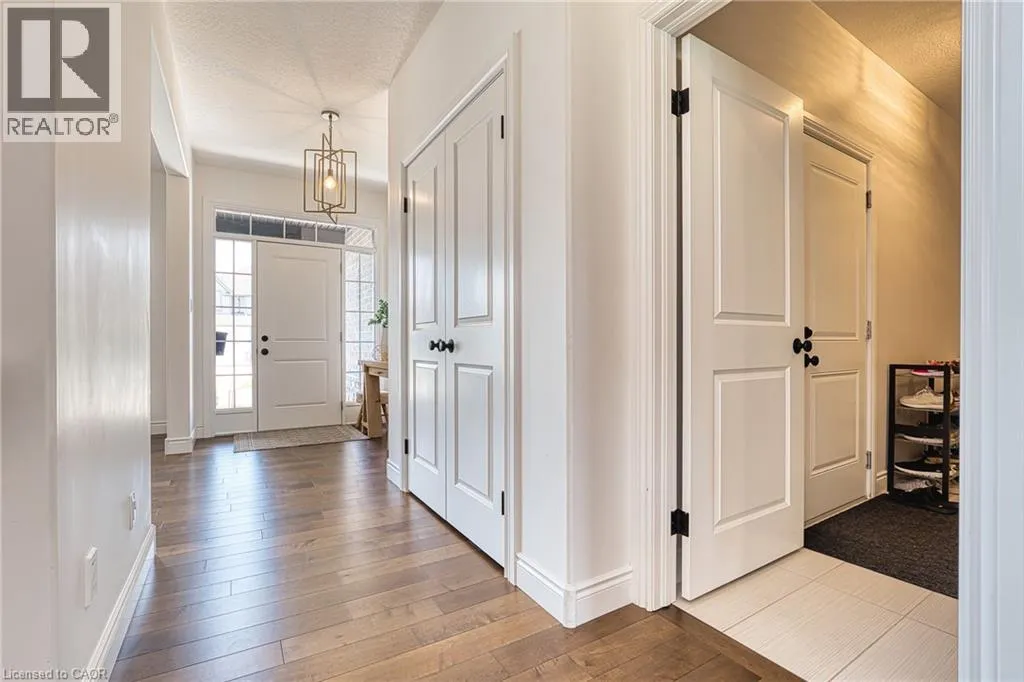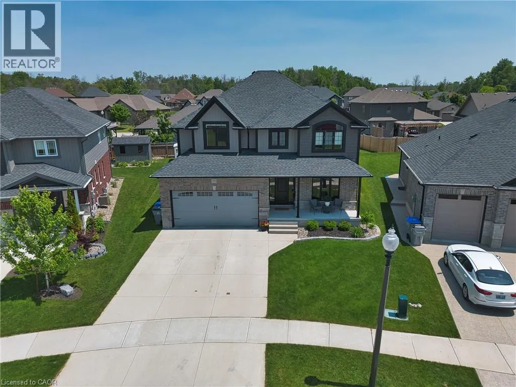 Wallace Ave S, left on Forbes, sign on left The upgrades are endless in this beautifully finished 2-storey home, set on a premium pie-shaped lot in one of Listowelâs most desirable crescents. Hardwood flooring throughout the main floor and upper hallway, a hardwood staircase, custom lighting, extended kitchen cabinetry to the ceiling, under-cabinet lighting, granite countertops in the kitchen, and quartz in all bathrooms are just a few of the thoughtful features that set this home apart. With over 2,500 sq ft, the home offers a bright, functional layout featuring KitchenAid appliances, a walk-in pantry, formal dining room, and main floor laundry. The spacious great room with a gas fireplace opens onto a 25â x 16â deck, ideal for entertaining or relaxing outdoors. Upstairs, the primary suite features his-and-hers walk-in closets and a 5-piece ensuite with a fully enclosed glass shower, while the main bathroom offers a double vanityâperfect for busy mornings. Three additional bedrooms provide flexible space for family, guests, or a home office. Finished with an oversized two-car garage, a stamped concrete front porch, and countless upgrades throughout, this home offers move-in-ready comfort with the opportunity to make it your own. Book your private showing today! (id:27476)