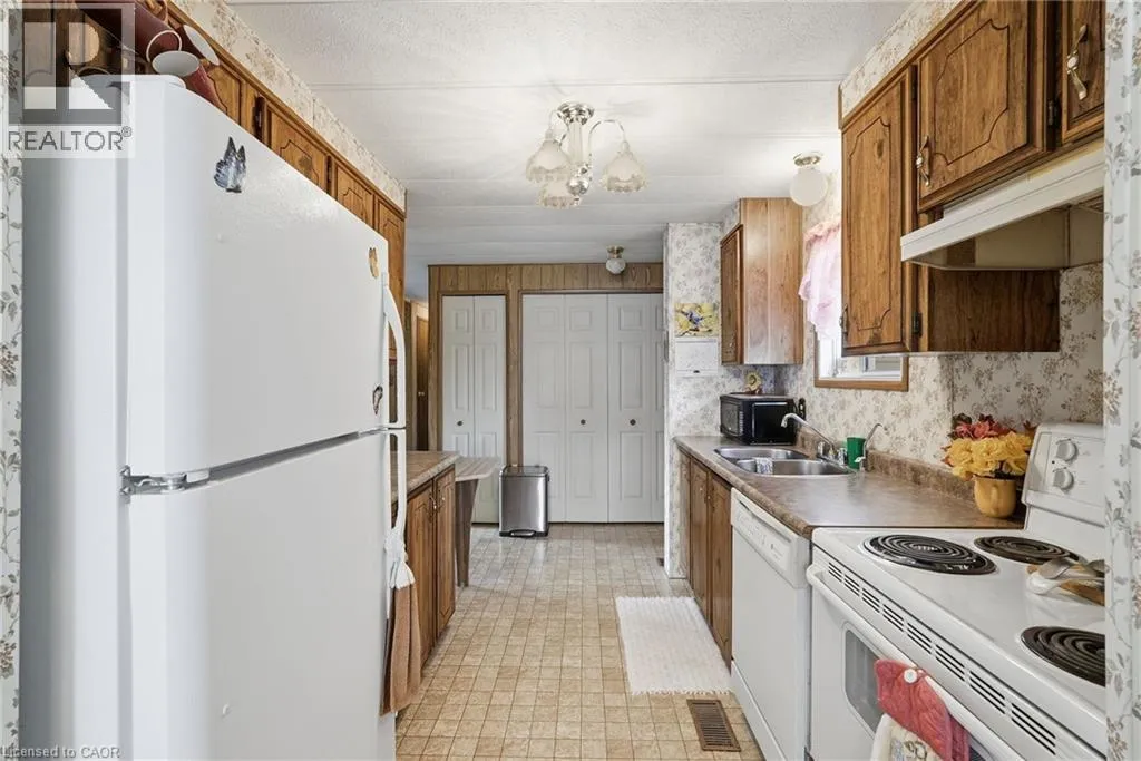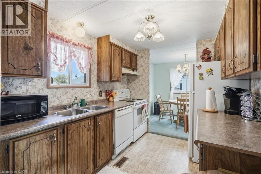 Located just off of Highway 86 east of Listowel Welcome to your charming two bedroom modular home located in The Village just on the edge of Listowel. This inviting residence is designed with comfort and convenience in mind, offering all the essentials you need on one level. Step inside to discover a spacious layout that maximizes every square foot. The home features ample storage throughout, ensuring that you have plenty of room for your belongings without sacrificing living space. One of the standout features of this property is the picturesque view as it backs onto a tranquil pond, providing peaceful backdrop to your daily life. Move in ready this home has been wall maintained with a new roof installed in 2020 and new furnace added in 2022. Embrace the relaxing lifestyle in this home where every detail has been considered for your ease and enjoyment. (id:27476)