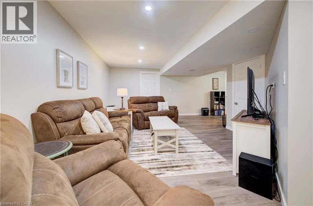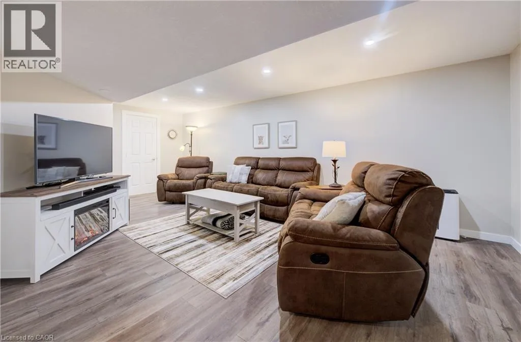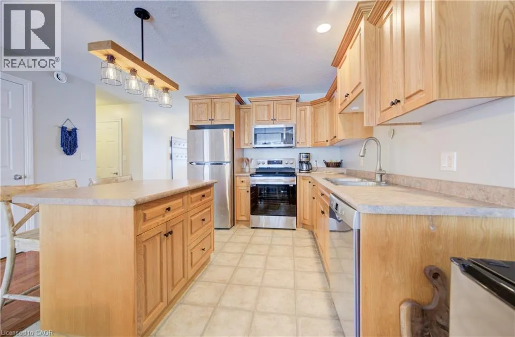 From Main St. E, turn south on Nichols Ave. S., and then west on Mowat. Welcome to this beautifully-maintained freehold bungalow townhouse, which boasts over 2000 sq. ft. of finished living space, and is ideally situated in a quiet neighbourhood in picturesque Listowel. The open-concept main floor is designed for both everyday living and entertaining, featuring a bright kitchen that flows seamlessly into the dining and living areas. Large windows fill the space with natural light, creating a warm and inviting atmosphere throughout. Also on the main level is a spacious primary bedroom and full bathroom, along with a versatile front room (currently used as a bedroom) and equally suited as a home office, den, or guest space. Main-floor laundry and direct access to the garage complete this level, and add everyday convenience and ease. One of the standout features of this home is the fully finished basement, featuring a third bedroom, a beautiful 3-piece bathroom, a generous recreation room, utility room, a bonus room ideal for an office or hobby space, and exceptional storageâperfect for downsizers who donât want to compromise on space. Step outside to a lovely back deck overlooking shared green space surrounded by mature pine trees, offering a peaceful outdoor setting with minimal upkeep. Parking is abundant with three total spaces, including one garage and two driveway spots. Upgrades include lighting, bathroom sink, some plumbing, ceiling fan and kitchen hardware (2025), all new appliances except washer (2024), furnace and A/C (2023). An excellent option for downsizers, retirees, or anyone seeking the ease of bungalow living with room to entertain, work from home, and store with confidenceâthis home truly offers the best of both worlds. (id:27476)