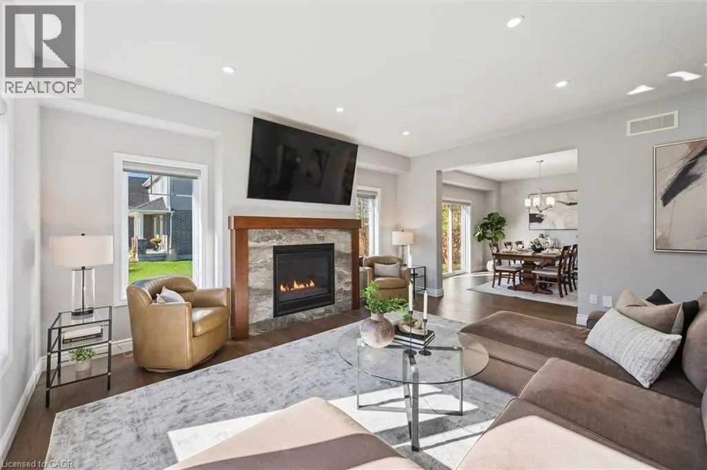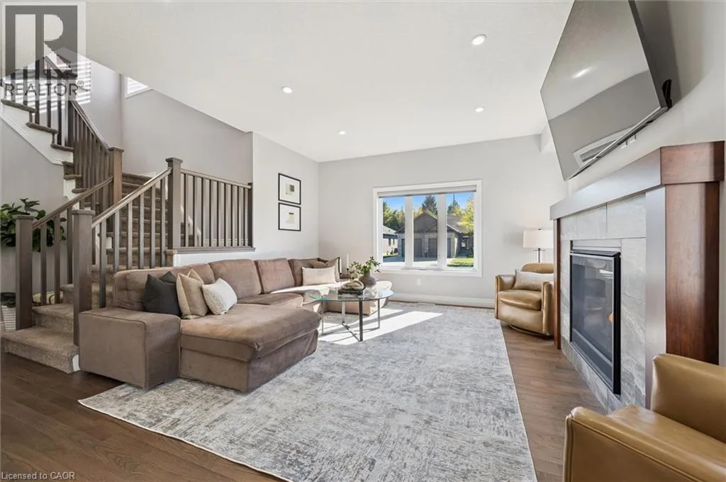 Corner of Rogers Road & Griffith Court Welcome to 8 Griffith Court, a beautiful Home where timeless elegance and everyday comfort come together in the coveted Emerald Greens neighbourhood of Listowel. Expertly crafted by OâMalley Homes, this exceptional 4 Bedroom, 3 Bathroom Home offers nearly 2,300 sq. ft. of beautifully curated living space â perfectly suited for modern family life. The Main Level impresses with 9' ceilings, rich hardwood flooring, and an expansive Living Room anchored by a warm gas fireplace and sun-filled windows that enhance the Homeâs airy, inviting atmosphere. At the heart of the Home, the beautiful Kitchen showcases quality cabinetry, gleaming granite countertops, stainless steel appliances, and a generous island ideal for both casual mornings and effortless entertaining. The Dining area comfortably hosts family gatherings and opens through sliding glass doors to a thoughtfully designed outdoor retreat, complete with a concrete patio, outdoor fireplace, gas BBQ hookup, and ample backyard space for children or pets to enjoy. Completing the Main Level is a Home Office space, a convenient 2-pce Bathroom, and direct access to the double-car Garage. Ascend the open staircase to a well-planned Second Level featuring a large Primary Bedroom Suite with his-and-her closets and a beautifully appointed Ensuite Bathroom. Three additional spacious Bedrooms, an additional full Bathroom, and a dedicated Laundry area provide both comfort and functionality. The Lower Level is already framed and offers impressive approximately 9' ceilings, a rough-in for a Bathroom, and endless potential â whether envisioned as a Home Theatre, Gym, or Playroom. Ideally located just steps from golf, schools, recreation facilities, and scenic parks and trails, this is a Home that truly elevates everyday living. Discover the lifestyle that awaits in the Emerald Greens neighbourhood of Listowel â where families thrive and every day feels a little more special. Book your private showing today! (id:27476)