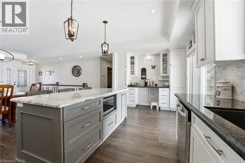 Krotz St W/Wallace Ave S WALK-UP, FIREPLACE, & MAIN FLOOR LAUNDRY. This custom-built bungalow offers exceptional curb appeal and an impressive 6-car driveway, along with a double car garage and convenient walk-up access from the basement to the garage. Step inside to the open-concept main floor designed for both everyday living and entertaining. The inviting living room features a cozy fireplace and flows seamlessly into the dining area and stunning custom kitchen. Youâll love the thoughtful details, including granite countertops, a quartz-topped island with built-in microwave shelf, and an elegant tray ceiling that adds a touch of sophistication. The main level offers two spacious bedrooms and two full bathrooms, including a beautiful primary retreat complete with a walk-in closet and a luxurious 4-piece ensuite showcasing a double vanity and glass shower. A convenient laundry/mud room with folding counter adds everyday practicality and direct functionality to the space. Downstairs, the fully finished basement expands your living area with a generous rec room featuring an electric fireplace, two additional bedrooms, and a full bathroom. Enjoy outdoor living in the fully usable backyard featuring a covered concrete deck plus a handy storage shed for all your tools and toys. This thoughtfully designed home blends comfort, style, and functionality in a desirable location. (id:27476)