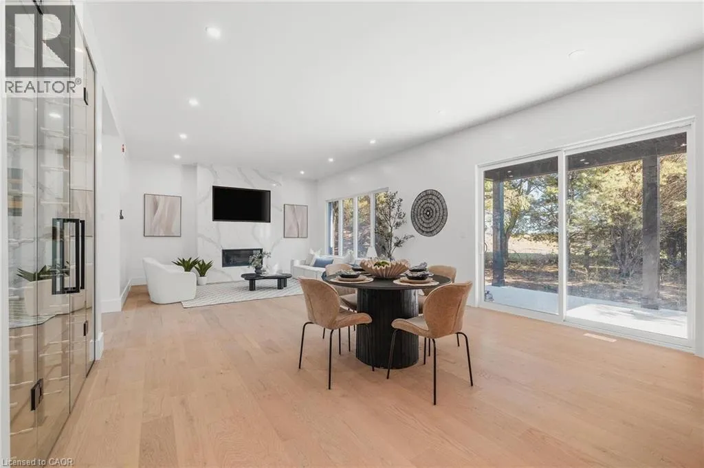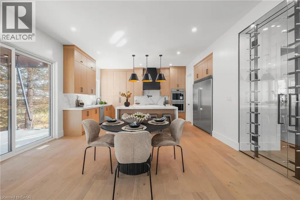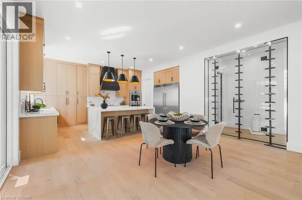 Rhine St E/Walton Ave Welcome to an extraordinary expression of modern luxury, where architectural elegance & functional design merge seamlessly. This bespoke Cailor Homes creation has been crafted w/ impeccable detail & high-end finishes throughout, Situated on a one of a kind secluded tree lined lot. Step into the grand foyer, where soaring ceilings & expansive windows bathe the space in natural light. A breathtaking floating staircase w/ sleek glass railings serves as a striking architectural centerpiece. Designed for both productivity & style, the home office is enclosed w/ frameless glass doors, creating a bright, sophisticated workspace. The open-concept kitchen & dining area is an entertainers dream. Wrapped in custom white oak cabinetry & quartz countertops, the chefs kitchen features a hidden butlers pantry for seamless storage & prep. Adjacent, the mudroom/laundry room offers convenient garage access. While dining, admire the frameless glass wine display, a showstopping focal point. Pour a glass & unwind in the living area, where a quartz fireplace & media wall set the tone for cozy, refined evenings. Ascending the sculptural floating staircase, the upper level unveils four spacious bedrooms, each a private retreat w/ a spa-inspired ensuite, & walk-in closets. The primary suite is a true sanctuary, featuring a private balcony, and serene ensuite w/ a dual-control shower & designer soaker tub. The fully finished lower level extends the homes luxury, featuring an airy bedroom, full bath & oversized windows flooding the space w/ light. Step outside to your backyard oasis, complete w/ a sleek covered patio. (id:27476)