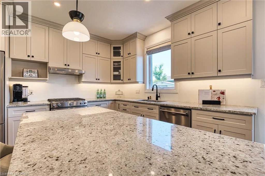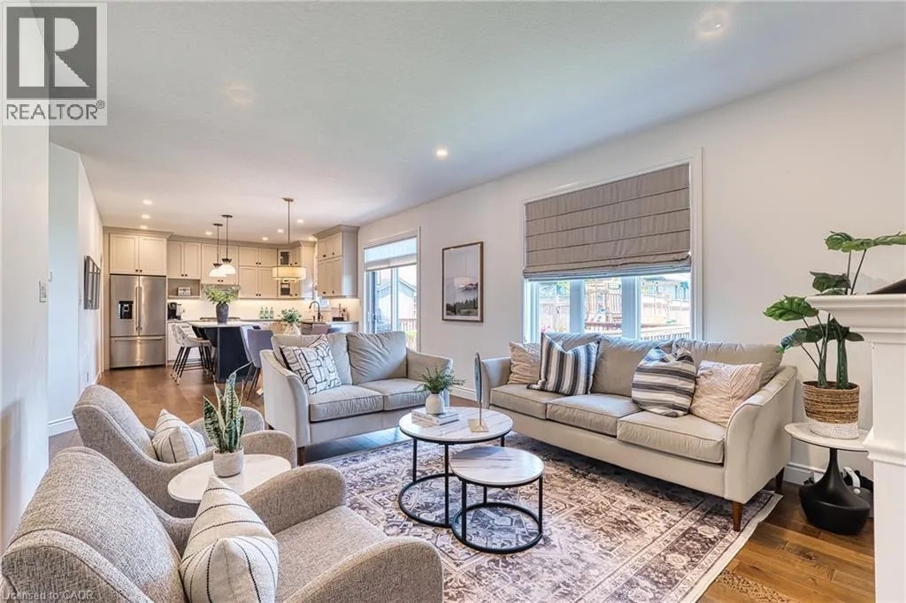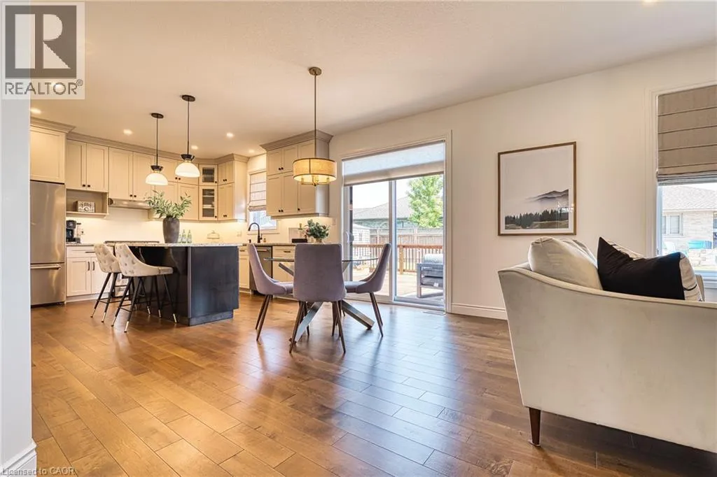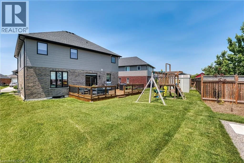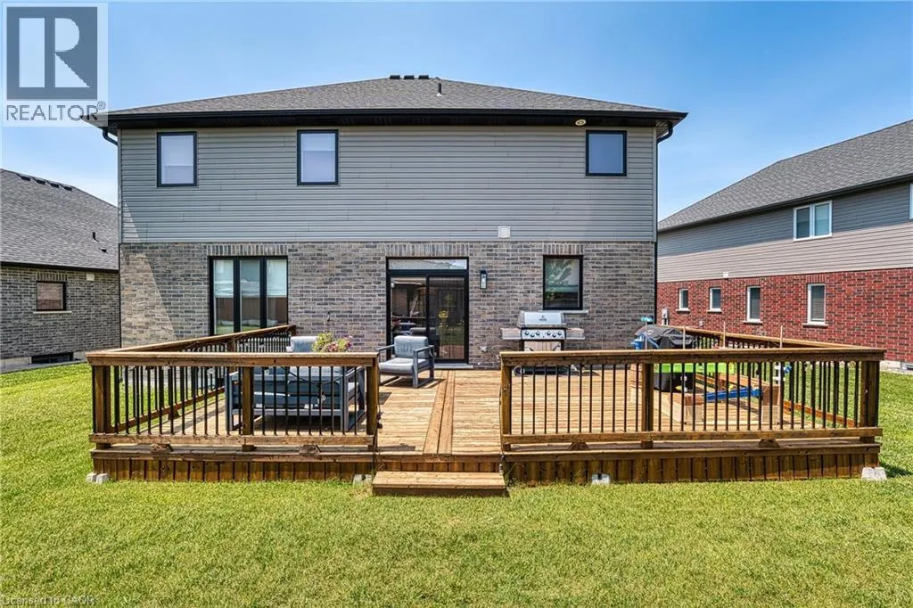 Wallace Ave S, left on Forbes, sign on left The upgrades are endless in this beautifully finished 2-storey home, set on a premium pie-shaped lot in one of Listowelâs most desirable crescents. Hardwood flooring throughout the main floor and upper hallway, a hardwood staircase, custom lighting, extended kitchen cabinetry to the ceiling, under-cabinet lighting, granite countertops in the kitchen, and quartz in all bathrooms are just a few of the thoughtful features that set this home apart. With over 2,500 sq ft, the home offers a bright, functional layout featuring KitchenAid appliances, a walk-in pantry, formal dining room, and main floor laundry. The spacious great room with a gas fireplace opens onto a 25â x 16â deck, ideal for entertaining or relaxing outdoors. Upstairs, the primary suite features his-and-hers walk-in closets and a 5-piece ensuite with a fully enclosed glass shower, while the main bathroom offers a double vanityâperfect for busy mornings. Three additional bedrooms provide flexible space for family, guests, or a home office. Finished with an oversized two-car garage, a stamped concrete front porch, and countless upgrades throughout, this home offers move-in-ready comfort with the opportunity to make it your own. Book your private showing today! (id:27476)