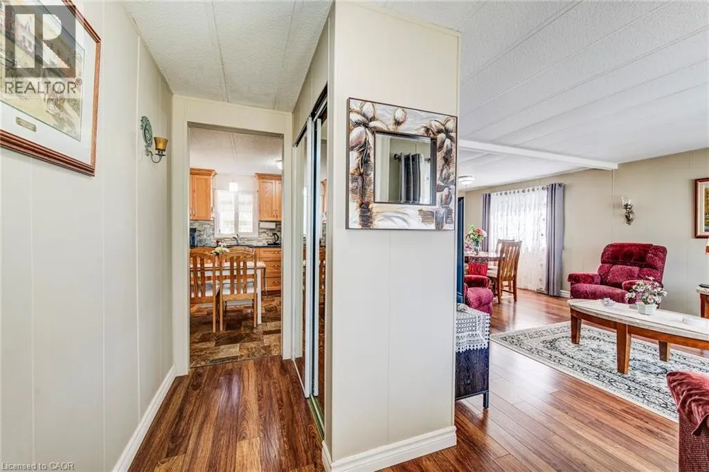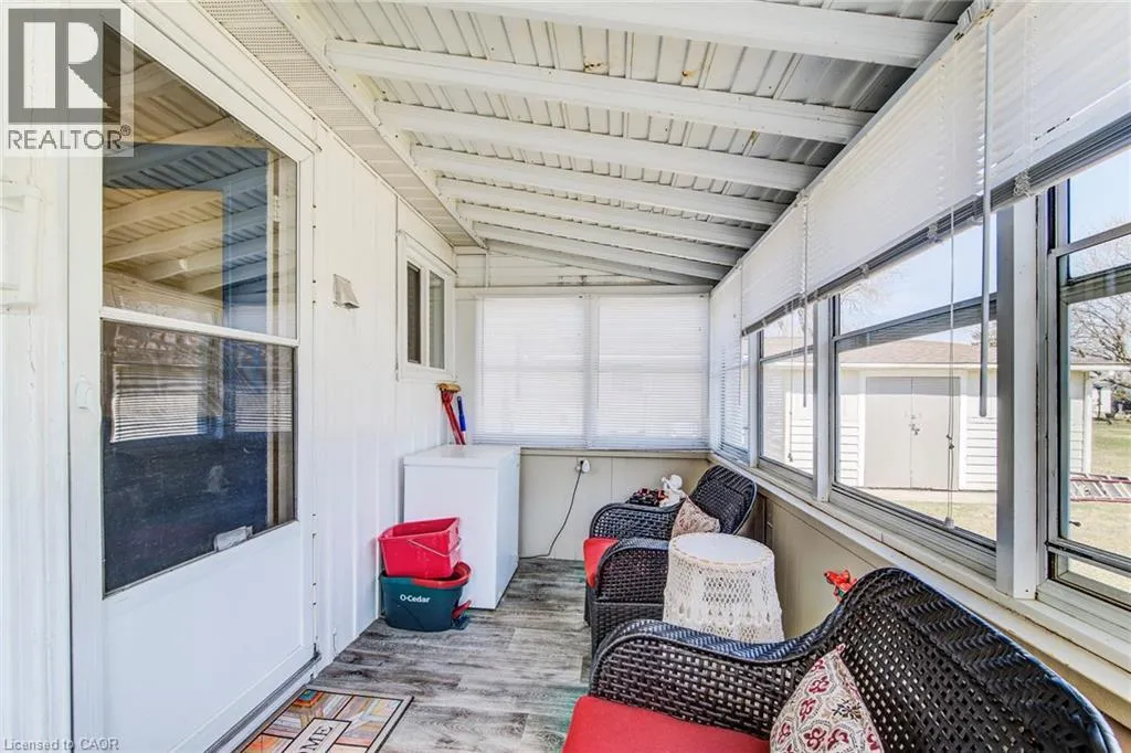 Hwy 86 east just past Conway Furniture turn right. Welcome to affordable, low-maintenance living in the heart of The Villageâa warm and welcoming leased land community perfect for retirees or anyone looking to downsize without compromise. This spacious 3-bedroom, 1-bathroom home offers comfortable living with a functional layout and plenty of natural light throughout. Almost everything updated since 2015. Enjoy your morning coffee or unwind in the bright sunroom overlooking a peaceful pond, providing beautiful views and a true sense of privacy with no rear neighbours. The home also features a charming front porch, ideal for relaxing and connecting with the friendly community. Additional highlights include a storage shed for added convenience and access to the communityâs private clubhouse, enhancing your lifestyle with social and recreational opportunities year-round. If youâre seeking an affordable home in a quiet, well-kept setting with scenic surroundings, this is an opportunity you wonât want to miss. (id:27476)