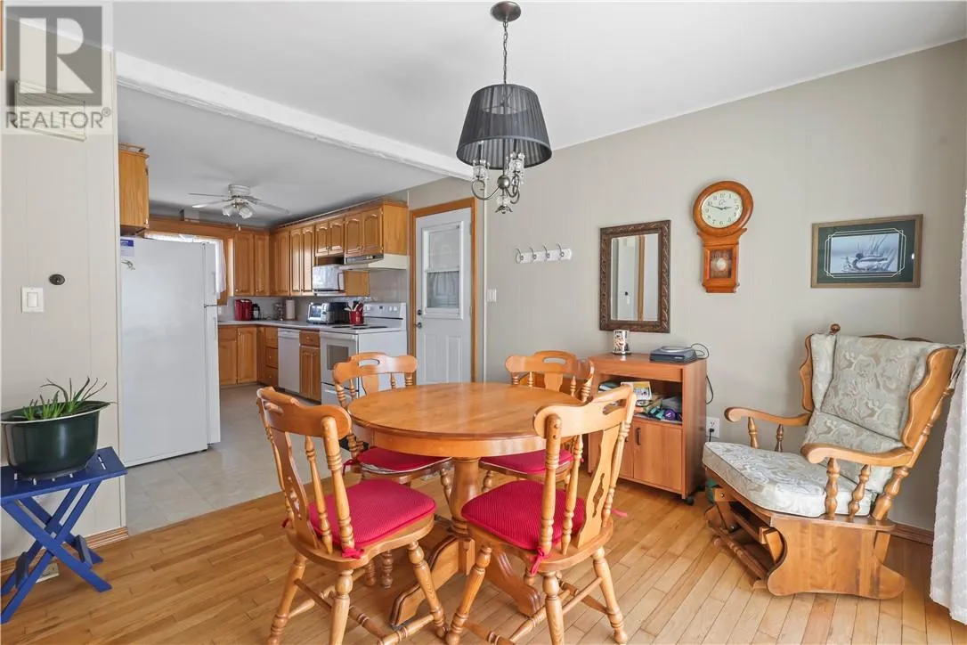 Located in a central Little Current neighbourhood, this well-maintained bungalow offers a practical layout with flexible living space. The home features all new exterior siding and includes both an attached garage and a large detached garage at the rear of the property, making it ideal for a workshop, hobby space, or extra storage. The yard is nicely landscaped with established perennials, a paved driveway, and a private back deck for enjoying warmer months. Inside, the main level offers a functional galley kitchen, a generous dining area, and a bright living room. Three comfortable bedrooms and a full bathroom complete the main floor. The partially finished lower level provides additional living space with a rec room, second bathroom, laundry area, and a wood-burning stove that adds warmth and character. (id:27476)