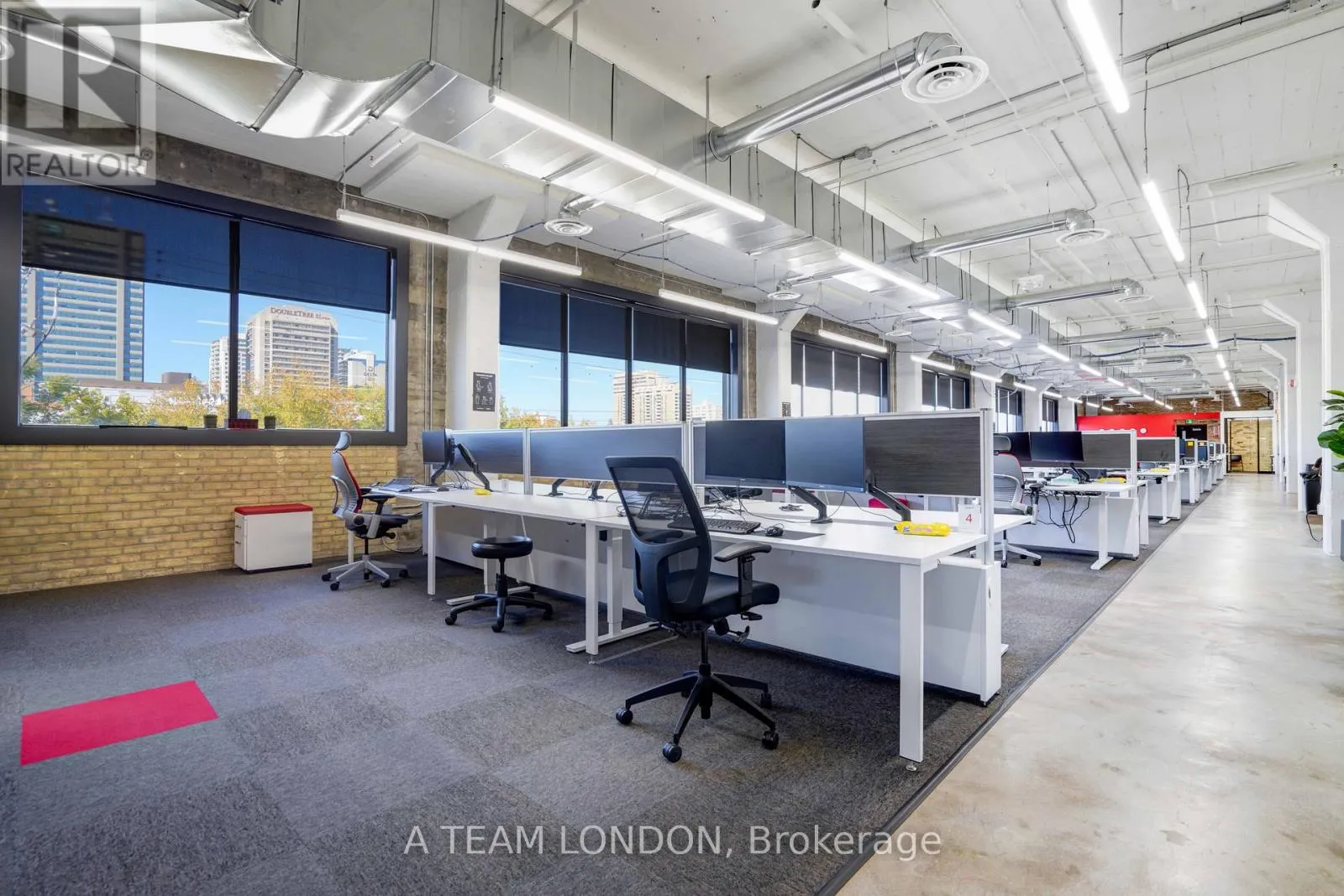 Horton Streeet Bright, modern office building at the entrance to downtown London. Ideal owner/user or investor opportunity. Located on 2.4 acres at the corner of Wellington Street and Horton Street. Total building size 87,566 SF consisting of 3 full floors of 25,000 SF (+/-) each. 55,000 SF leased, 32,000 SF available which includes one full floor. Great upside. This well-known building features beautiful, exposed brick accents, secure reception area, fully finished turn key office suites in many sizes and configurations. High profile signage positioning available. The property also features a common area outdoor patio with booths, tables, outdoor kitchen, fire pit with muskoka chairs, putting green, etc. Ideally suited for Tech, Call Centres, Non-Profit Organizations, Public Services or a variety of professional/office uses. Excellent surface parking available - 314 spots which equates to a parking ratio of 4 per 1000 SF rentable. Many recent upgrades. 2 passenger elevators and 1 freight elevator. (id:27476)