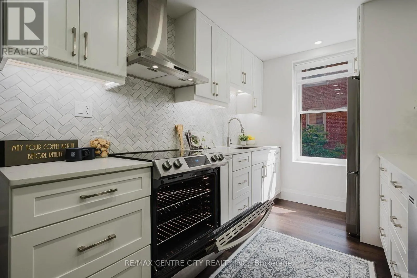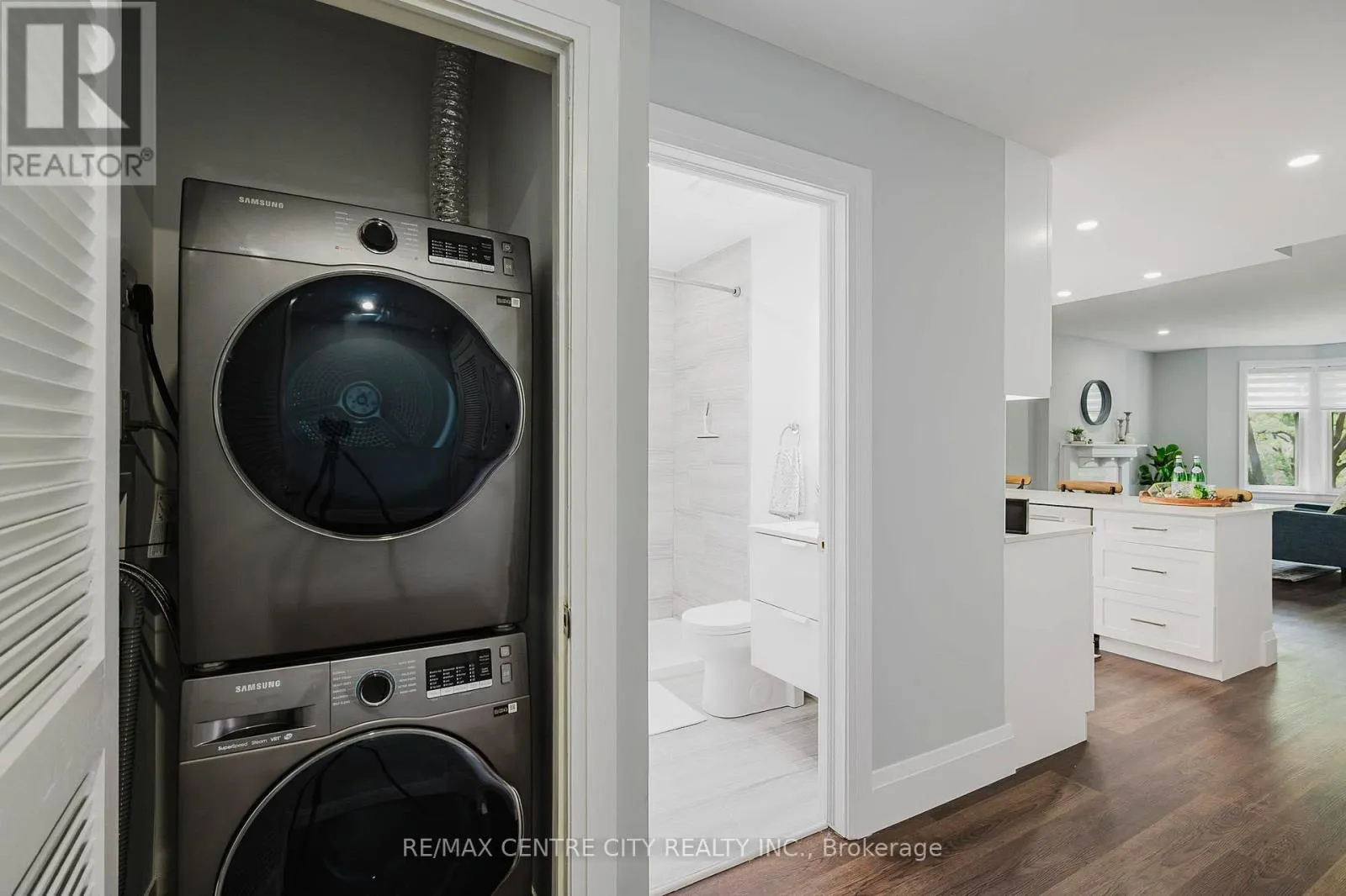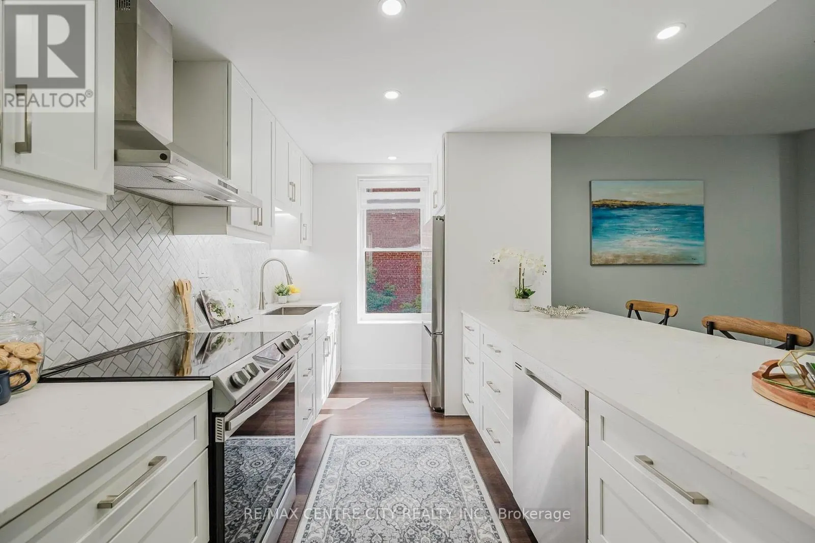 Cross Streets: Wellington & Queen. ** Directions: Go East on Dufferin, (Queens is one way, please don't go the wrong way) Take Picton South, turn in the first entrance, you are now in the Queens Court Visitor Parking. Downtown convenience, turnkey finish. This 2-bed/2-bath at Queen's Court was professionally renovated in 2023 and very lightly lived in (the stove's reportedly never been used). Enjoy owned heated underground parking, exclusive use locker, and resort-style amenities: heated pool, fitness centre, and social fire-pit courtyard. Inside: a fresh, modern palette with updated kitchen and baths, quality flooring/lighting, and a functional split-bedroom layout. Step out to dining, parks, and live shows at Centennial Hall; direct transit to Western (UWO) is moments away. Live like new-without the new-build price tag-at a proven, well-managed address in the heart of London. (id:27476)
