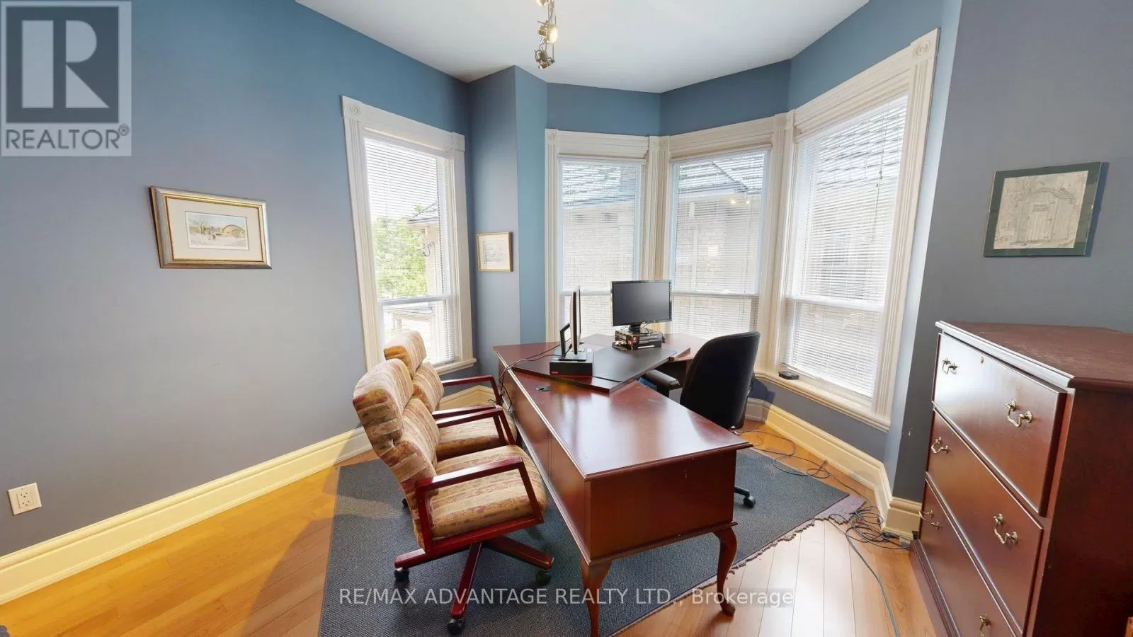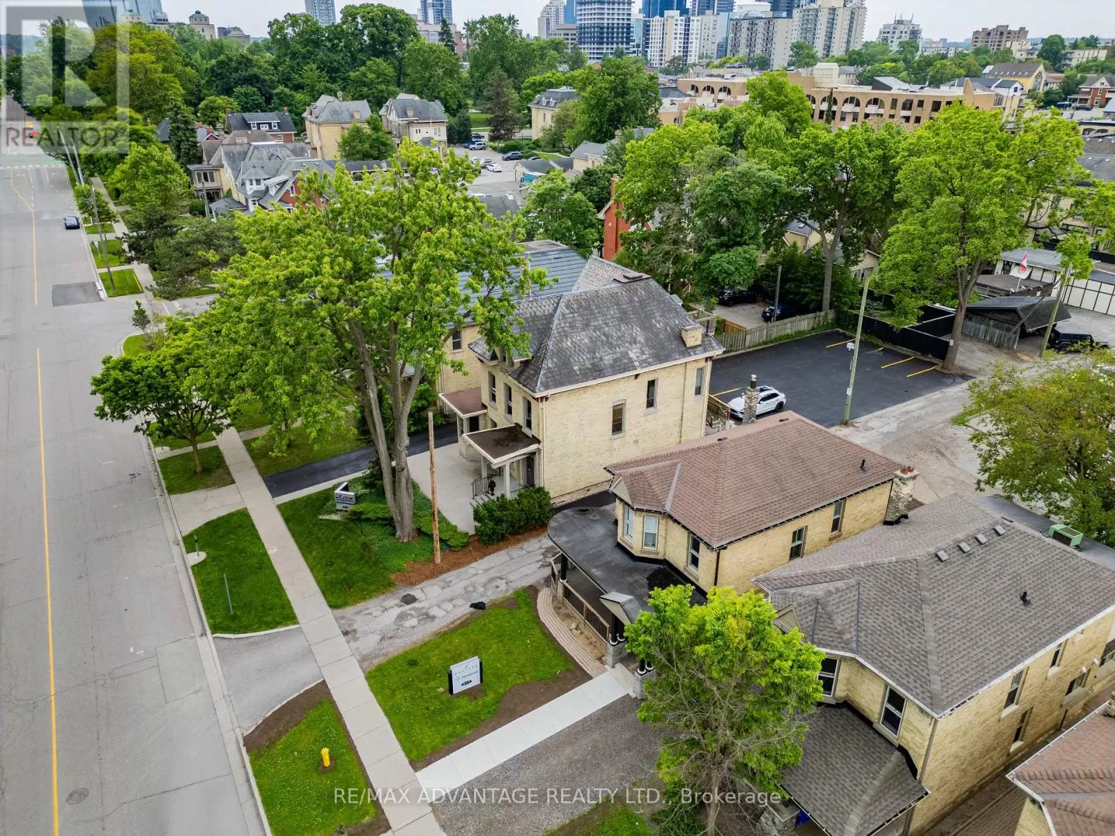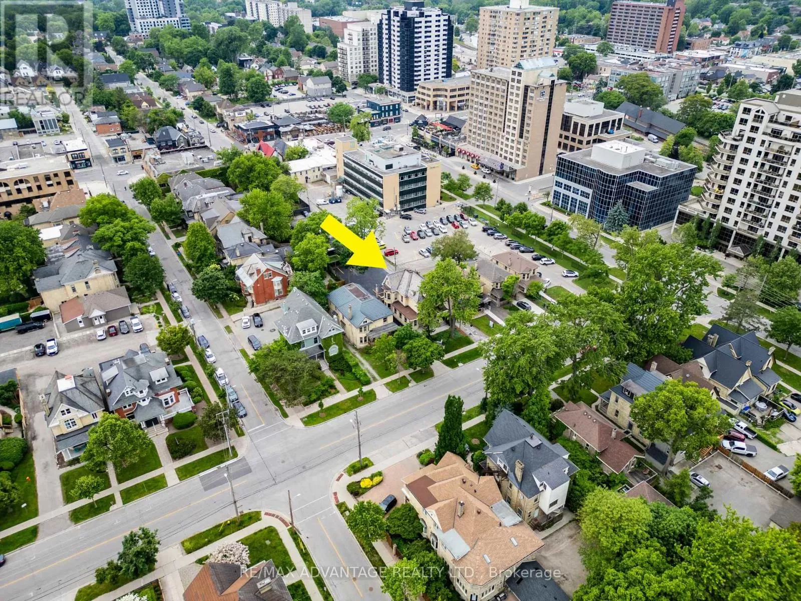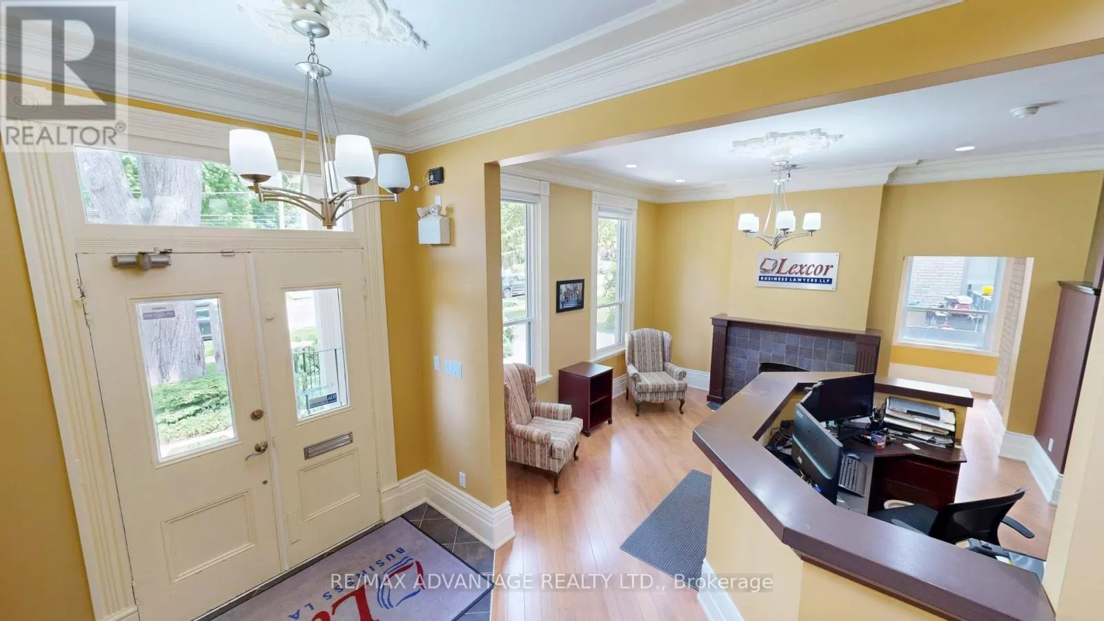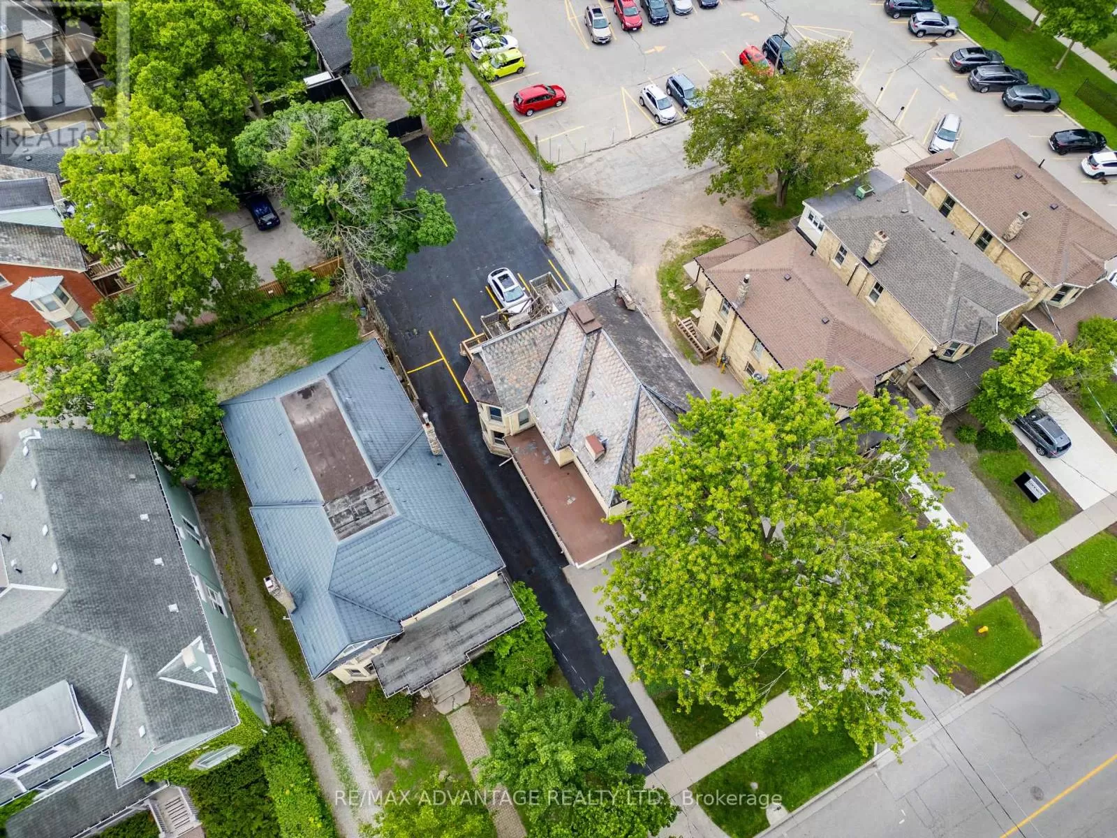 Cross Streets: Pall Mall. ** Directions: South of Pall Mall on the west side of Wellington Street. This elegant 3,116 square foot office conversion is located in the heart of London's Business District, a few steps from Victoria Park and Richmond Row. It features 10+ asphalt-paved parking spaces and includes a well-designed assortment of meeting rooms, work areas and private offices over three stories plus a basement storage area. The property has an optical fibre connection to the Internet, with Cat 5 connections in every room. The property underwent significant renovations in 2005, with structural upgrades to all floors meeting commercial code, new electrical, plumbing, insulation, windows, and high-quality interior finishes. In 2024, a 6-ton HVAC system was installed. The property includes a bathroom on each floor above grade, a main-floor coffee station, a second floor kitchenette, and wheelchair accessibility. It also has an alarm system and an inground sprinkler system. Access to the property is via a private driveway on the south and a City-owned laneway on the north. The property enjoys excellent exposure, a prominent street presence, and pylon signage. (id:27476)