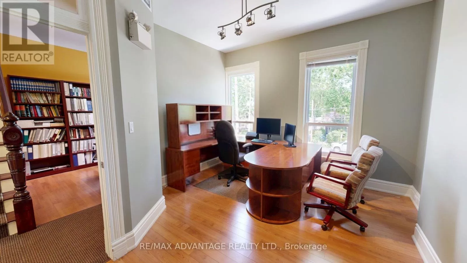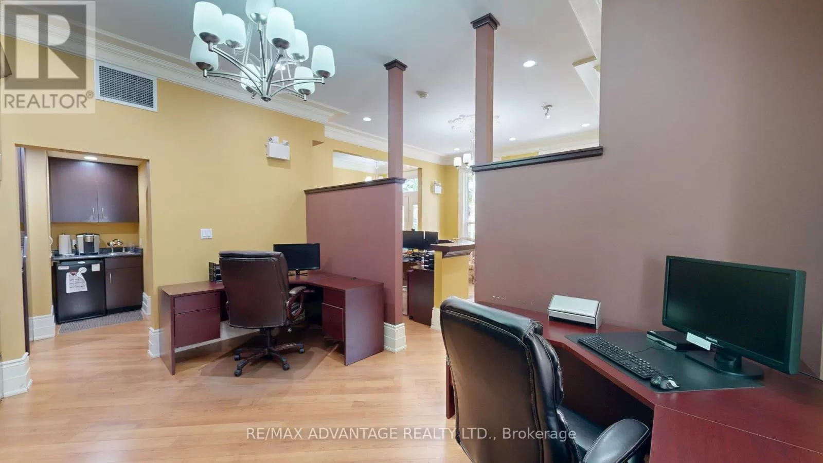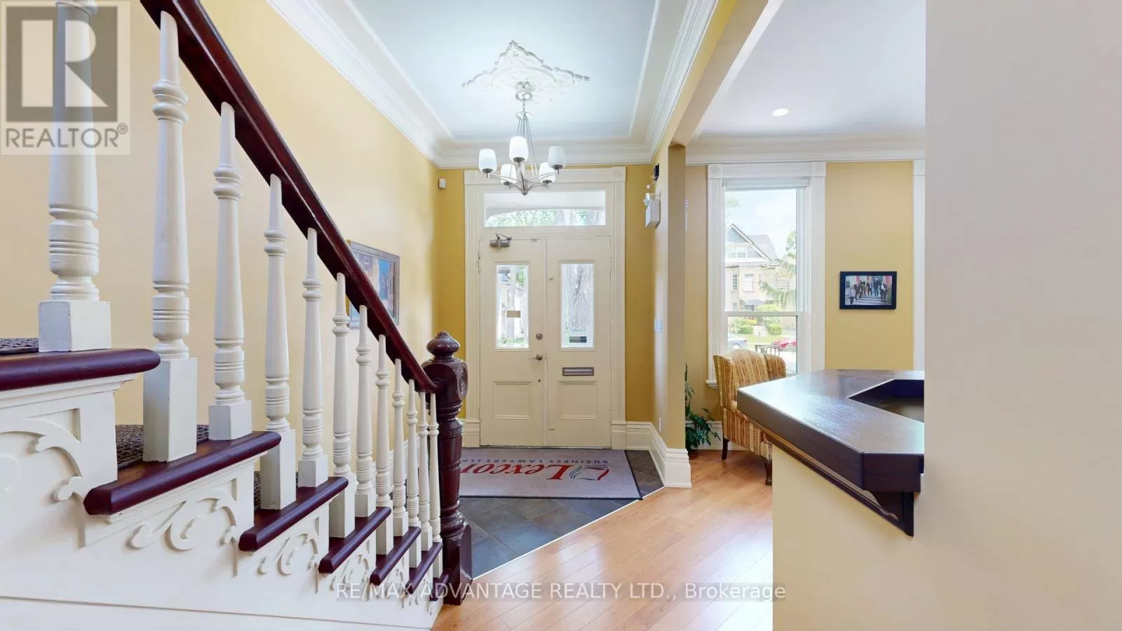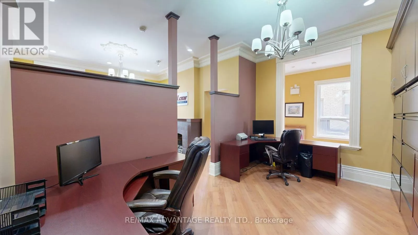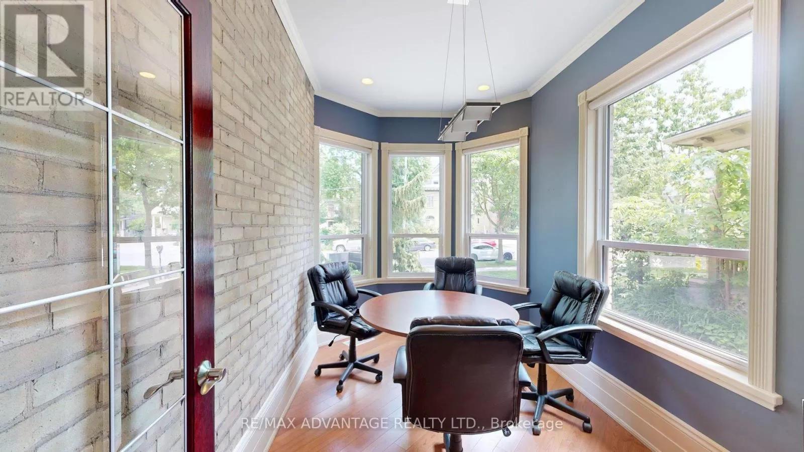 Cross Streets: Pall Mall. ** Directions: South of Pall Mall on the west side of Wellington Street. This elegant 3,116 square foot office conversion is located in the heart of London's Business District, a few steps from Victoria Park and Richmond Row. It features 10+ asphalt-paved parking spaces and includes a well-designed assortment of meeting rooms, work areas and private offices over three stories plus a basement storage area. The property has an optical fibre connection to the Internet, with Cat 5 connections in every room. The property underwent significant renovations in 2005, with structural upgrades to all floors meeting commercial code, new electrical, plumbing, insulation, windows, and high-quality interior finishes. In 2024, a 6-ton HVAC system was installed. The property includes a bathroom on each floor above grade, a main-floor coffee station, a second floor kitchenette, and wheelchair accessibility. It also has an alarm system and an inground sprinkler system. Access to the property is via a private driveway on the south and a City-owned laneway on the north. The property enjoys excellent exposure, a prominent street presence, and pylon signage. (id:27476)