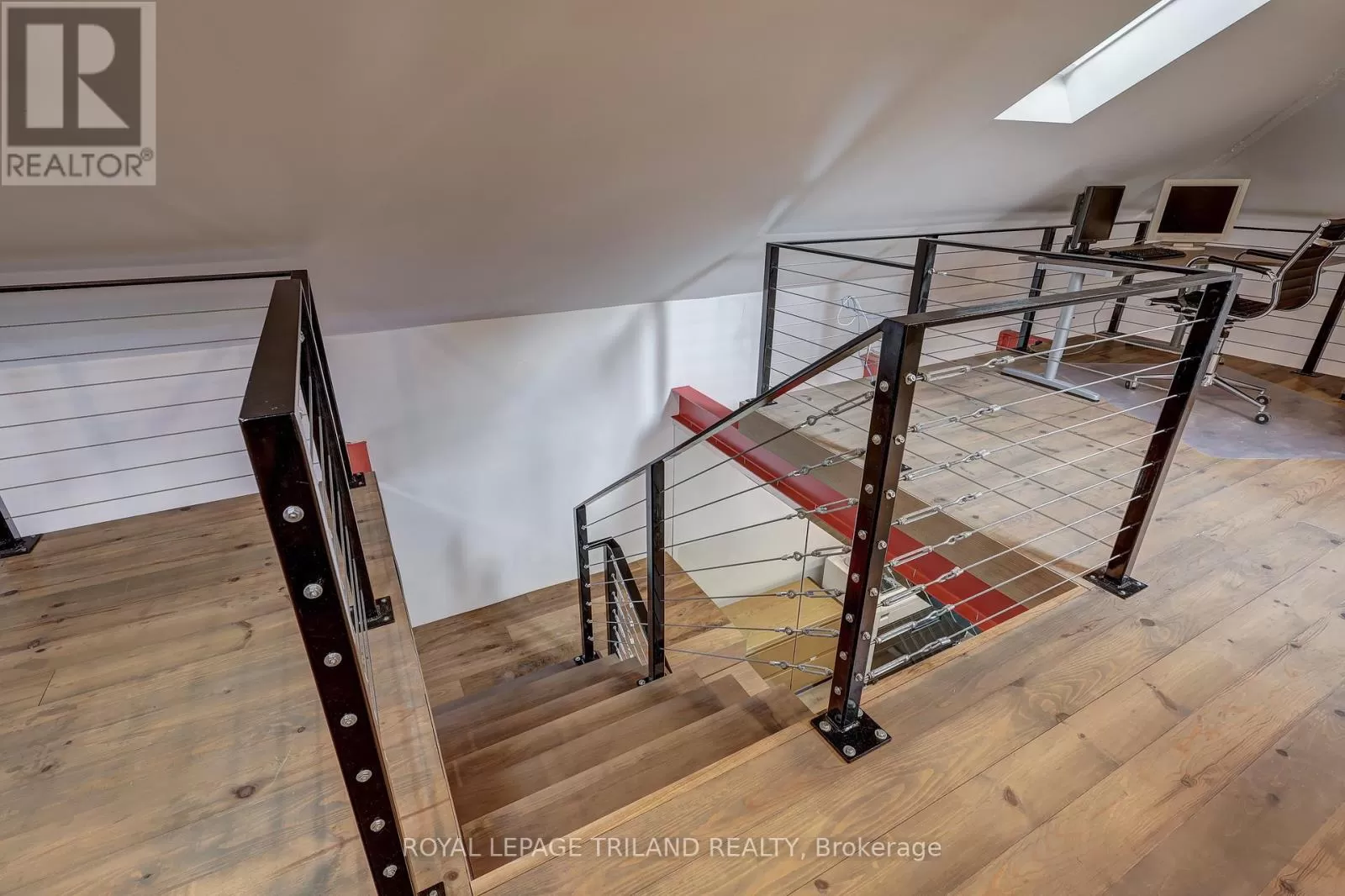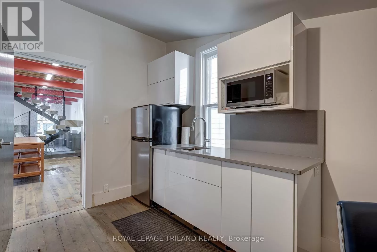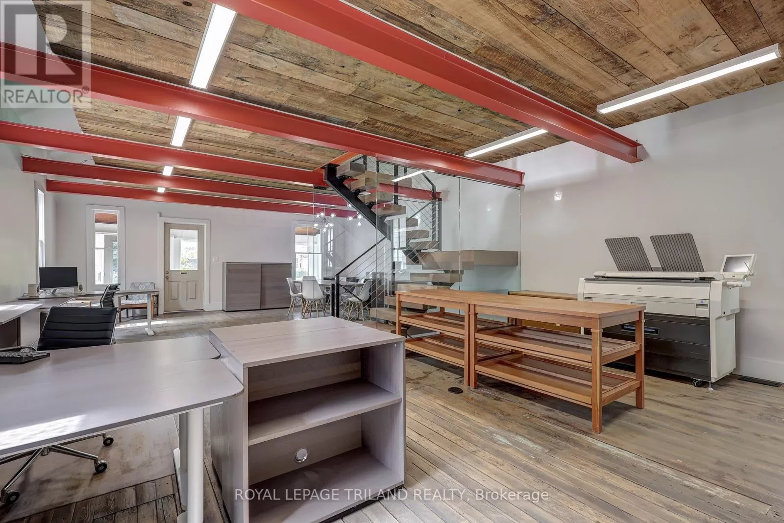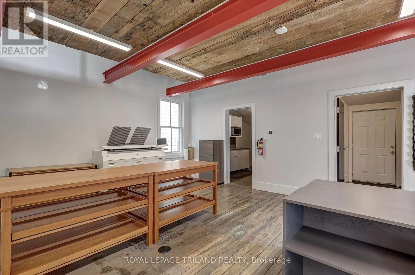 Oxford and Waterloo Seize the opportunity to convert this exceptional office space into a stylish modern loft residence! Ideally situated just two blocks east of Richmond St., this prime location on Oxford St. offers high visibility with over 30,000 cars passing by daily. Zoned OC4 and R3-1, allowing for versatile uses, including a potential work/live space. Fully renovated with an open-concept layout and contemporary finishes. Features include a custom floating staircase with a glass wall, six exposed red steel I-beams, and striking rustic hardwood floors. Main floor has a kitchen and bathroom. Convenient access with private driveway off Oxford St. and additional access via lane off Colborne. Ample parking on site with over 6 spots in rear and more parking in laneway if needed. This unique space is perfect for creating a lasting impression and offers the flexibility to be an excellent residence or a dynamic work/live environment. (id:27476)