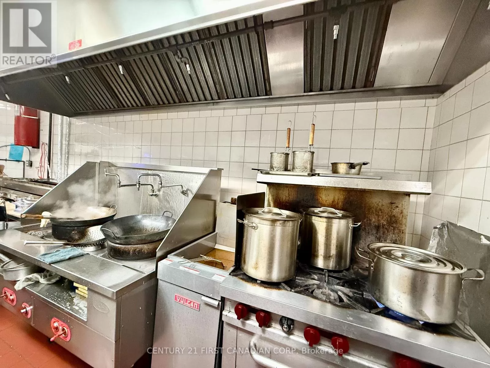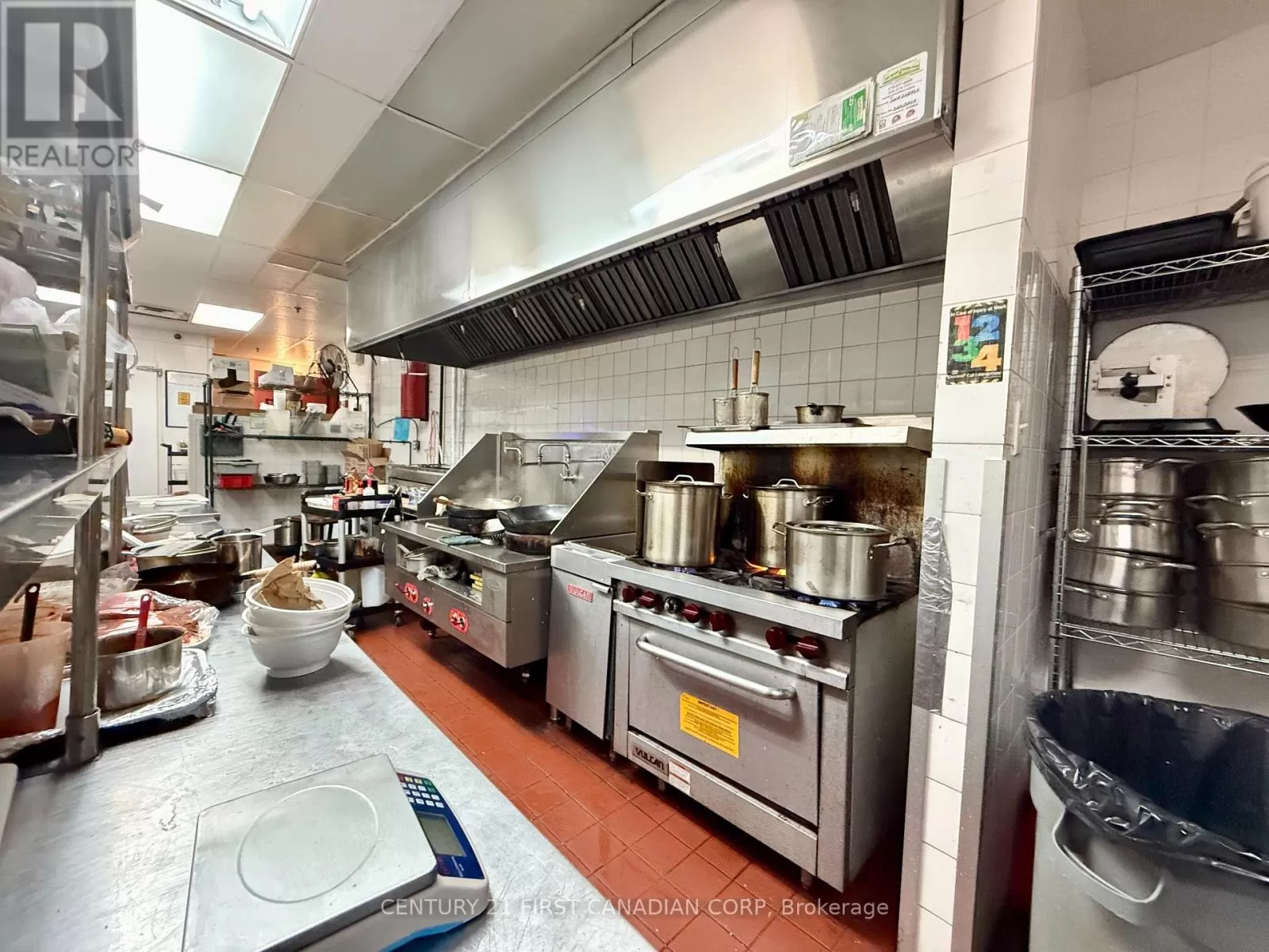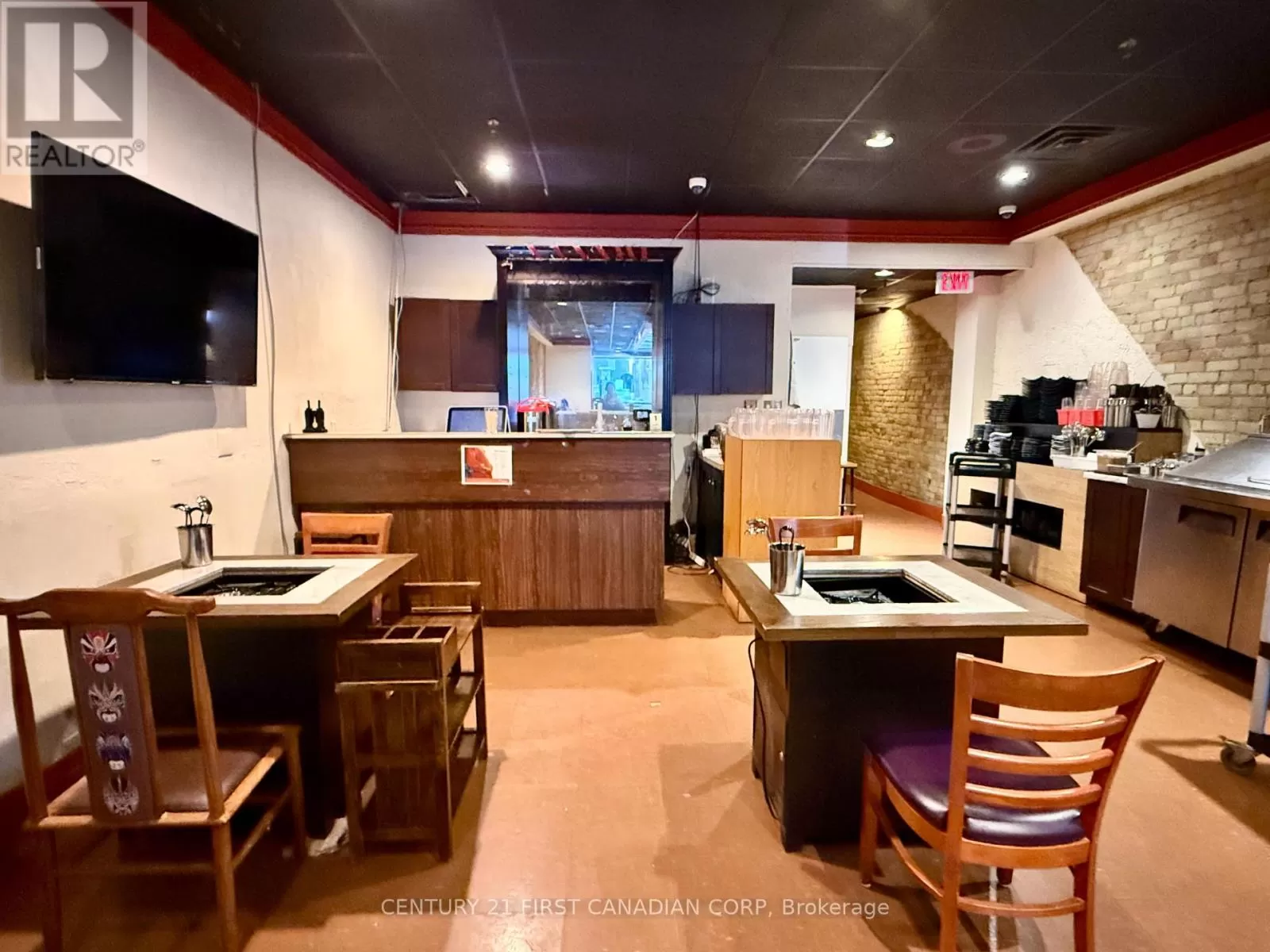Cross Streets: Dundas. ** Directions: North. Prime Central London Location Turnkey Business OpportunityLocated in the very heart of Londons core city centre, just steps from the iconic London Music Hall, this property enjoys exceptional visibility and a steady flow of pedestrian traffic, further boosted by the many events regularly held in the area. With multiple bus stops nearby, it offers outstanding accessibility for both locals and visitors. The premises feature a fully equipped and ready-to-operate kitchen, a hot water system that is fully owned, and a complete range of professional equipment. The spacious interior offers generous seating capacity, making it ideal for accommodating high customer volumes. With affordable rent and a liquor license available, this is a rare opportunity supported by stable and consistent business performance. Perfectly positioned in one of Londons most dynamic and vibrant commercial districts, this is an ideal acquisition for anyone looking to operate a successful hospitality venture in a prime location. Book the showing today. (id:27476)
