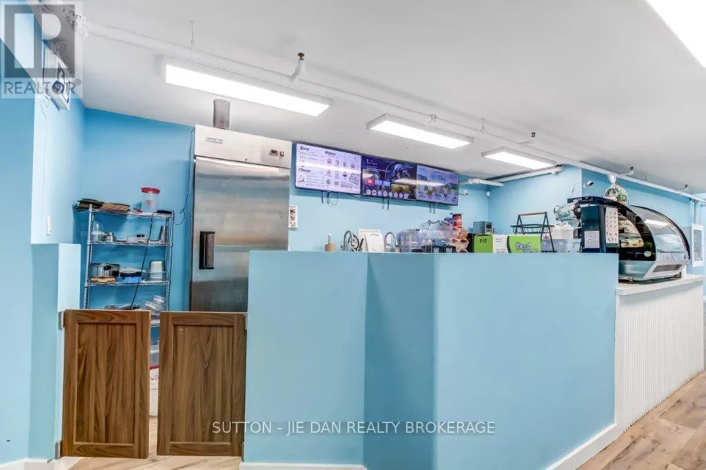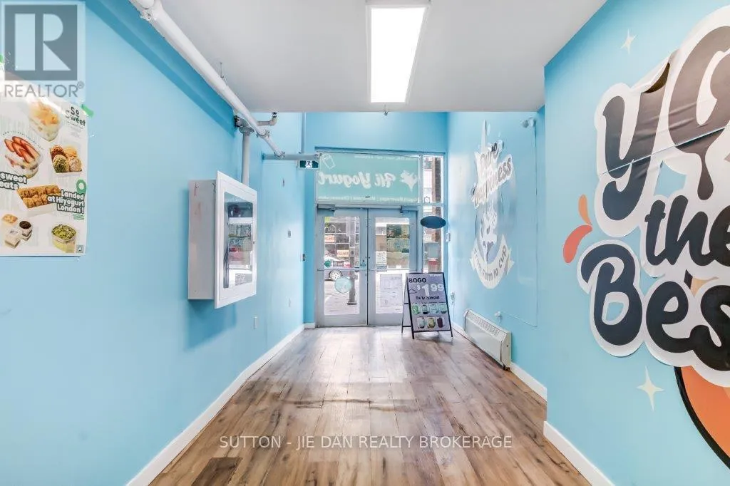 Cross Streets: Richmond Street. ** Directions: Dundas & wellington. Turnkey franchised frozen yogurt shop located in the bustling downtown core on Dundas Street. Spacious 1,000 sq. ft. main floor beside Mr. Sub and Popeyes, with easy parking and surrounded by attractions like London Music Hall and Budweiser Gardens. Strong in-store traffic plus steady delivery orders via Uber Eats, Fantuan, and Hungry Panda. Features good sales volume, low rent, long lease, reliable supplier chain, and a loyal customer base. Easy to operate with excellent profit margins and huge growth potential. Monthly rent only $2000 including base and added rent. Could be running without franchise new brand. A sweet opportunity to own a thriving business in a prime locationdont miss out! (id:27476)
