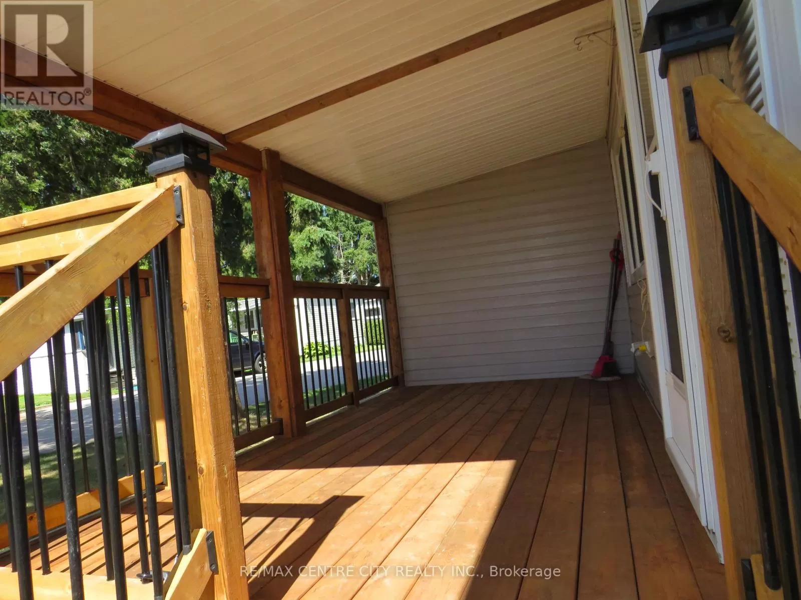 Cross Streets: Bonaventure. ** Directions: Dundas St E to #2189, London Terrace Gardens Mobile Home Park. This two bedroom plus den mobile home features a new furnace and A/C, metal roof, new vinyl plank flooring throughout, new gas stove and refrigerator, combination washer and dryer unit, gas fireplace, and is freshly painted. The large addition is perfect for a third bedroom or a family room, computer room, office or whatever your needs might be. The 15' x 7.8' covered deck is ideal for relaxing evenings or enjoying a peaceful early morning coffee. Situated on a corner lot with shade tree this spacious home features 636 sq ft, backs onto green space and includes a 10' x 9' shed. Monthly fees $800. Includes: Lot fee, property taxes, sewage charges, water, park maintenance, garbage/recycling pick up. Conditional on Land Lease approval. Renting out unit is not allowed. This year round park is close to Argyle Mall for all your shopping needs, CTC, Fanshawe College, Lynn's deli/bakery and bus stop is just a few minutes walk. Quick possession available. A great alternative to condo/apartment living suitable for retirement or down sizing. (id:27476)
