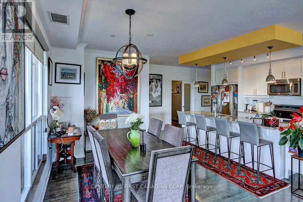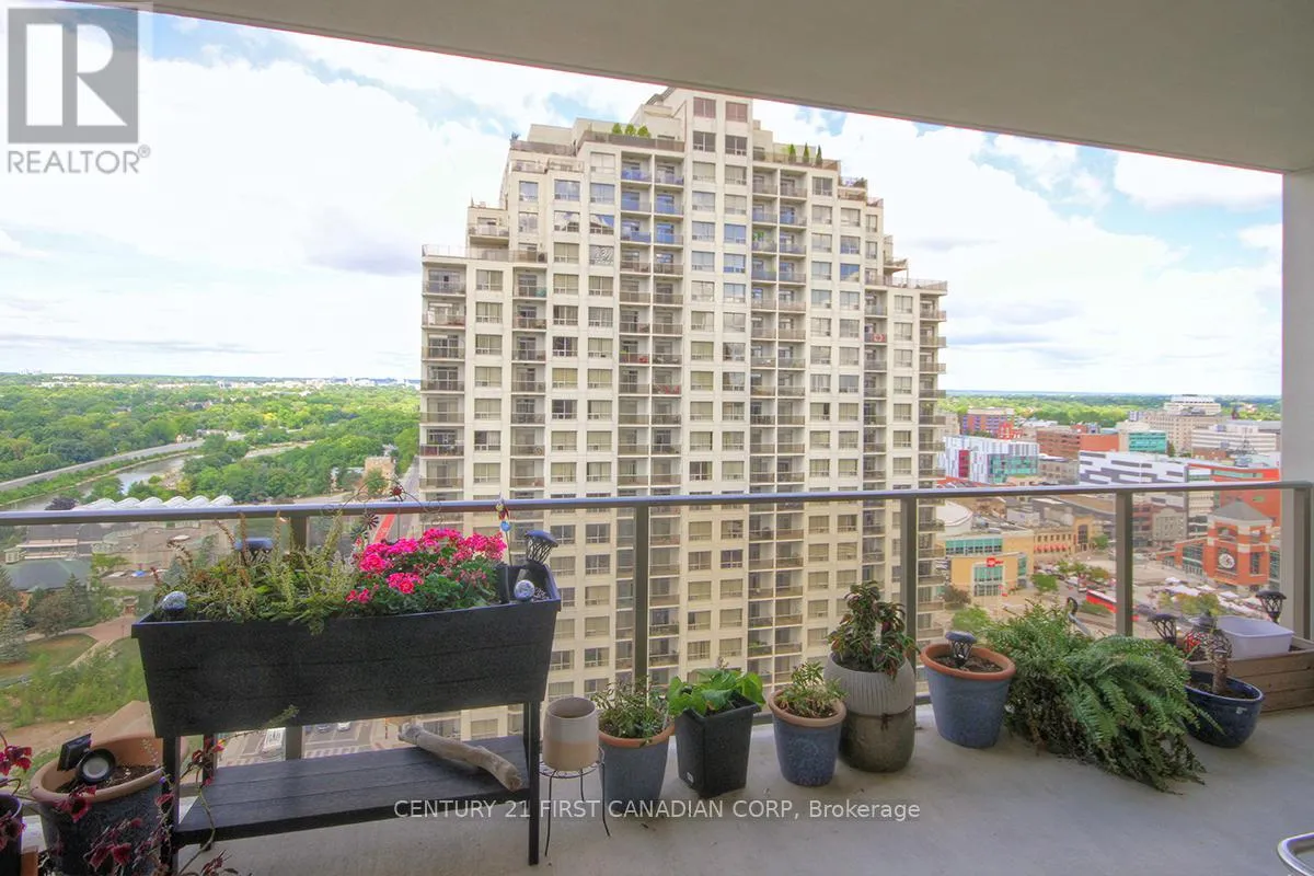 Cross Streets: York Street and Ridout. ** Directions: York St to Ridout St N. 21st Floor Executive Bright Corner North West Facing Condo at the Renaissance II. 2 Bedroom + Den with Private Master Suite, Complete with 2 Premium Parking Spots (P1-17 & UG-113) + Storage Locker (P4-68). Open Design is Perfect for Entertaining and Includes Bonus Wine Fridge. Updates Include Modern Flooring Throughout (No Carpet), Surround Sound Throughout Entire Condo Professionally Installed by London Audio. Over-sized North West Balcony Offers the Best Views of the Thames River and Downtown London! Walk to Everything! High End Upgraded Stainless Steel Appliances Complete with Customized Granite Counter Tops with In-Suite Laundry. Building Facilities include Large Professional Exercise Centre, Massive Party Area w/Pool Table, Professional Theatre Room, Outdoor Terraces contains Gas Fireplace, BBQs, Putting Green, Loads of Patio Furniture & 2 Guest Suites! Condo fees include Heat, Air Conditioning and Hot/Cold Water. Appliances Include: Fridge, Wine Fridge, Induction Stove, Dishwasher, Microwave, Washer, Dryer. (id:27476)