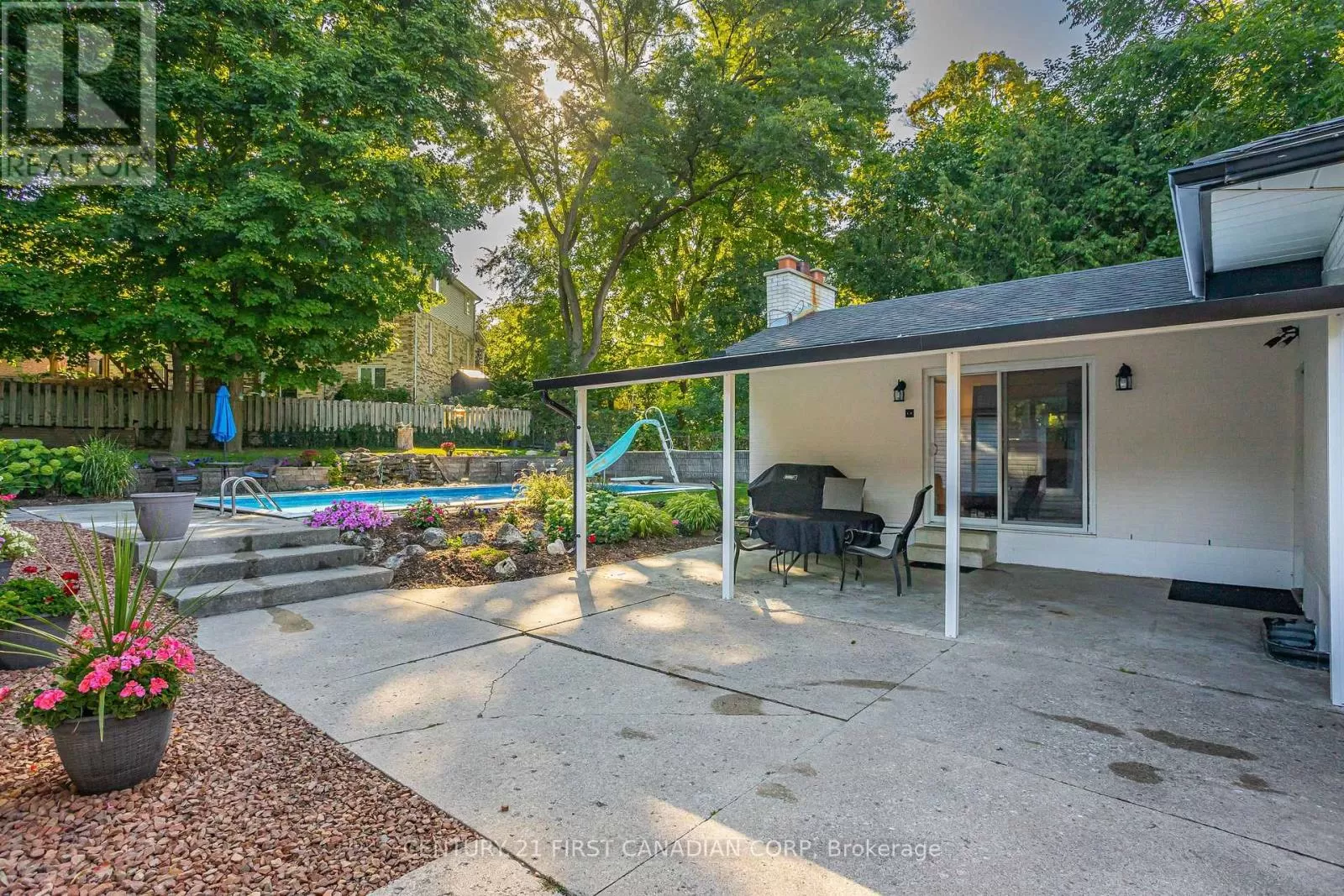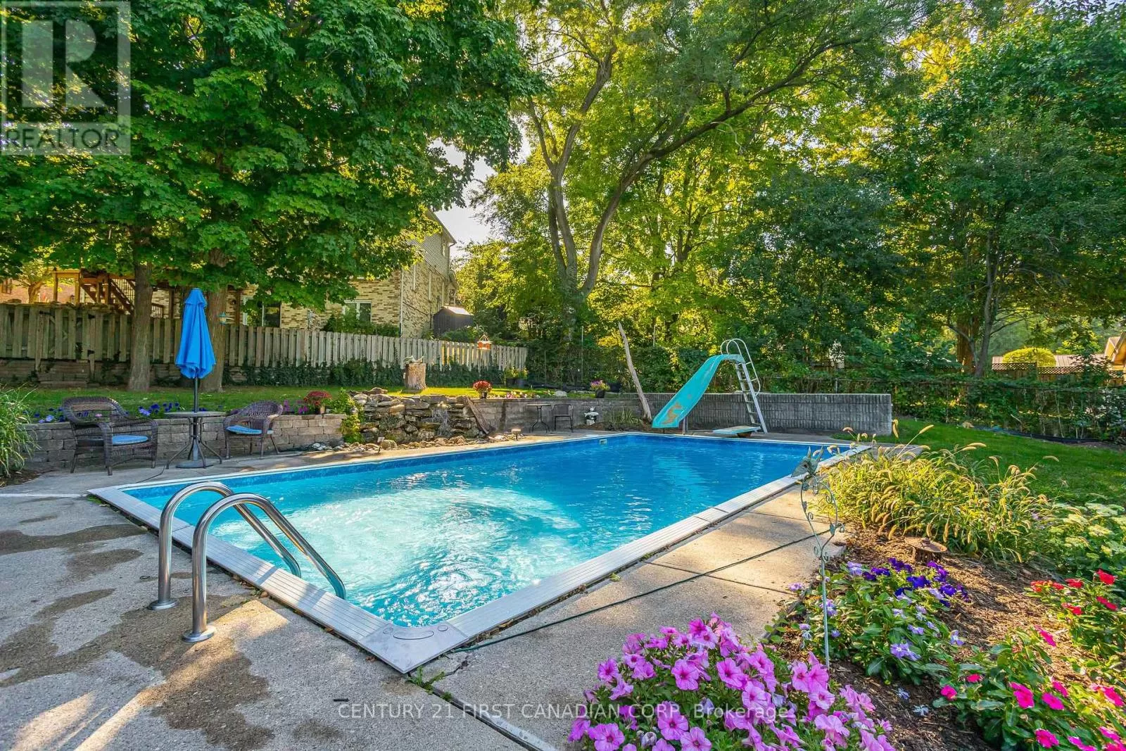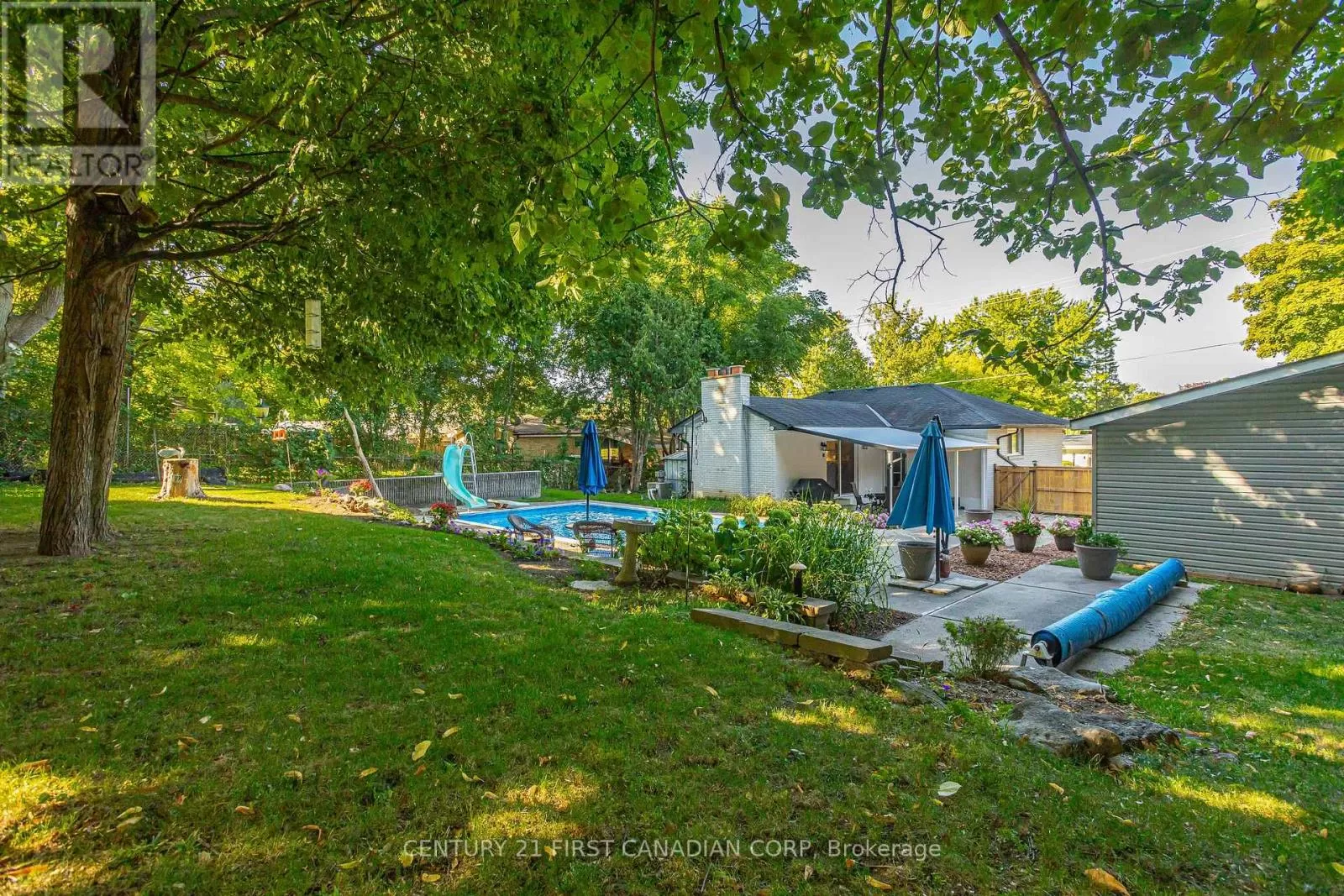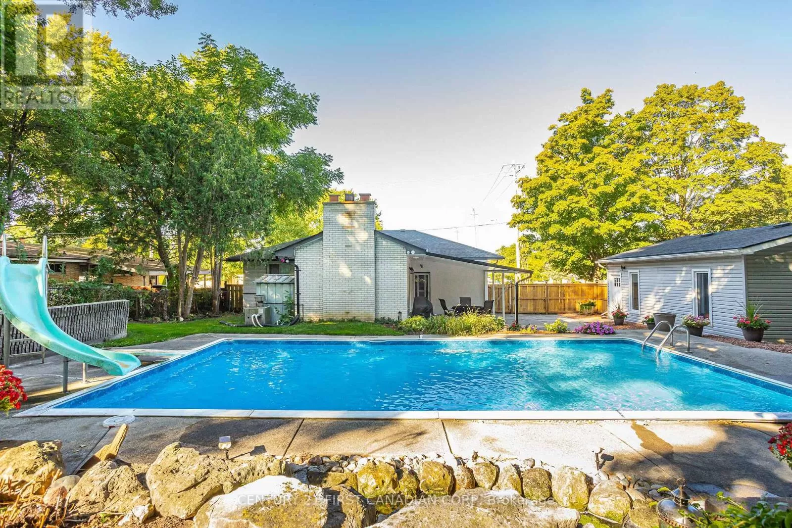 Cross Streets: Kipps Lane. ** Directions: Briarhill Ave and Kipps Lane. Welcome home to this fabulous all brick bungalow that is perfect for outdoor entertaining! Located centrally and on a bus route for both Fanshawe College and Western University! You will pull up to a spacious triple drive with a detached double garage. Perfect for car enthusiasts, boaters or a fabulous man cave! The backyard is gorgeous with an inground pool and surrounding the pool is beautiful landscaping and a serene waterfall. A covered patio space is perfect for summer entertaining and was just redone this year. Patio doors lead to the cozy family room and kitchen. Inside you have a living room with a beautiful picture window and a dining room. 3 bedrooms and a 4pc bathroom. The basement offers ample space with rec rooms, gym area, a bedroom and 3pc bathroom. Transform the basement form to a fabulous in-law suite or teenage den as its has a separate entrance to the backyard patio. Spend summer nights or enjoy a morning coffee out on the concrete front porch! This home has been lovingly lived in for nearly 30 years. A home daycare, families and friends have spent so much time enjoying it, it's now your turn to make it yours and make new memories! (id:27476)