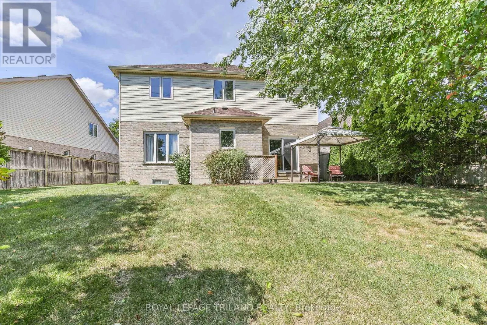 Cross Streets: EDGEVALLEY RD. ** Directions: Highbury Ave. N. to Kilally Rd. Kilally Rd. to Edgevalley Rd. Edgevalley Rd. to Greyrock Cres. Welcome to 41 Greyrock Crescent, a beautifully maintained two-storey brick-fronted exterior home nestled on a quiet crescent near tranquil river trails, offering the perfect blend of space, comfort, and lifestyle. With six spacious bedrooms, three full bathrooms, and a convenient half bath, this home was designed with large families, blended households, and multi-generational living in mind. Step inside and experience the airy feel of nine-foot ceilings throughout the bright main floor, where natural light floods the three distinct living areas, creating warm, welcoming spaces for both entertaining and everyday living. The kitchen flows seamlessly into a family room with gas fireplace and out to a private backyard retreat, complete with a charming gazebo the perfect spot to unwind with a book or host summer gatherings. The main floor also features a dedicated laundry room with a laundry sink, adding to the everyday functionality of the home. Upstairs, the generous bedrooms offer plenty of space for rest and relaxation, while the finished lower level opens up exciting potential for a granny suite or separate living quarters ideal for extended family or guests. This family-friendly property backs directly onto greenspace with a walking and biking path, and includes access to a tranquil park, offering uninterrupted views of nature. With no rentals on the property, pride of ownership is evident throughout. Major updates include a new roof in 2023, insulated garage doors in 2024, and a brand-new washing machine in 2024. With a double car garage and oversized driveway, thoughtful upgrades, and a prime location surrounded by nature, 41 Greyrock Crescent is more than just a house its a place to grow, connect, and call home. (id:27476)