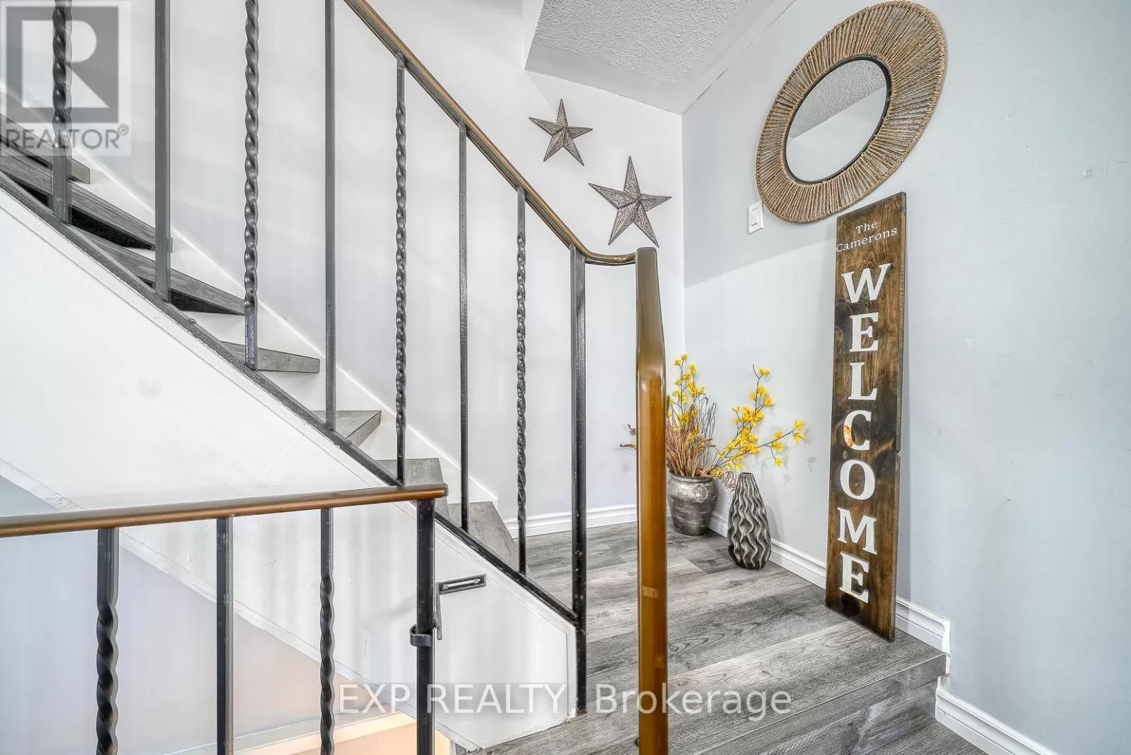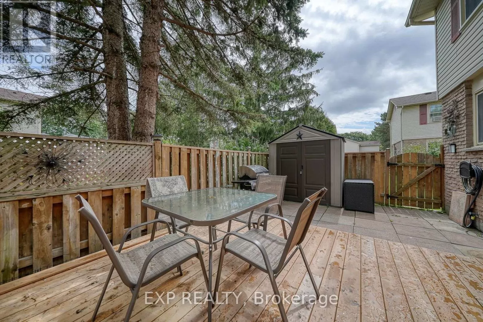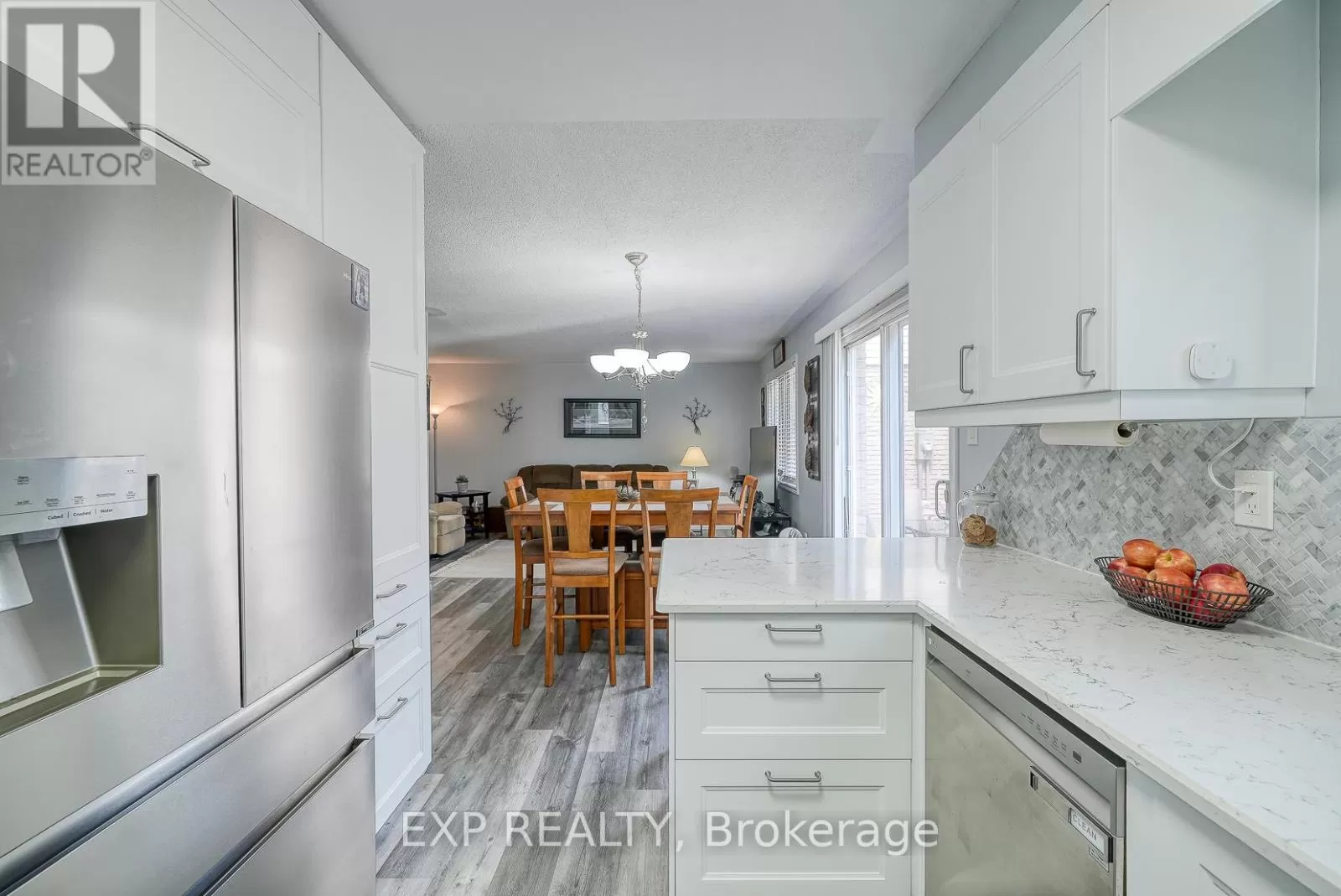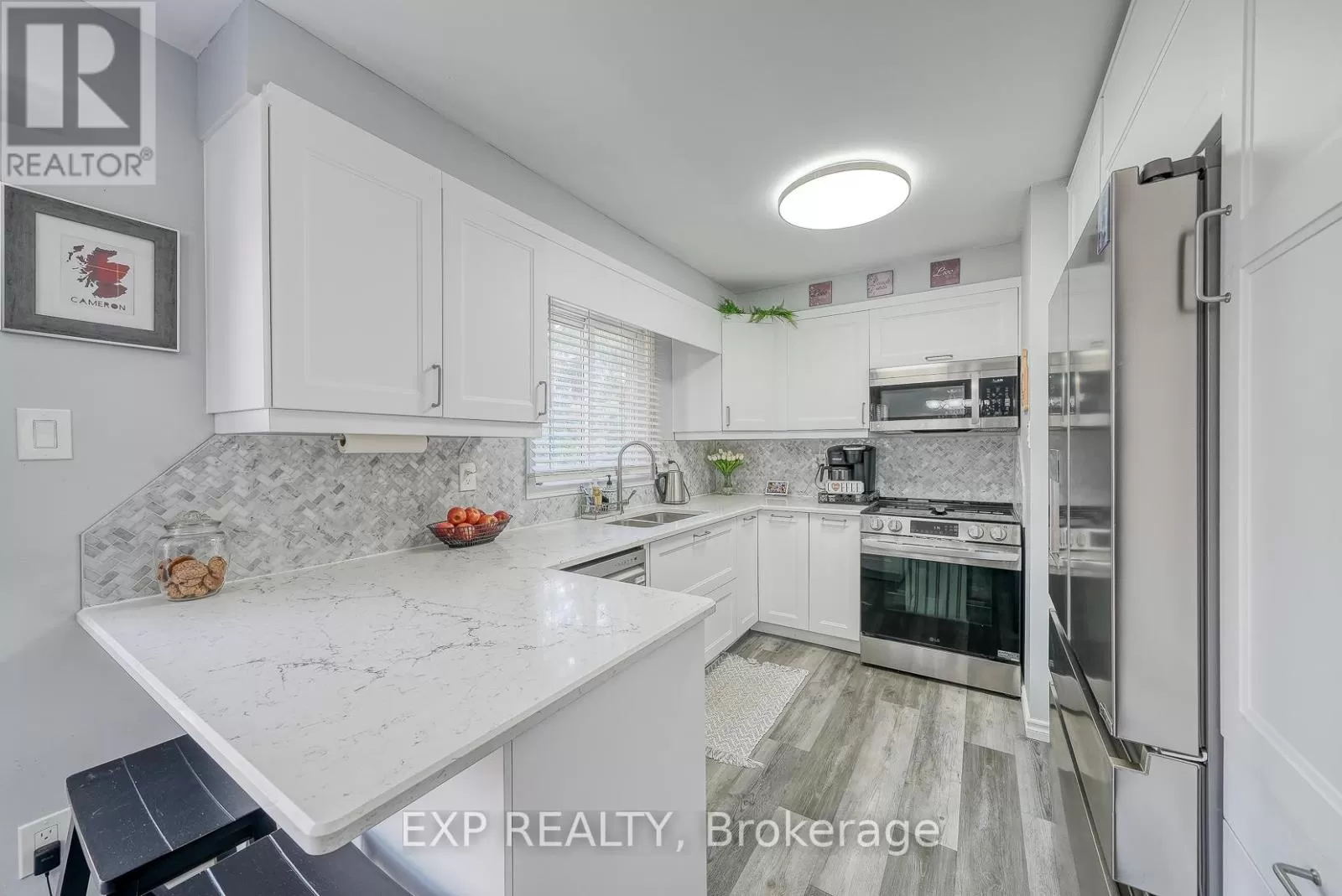 Cross Streets: Clarke and Wavell. ** Directions: north. Beautifully Renovated Condo for Sale Desirable East London Location. This stunning condo has been thoughtfully renovated with modern style and comfort in mind. Featuring high-end finishes throughout, including brand-new stainless steel appliances, quartz countertops, and more, its truly move-in ready. Kitchen includes-two double level corner lazy susans-two full floor to ceiling pantry cabinets with multiple sliding drawers-multiple pot and pan drawers-under cabinet valances and lighting, quartz counter top with double undermount sink and peninsula, 4 new stainless steel appliances including a 36" refrigerator with water, ice, and an extra programmable compartment, brand new upstairs floor to ceiling ceramic tile shower with new vanity and quartz countertop with large oval right-height toilet-new vinyl plank flooring through out the two levels-new high quality fans with lights in each bedroom-new washer and dryer-three year old water heater (owned), new rubbermaid maintenance free garden shed-large one year old sienna deck accessed through patio door to a beautiful treed area behind unit, The bright, open-concept layout is perfect for todays lifestyle, while the unspoiled basement provides a blank canvas for your personal touch whether its a home gym, office, or additional living space. Don't miss the opportunity to own a beautifully updated home in one of London's most desirable east-end communities! (id:27476)