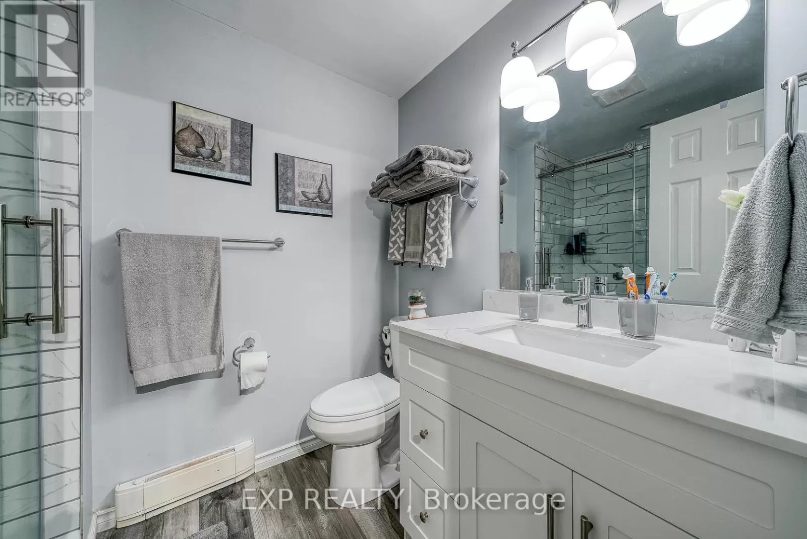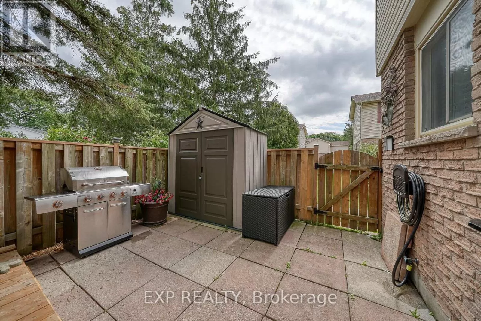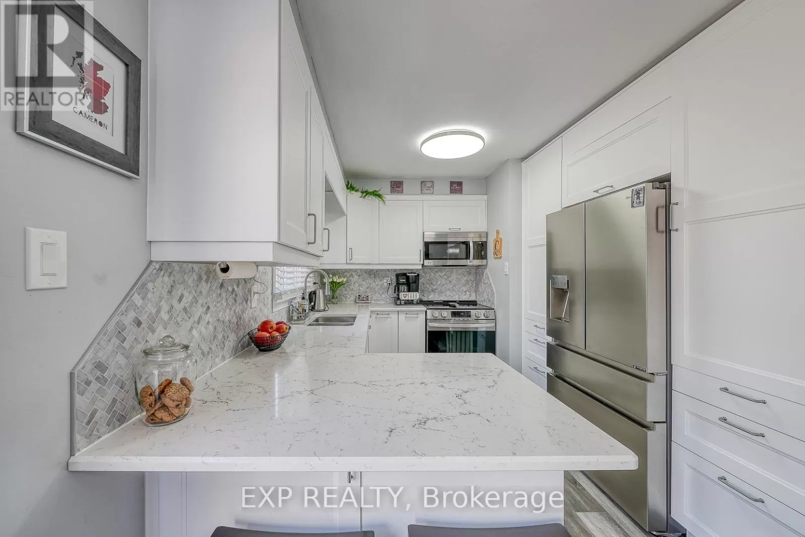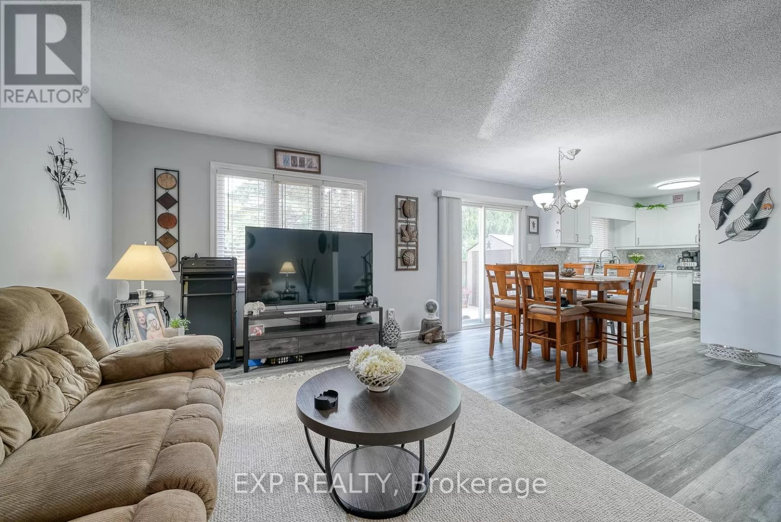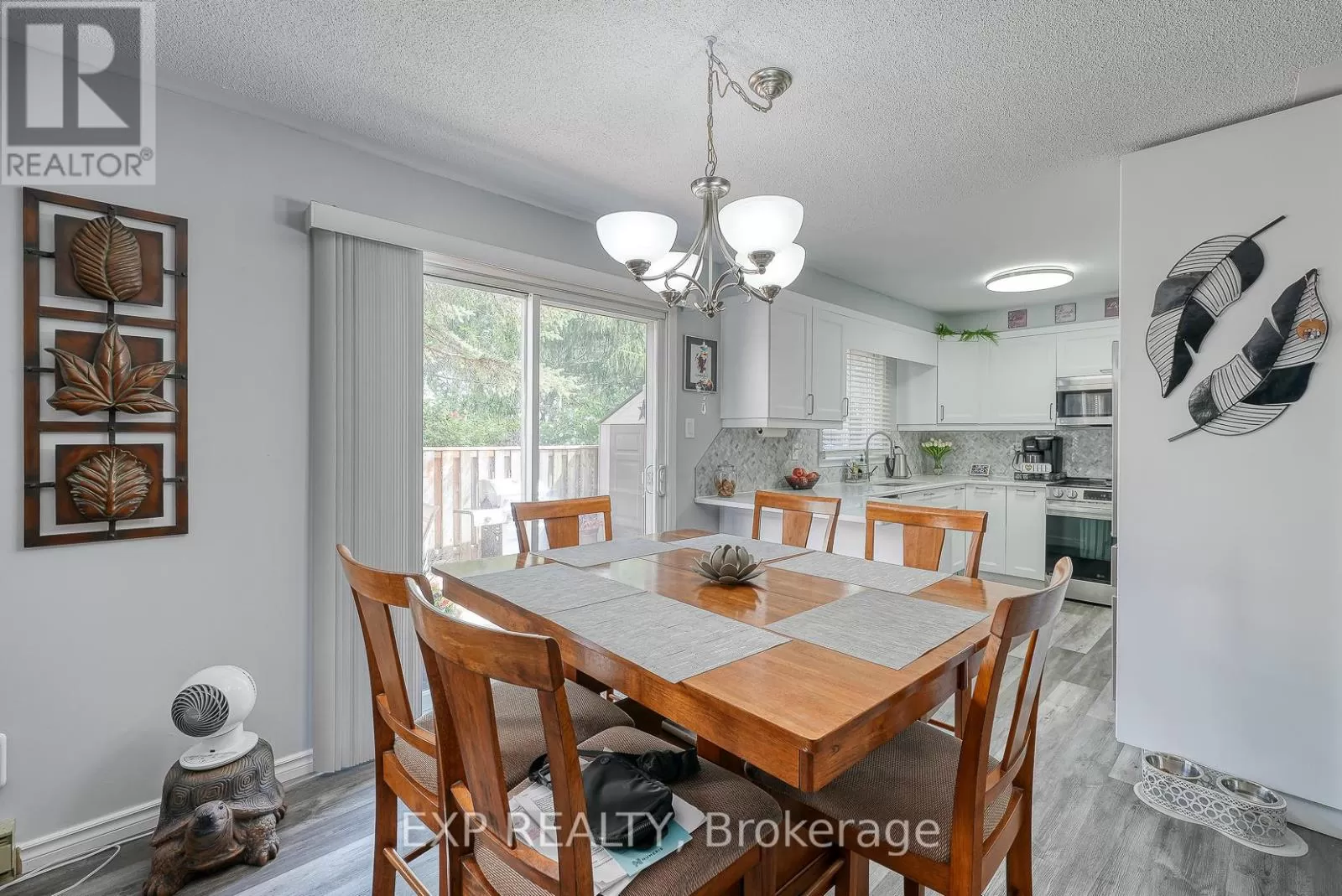 Cross Streets: Clarke and Wavell. ** Directions: north. Beautifully Renovated Condo for Sale Desirable East London Location. This stunning condo has been thoughtfully renovated with modern style and comfort in mind. Featuring high-end finishes throughout, including brand-new stainless steel appliances, quartz countertops, and more, its truly move-in ready. Kitchen includes-two double level corner lazy susans-two full floor to ceiling pantry cabinets with multiple sliding drawers-multiple pot and pan drawers-under cabinet valances and lighting, quartz counter top with double undermount sink and peninsula, 4 new stainless steel appliances including a 36" refrigerator with water, ice, and an extra programmable compartment, brand new upstairs floor to ceiling ceramic tile shower with new vanity and quartz countertop with large oval right-height toilet-new vinyl plank flooring through out the two levels-new high quality fans with lights in each bedroom-new washer and dryer-three year old water heater (owned), new rubbermaid maintenance free garden shed-large one year old sienna deck accessed through patio door to a beautiful treed area behind unit, The bright, open-concept layout is perfect for todays lifestyle, while the unspoiled basement provides a blank canvas for your personal touch whether its a home gym, office, or additional living space. Don't miss the opportunity to own a beautifully updated home in one of London's most desirable east-end communities! (id:27476)