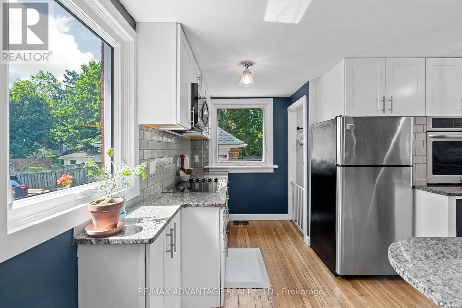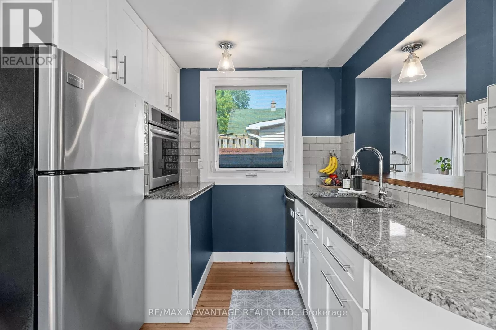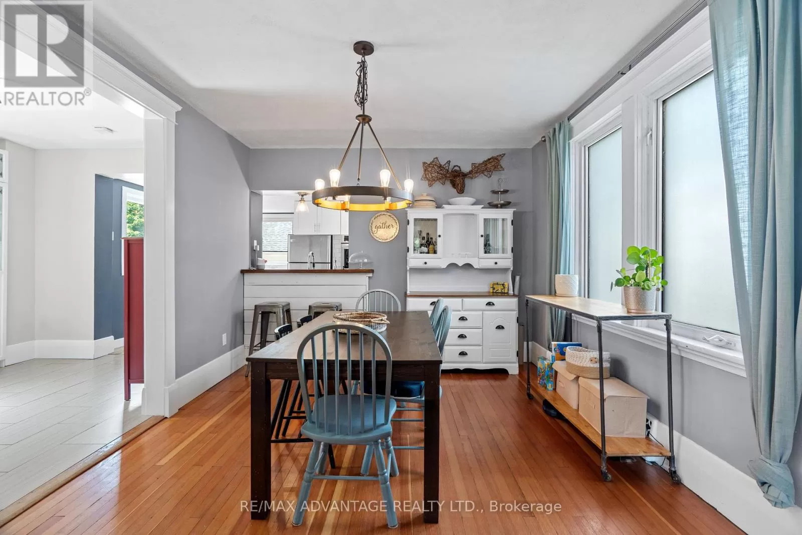 Cross Streets: Highbury Ave & Commissioners Rd E. ** Directions: Heading north on Highbury Ave turn right on to Beattie Ave. This well-maintained, carpet-free 3 Bedroom, 2 Bathroom home is situated on a fully fenced 30' x 115' lot and offers a seamless blend of timeless character and functional updates. The main floor features a bright, open-concept layout with defined living and dining areas, a central kitchen with adjacent breakfast nook, and a convenient two-piece bathroom. Upstairs includes three good-sized bedrooms and a full four-piece bath. The finished lower level offers additional living space, laundry, utility area, and in-law suite capability. Exterior highlights include a private, tree-lined backyard oasis with mature landscaping, a detached garage, and private/mutual driveway parking. Strategically situated facing south, the sun pours in through the front porch, living room and two secondary bedrooms. Additional features include a cozy wood-burning fireplace, covered front porch, clean carpet-free interior throughout and central air conditioning. Ideally located within walking distance to Kiwanis Parks trails, splash pad, and playgrounds, and close to the Western Fair Market, schools, public transit, downtown amenities and access to the 400 series Highways. Zoned R2-2 in a family-friendly community, 76 Beattie Avenue presents an exceptional opportunity to own a move-in ready home in one of London's hidden gem neighbourhoods. (id:27476)