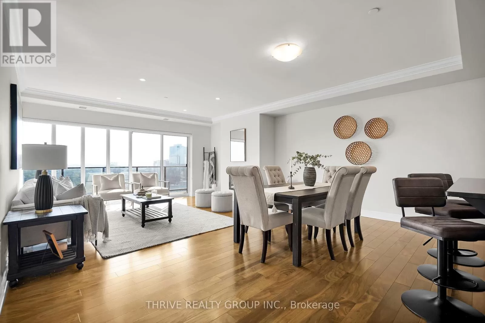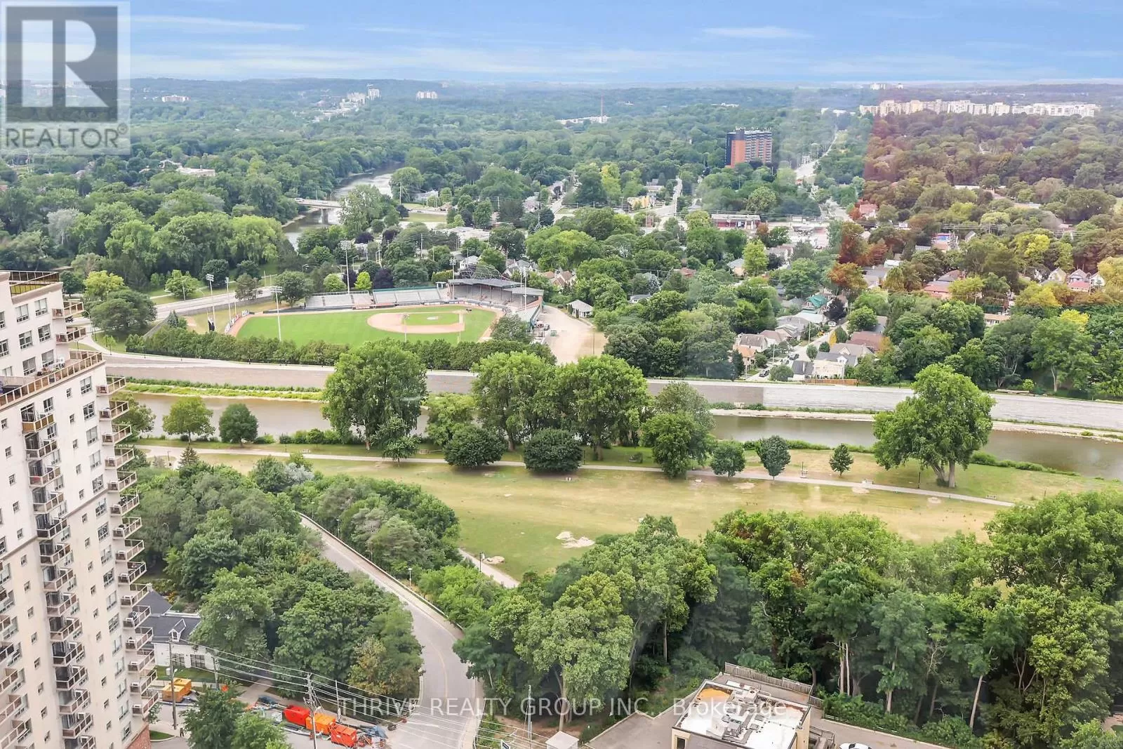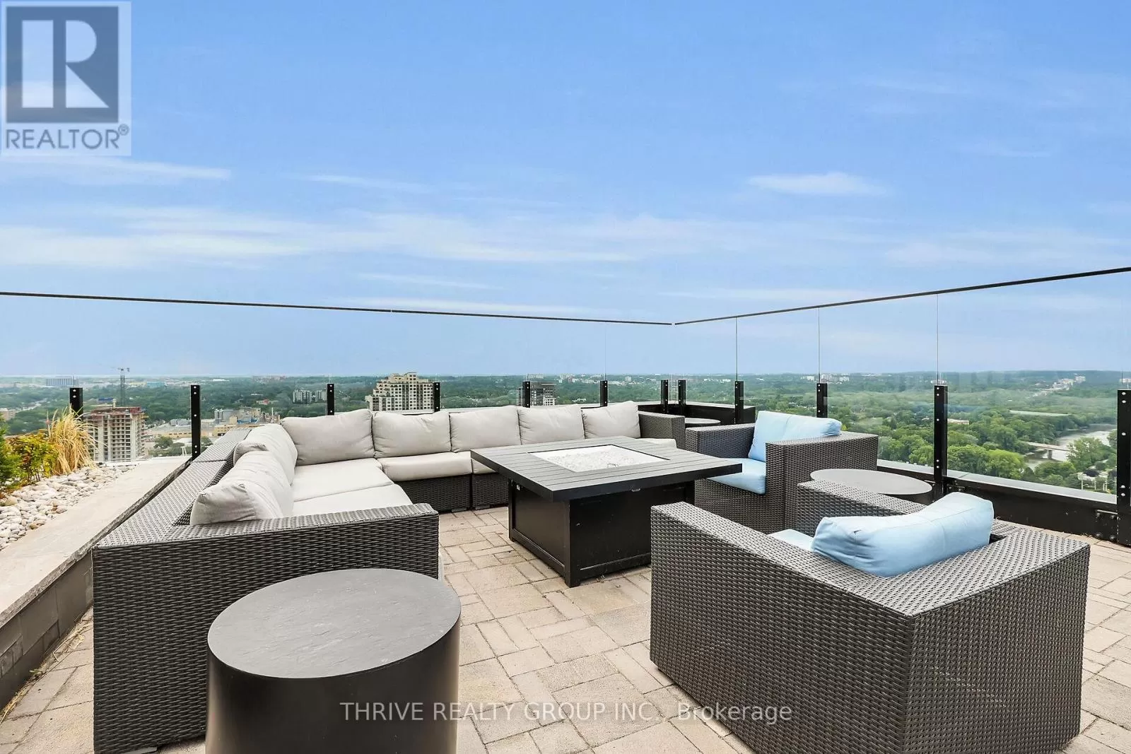 Cross Streets: TALBOT STREET & DUFFERIN AVE. ** Directions: NORTH WEST CORNER OF TALBOT STREET & DUFFERIN AVE. Welcome to Azure Londons premier luxury high-rise! Experience sophisticated living in one of the city's most desirable condominium communities, offering style, comfort, and sweeping views. The Flatiron 2N floor plan features approximately 1,305 sq. ft. (per builders plans) of well-designed space, including two spacious bedrooms and two full bathrooms with high-end finishes throughout. Situated on the 21st floor, this suite captures stunning views of downtown London through expansive windows that flood the home with natural light. Enjoy peace of mind with heating, cooling, water, and hot water all included in the condo fees. Owners are only responsible for personal hydro, which remains very affordable thanks to the buildings energy-efficient design. The unit also comes with one designated underground parking space. Azure offers an exceptional lifestyle with its 29th floor rooftop terrace featuring gas fire pits, barbecues, lounge and dining spaces, plus a professional fitness centre, golf simulator, billiards room, library, kitchen and wet bar facilities, guest suite, and more. Discover luxury living in the heart of downtown London this suite at Azure is sure to impress! (id:27476)