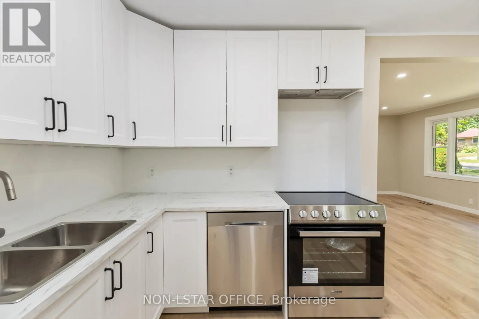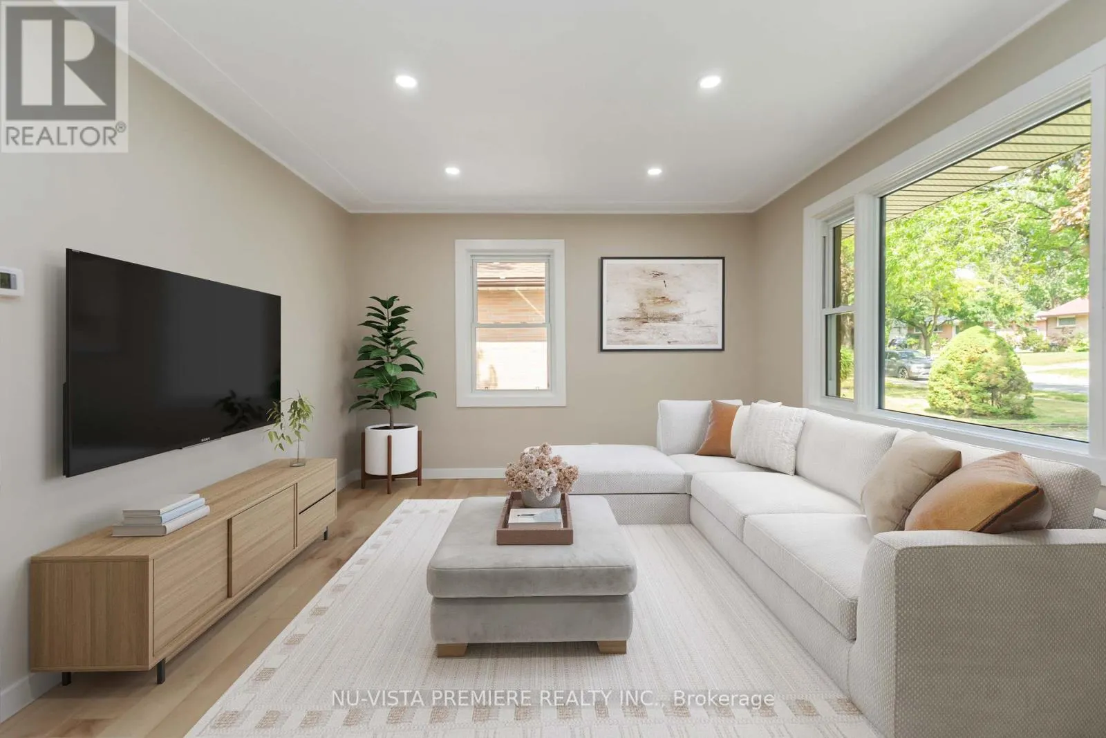 Cross Streets: Clarke Rd. ** Directions: Clarke Rd to Royal Cres. Welcome to 1840 Royal Crescent! Offered at $584,600, this beautifully updated home sits on a generous lot along a quiet treelined street with sidewalks. Featuring 3+1 bedrooms, this property has been extensively renovated throughout. Purchase 5% down, $29,230.00 rate 4% and your mortgage payment is approximately $2,641.00. Rent out lower level for $1500 per month and you pay only $1,141.00 and you have home ownership with appreciation over the years. The brand-new kitchen shines with. modern appliances and pot lighting, while the spacious living room boasts new flooring and additional pot lights for a bright welcome feel. Upstairs, you will find 3 well sized bedrooms and a fully updated bathroom with a stylish glass shower enclosure. The lower level offers a separate entrance leading to a large family room, additional bedroom and washroom. This could proved a steady income stream to help offset your mortgage. Perfectly located on a quit street, this home is within walking distance to Lord Nelson Public School, Princess Anne French Immersion and Clarke Road Hight School. Nearby amenities include East Lions Park, East Lions Community Centre, Argyle Arena and East Park Golf Course. Close to highway 401 for those who commute. Truly a turnkey home with extensive upgrades, just like buying new! Move in and start enjoying. Rooms that have furniture are virtually staged to show layout of furniture. (id:27476)