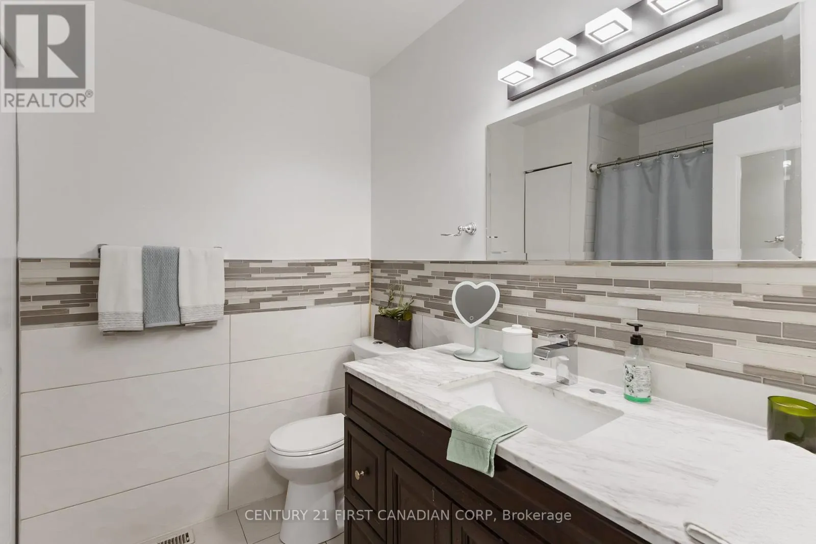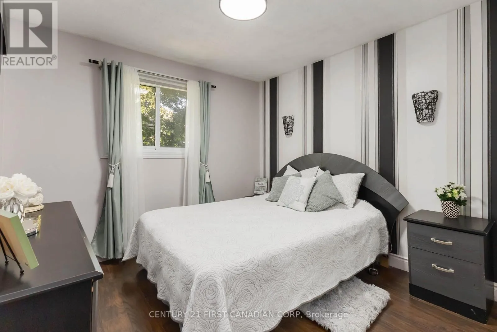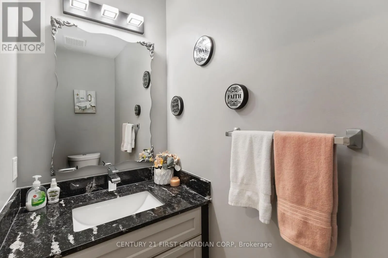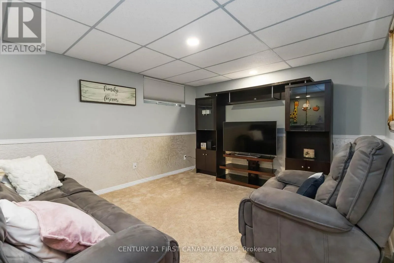Cross Streets: Admiral and Bonaventure. ** Directions: SW on Dundas Street, left onto Bonaventure Drive, unit will be on the right hand side. Step into this stylish and well-cared-for 3-bedroom, 2-storey townhouse, tucked away in a peaceful, family-oriented community. Backing onto Bonaventure Meadows Public School, this home offers rare privacy, a backdrop of green space, and the comfort of true neighborhood living. The main level welcomes you with a bright foyer, convenient interior garage access, a modern 2-piece bath with stone counter, and a spacious main floor laundry room. The kitchen has been recently renovated with sleek quartz countertops, new island, stainless steel appliances, and large pantry with lots of storage. The kitchen flows seamlessly into the open-concept dining and living area, where windows fill the space with natural light. With no carpet the layout is both fresh and practical, perfect for busy family life or entertaining guests. Upstairs, discover three generous bedrooms, including a primary retreat that easily fits a king-size bed and features double closets. The 4-piece bathroom has been tastefully renovated with stone counters, offering both style and function. The fully finished lower level expands your living options with a spacious rec room and a separate office area ideal for working from home, gaming, or study space. Outside, enjoy a private patio perfect for summer barbecues, morning coffee, or simply relaxing while overlooking the schoolyard beyond. This prime location puts you just minutes from everything 6 minutes to Highway 401, 10 minutes to downtown London, 5 minutes to Fanshawe College, and under 20 minutes to Western University. Parks, shopping, and public transit are also close at hand. (id:27476)